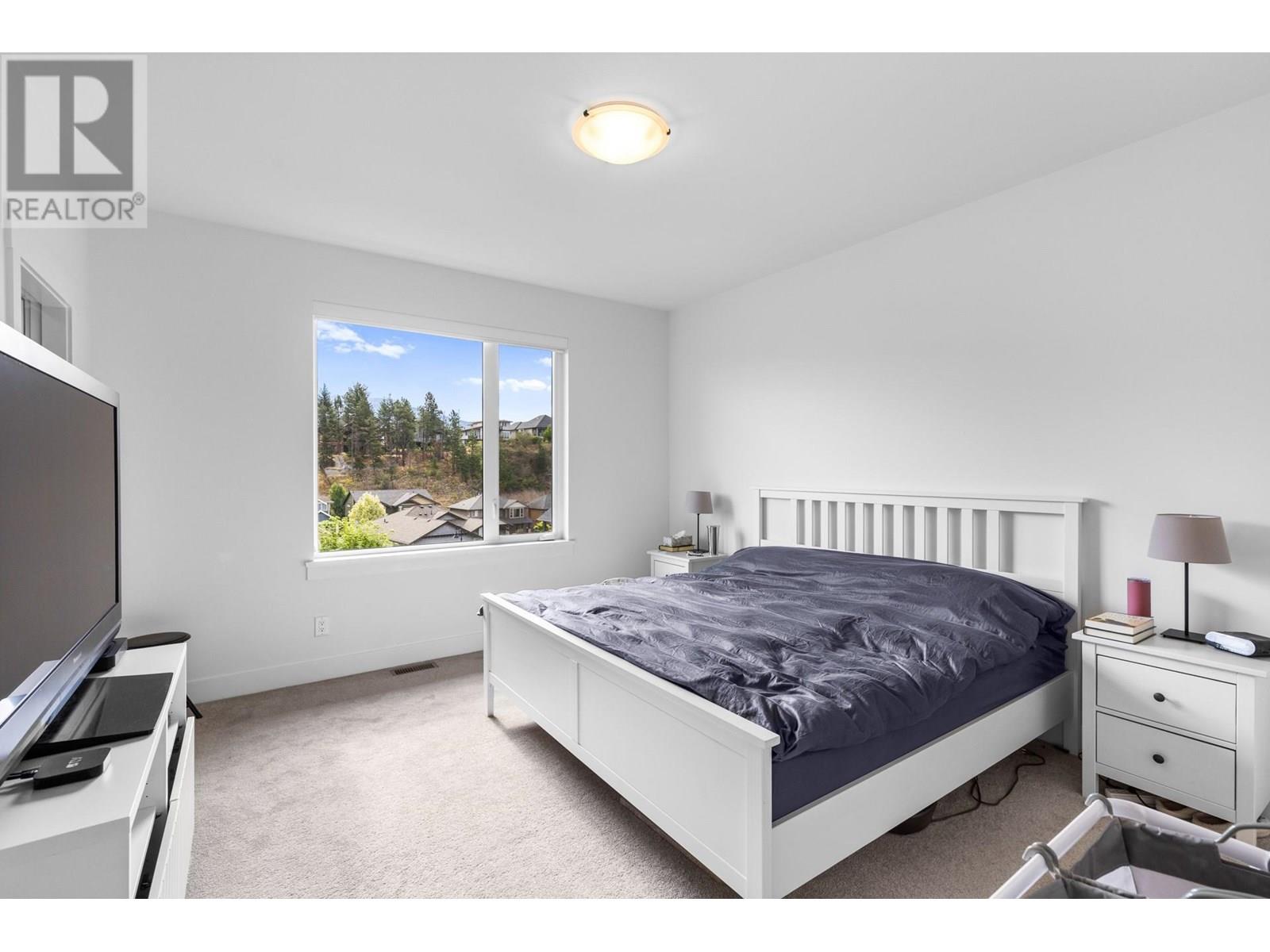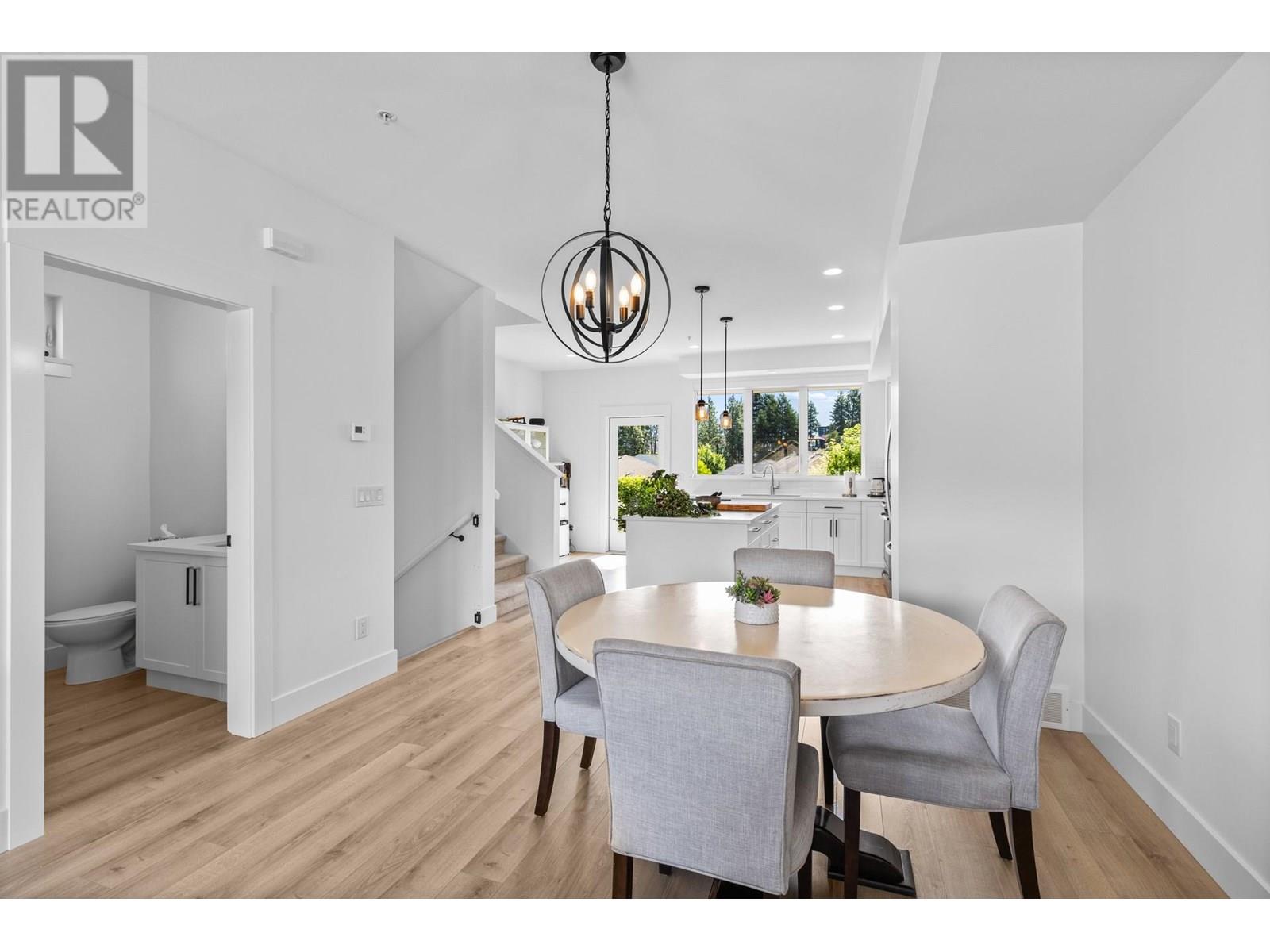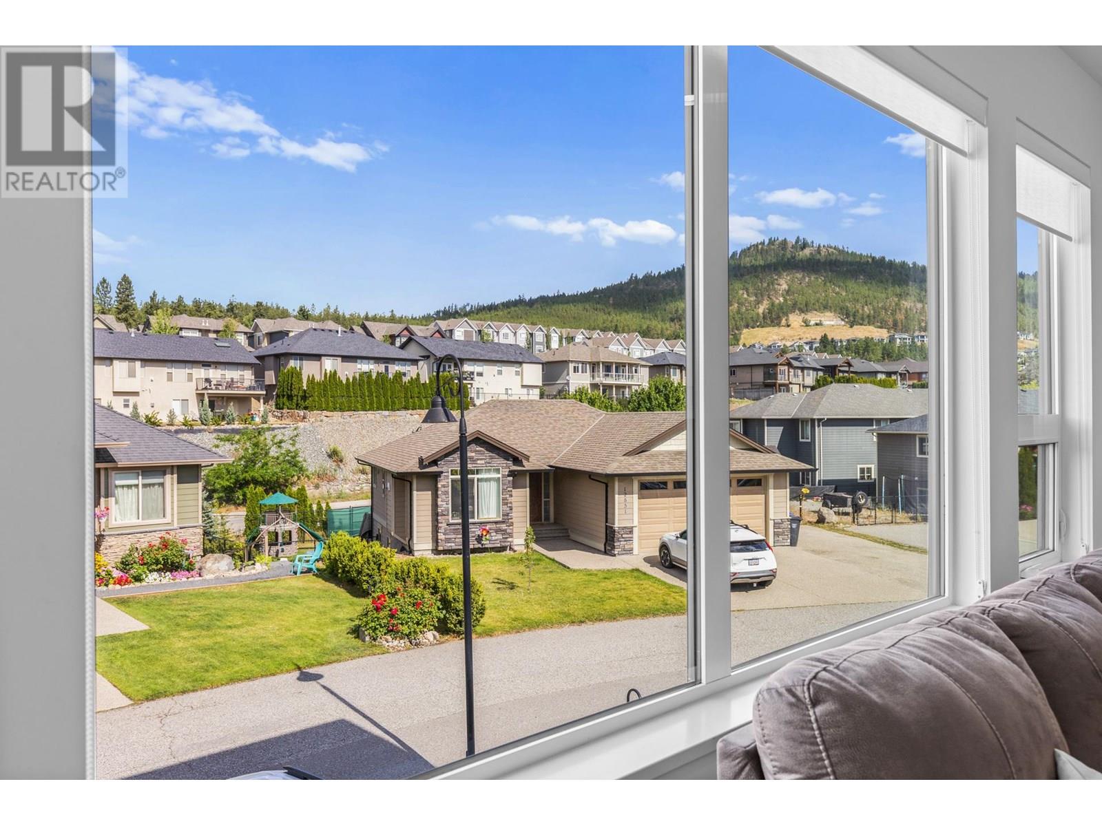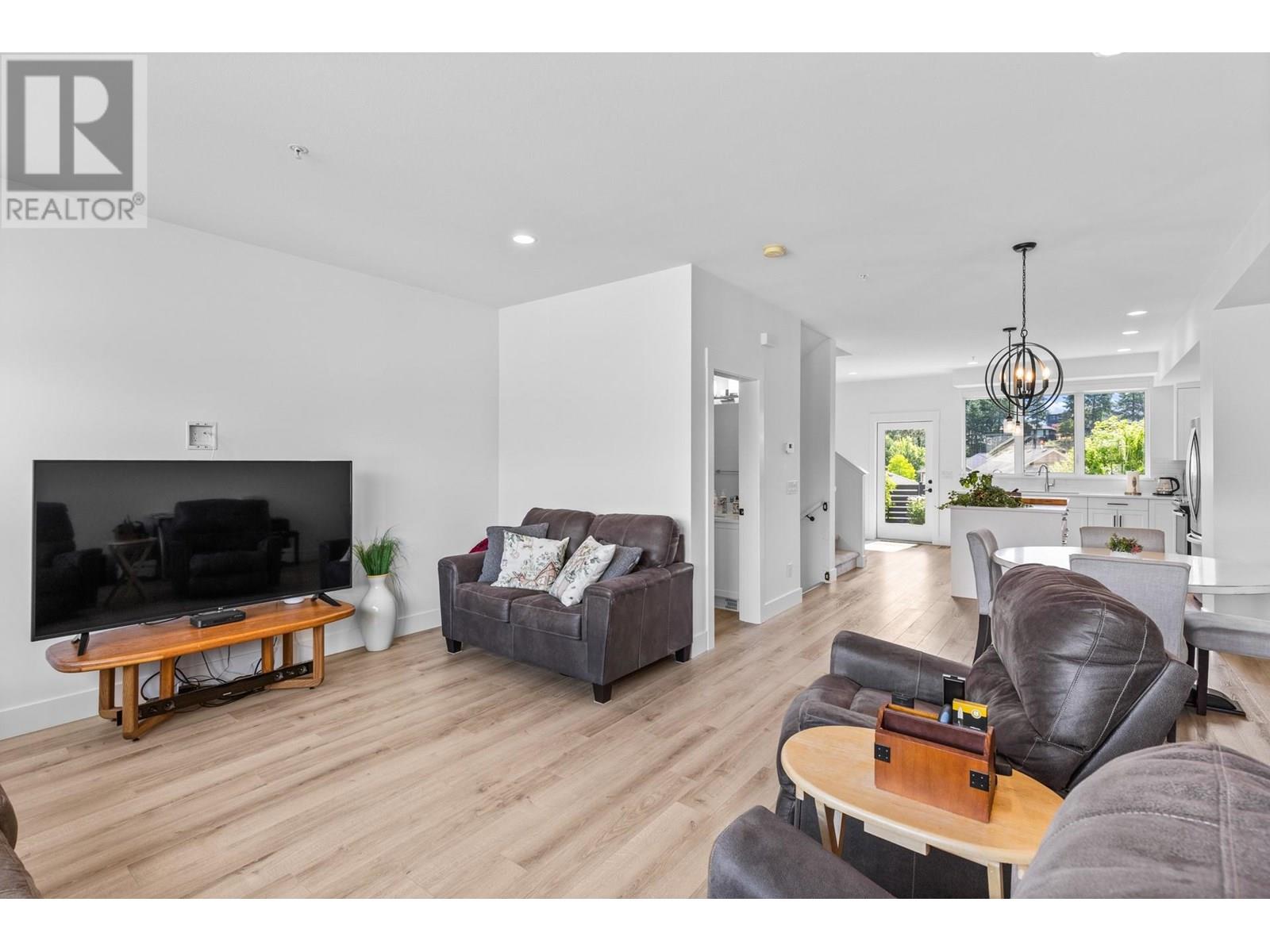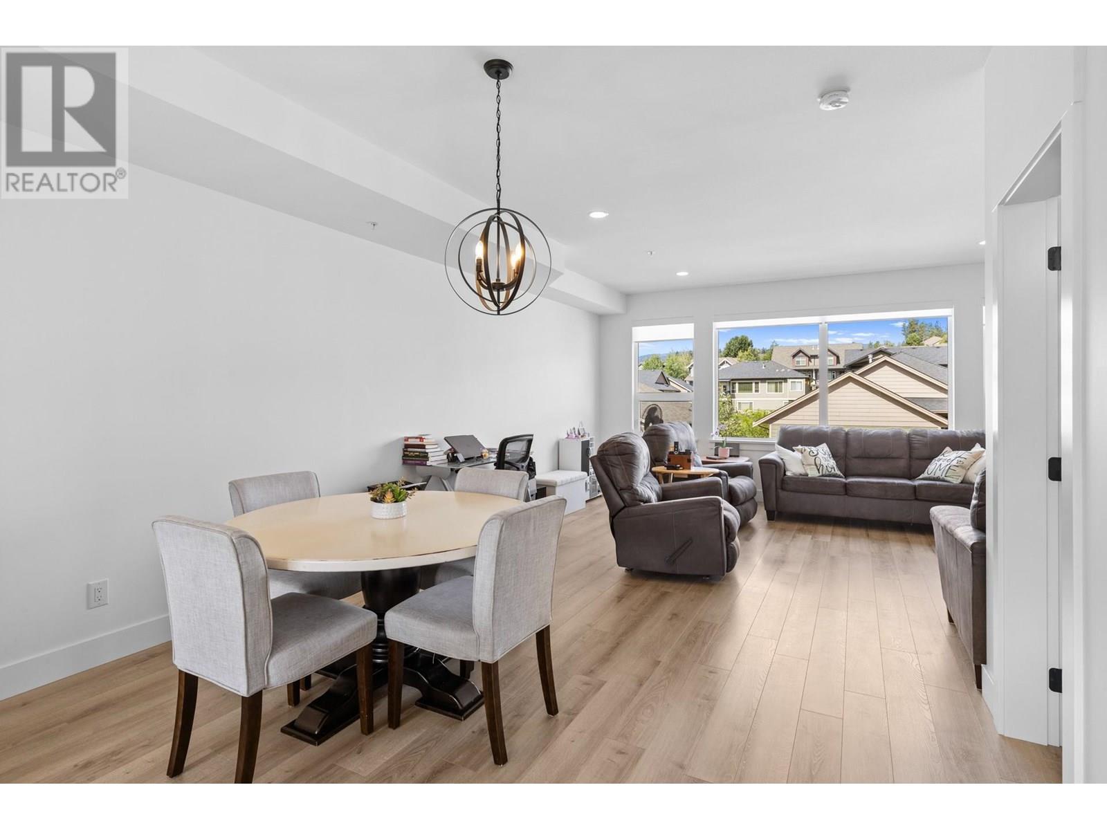 Bright & Modern End Unit in Rockridge at The Lakes. A vibrant and family/pet friendly townhome community in the heart of Lake Country. This stylish 3-bedroom + den/flex, 3-bathroom end unit offers the perfect blend of space, functionality, and comfort. Flooded with natural light, the main floor showcases a modern open-concept design with large windows throughout. The kitchen is a true highlight, featuring quartz countertops, a gas range, sit-up island, and cozy eating nook. The layout flows seamlessly into a spacious dining area and bright living room—perfect for everyday living and entertaining. Step out from the kitchen to your private, elevated backyard oasis with panoramic Eastern Mountain views. With no units directly behind, you’ll enjoy added privacy along with a gas hookup, power, and water connection. Upstairs you’ll find three well-appointed bedrooms, including a generous primary suite with a 4-piece ensuite. The laundry is conveniently located on this level as well. The lower level adds valuable flexibility with a den/flex room – perfect for a home office, gym, or guest space. Additional features include a double car garage, a full-length 26 ft driveway that easily accommodates most vehicles, and close proximity to visitor parking—making hosting friends and family a breeze. This home truly has it all—modern comfort, unbeatable functionality, and a fantastic location. (id:21321)