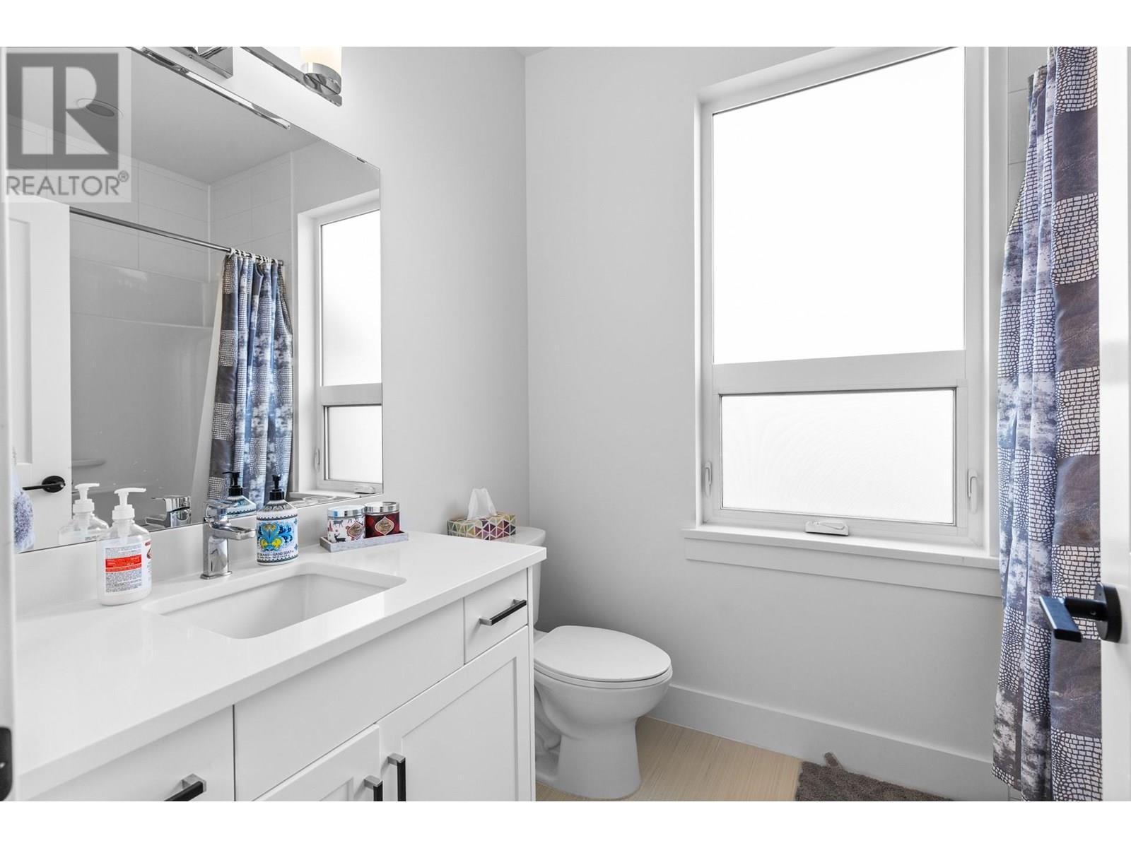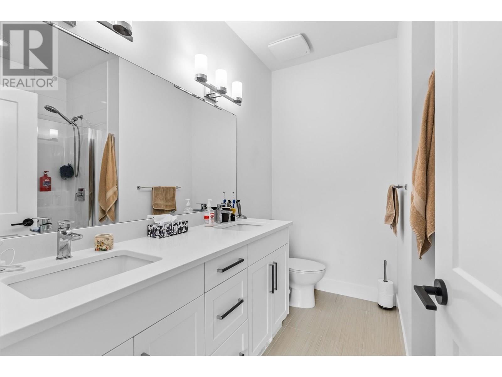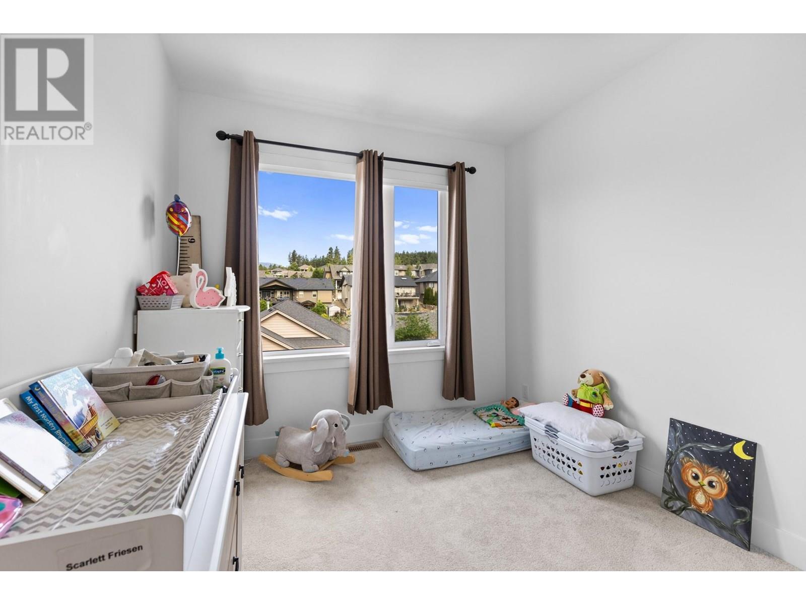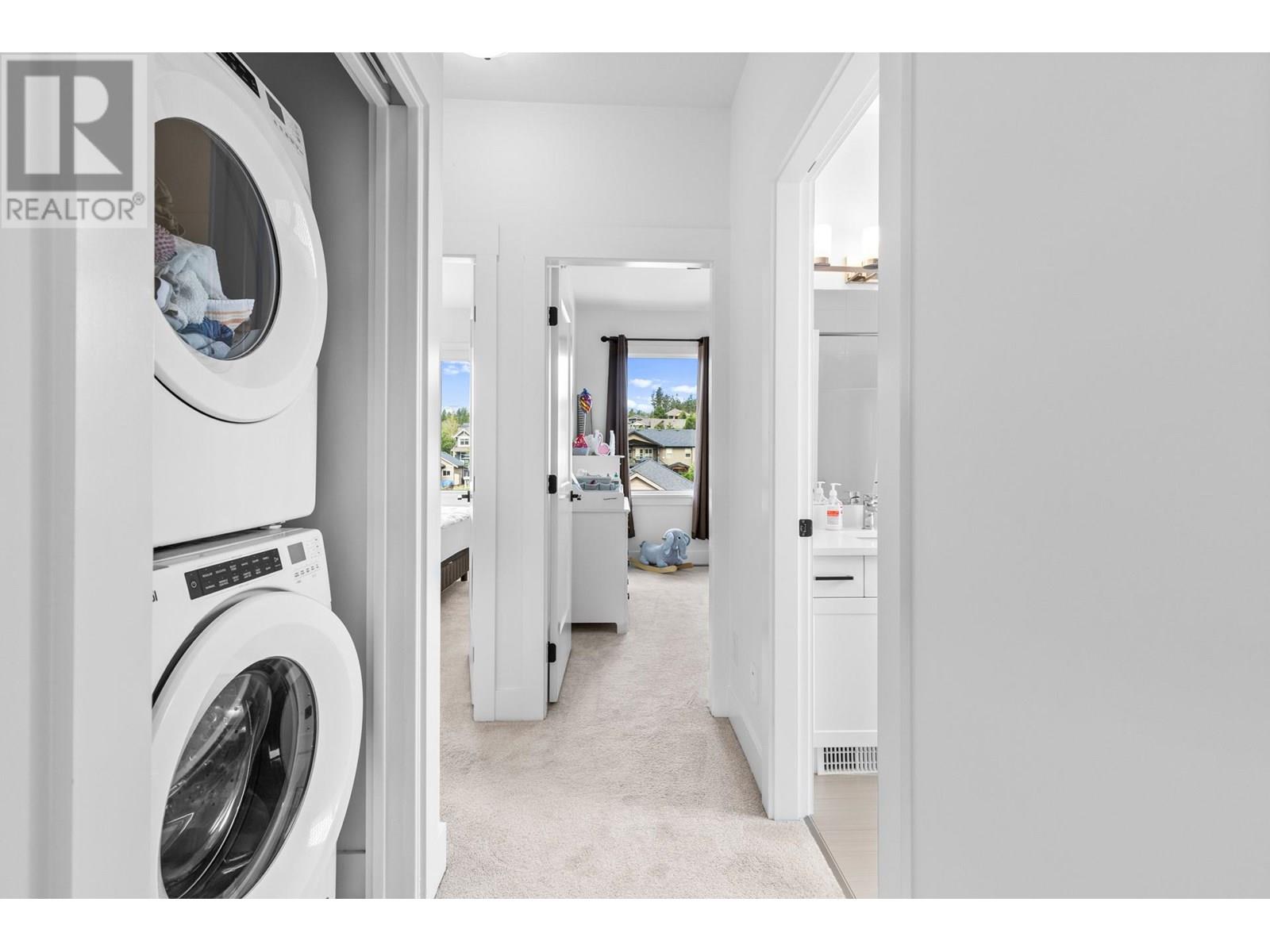 Bright & Modern End Unit in Rockridge at The Lakes. A vibrant and family/pet friendly townhome community in the heart of Lake Country. This stylish 3-bedroom + den/flex, 3-bathroom end unit offers the perfect blend of space, functionality, and comfort. Flooded with natural light, the main floor showcases a modern open-concept design with large windows throughout. The kitchen is a true highlight, featuring quartz countertops, a gas range, sit-up island, and cozy eating nook. The layout flows seamlessly into a spacious dining area and bright living room—perfect for everyday living and entertaining. Step out from the kitchen to your private, elevated backyard oasis with panoramic Eastern Mountain views. With no units directly behind, you’ll enjoy added privacy along with a gas hookup, power, and water connection. Upstairs you’ll find three well-appointed bedrooms, including a generous primary suite with a 4-piece ensuite. The laundry is conveniently located on this level as well. The lower level adds valuable flexibility with a den/flex room – perfect for a home office, gym, or guest space. Additional features include a double car garage, a full-length 26 ft driveway that easily accommodates most vehicles, and close proximity to visitor parking—making hosting friends and family a breeze. This home truly has it all—modern comfort, unbeatable functionality, and a fantastic location. (id:21321)