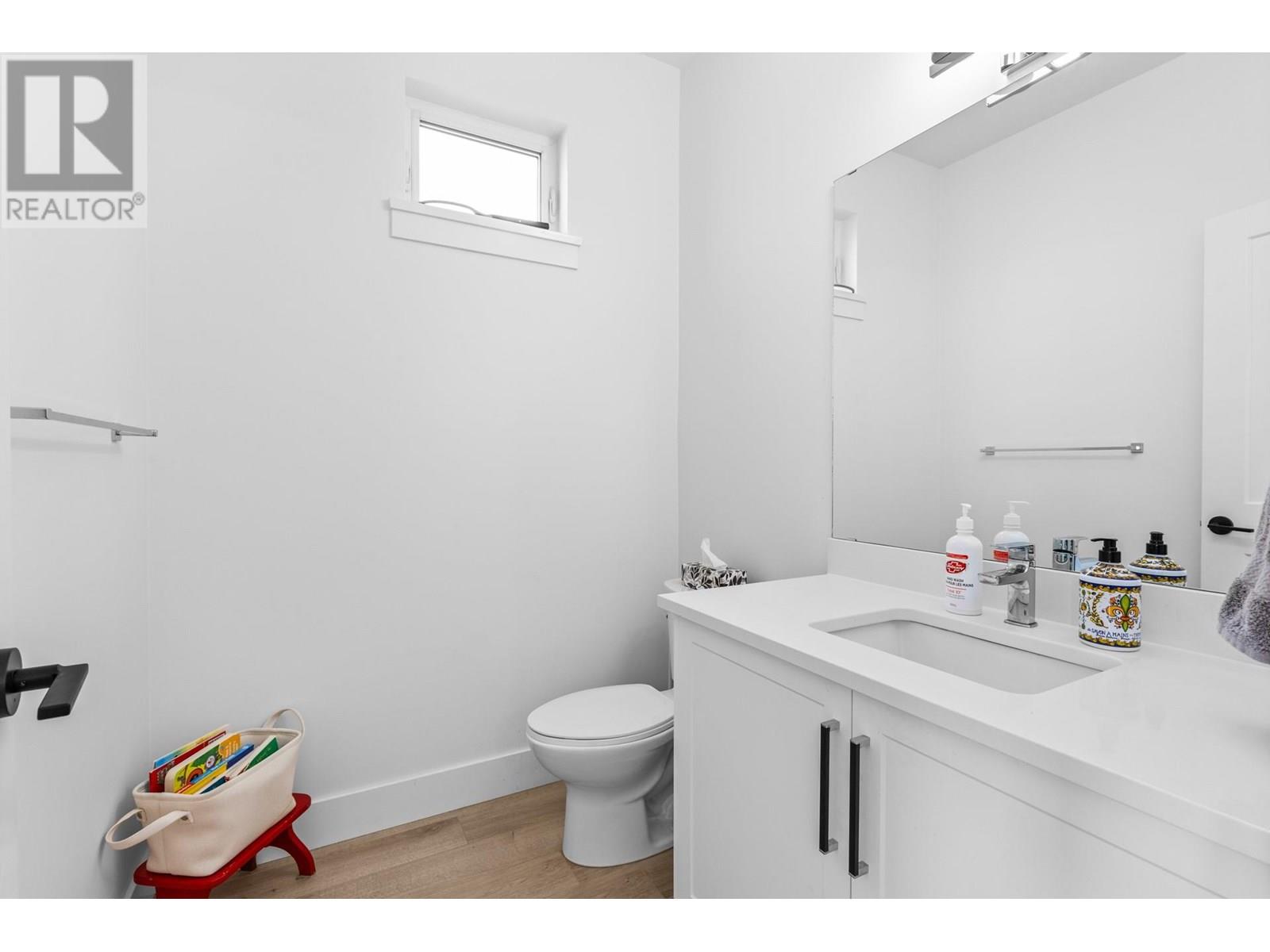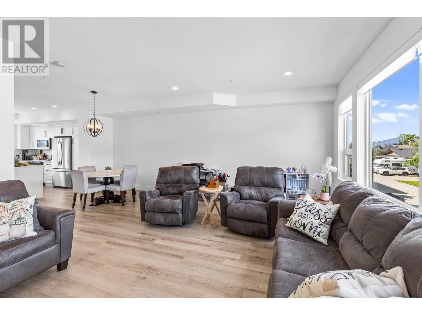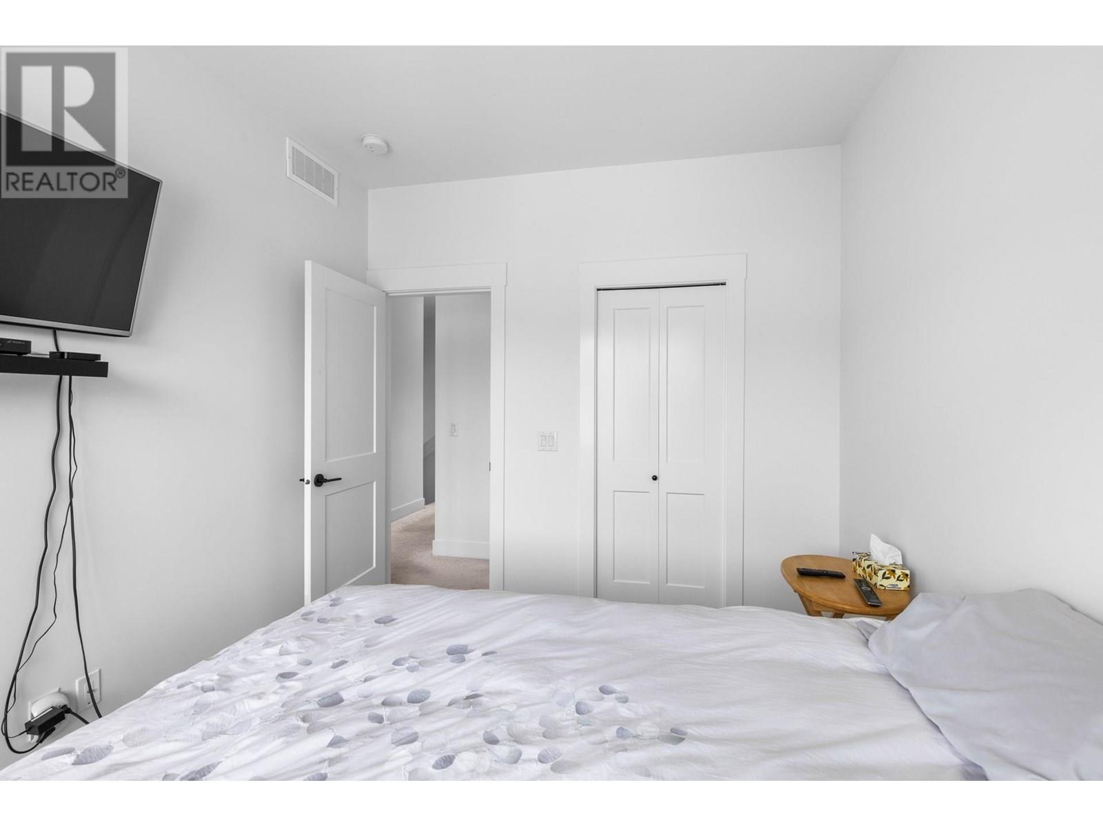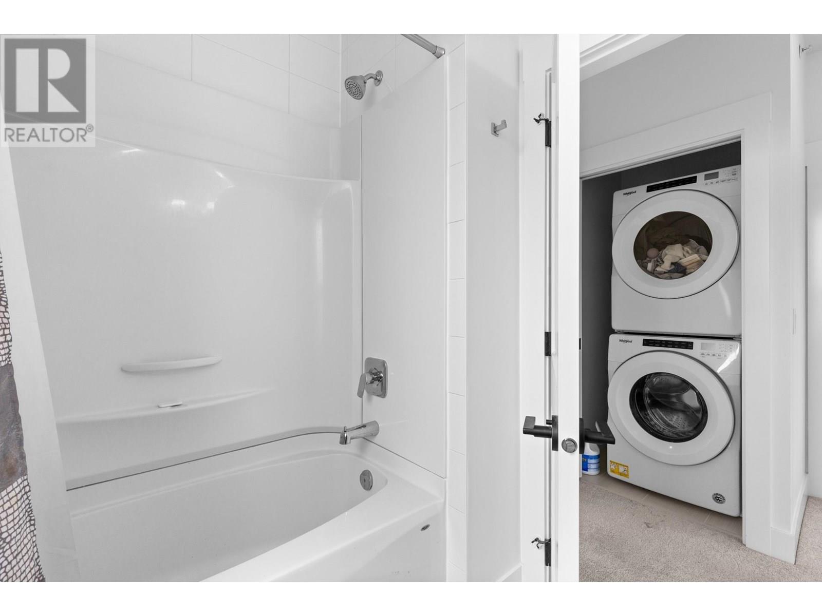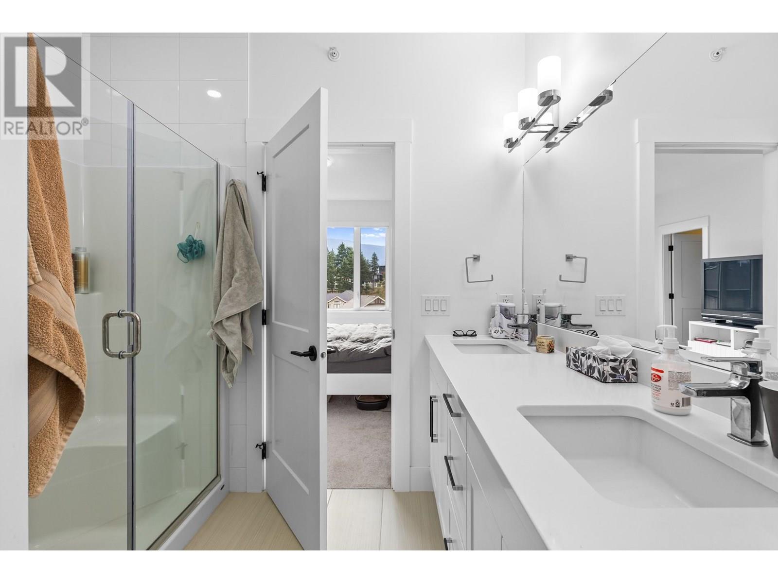 Bright & Modern End Unit in Rockridge at The Lakes. A vibrant and family/pet friendly townhome community in the heart of Lake Country. This stylish 3-bedroom + den/flex, 3-bathroom end unit offers the perfect blend of space, functionality, and comfort. Flooded with natural light, the main floor showcases a modern open-concept design with large windows throughout. The kitchen is a true highlight, featuring quartz countertops, a gas range, sit-up island, and cozy eating nook. The layout flows seamlessly into a spacious dining area and bright living room—perfect for everyday living and entertaining. Step out from the kitchen to your private, elevated backyard oasis with panoramic Eastern Mountain views. With no units directly behind, you’ll enjoy added privacy along with a gas hookup, power, and water connection. Upstairs you’ll find three well-appointed bedrooms, including a generous primary suite with a 4-piece ensuite. The laundry is conveniently located on this level as well. The lower level adds valuable flexibility with a den/flex room – perfect for a home office, gym, or guest space. Additional features include a double car garage, a full-length 26 ft driveway that easily accommodates most vehicles, and close proximity to visitor parking—making hosting friends and family a breeze. This home truly has it all—modern comfort, unbeatable functionality, and a fantastic location. (id:21321)