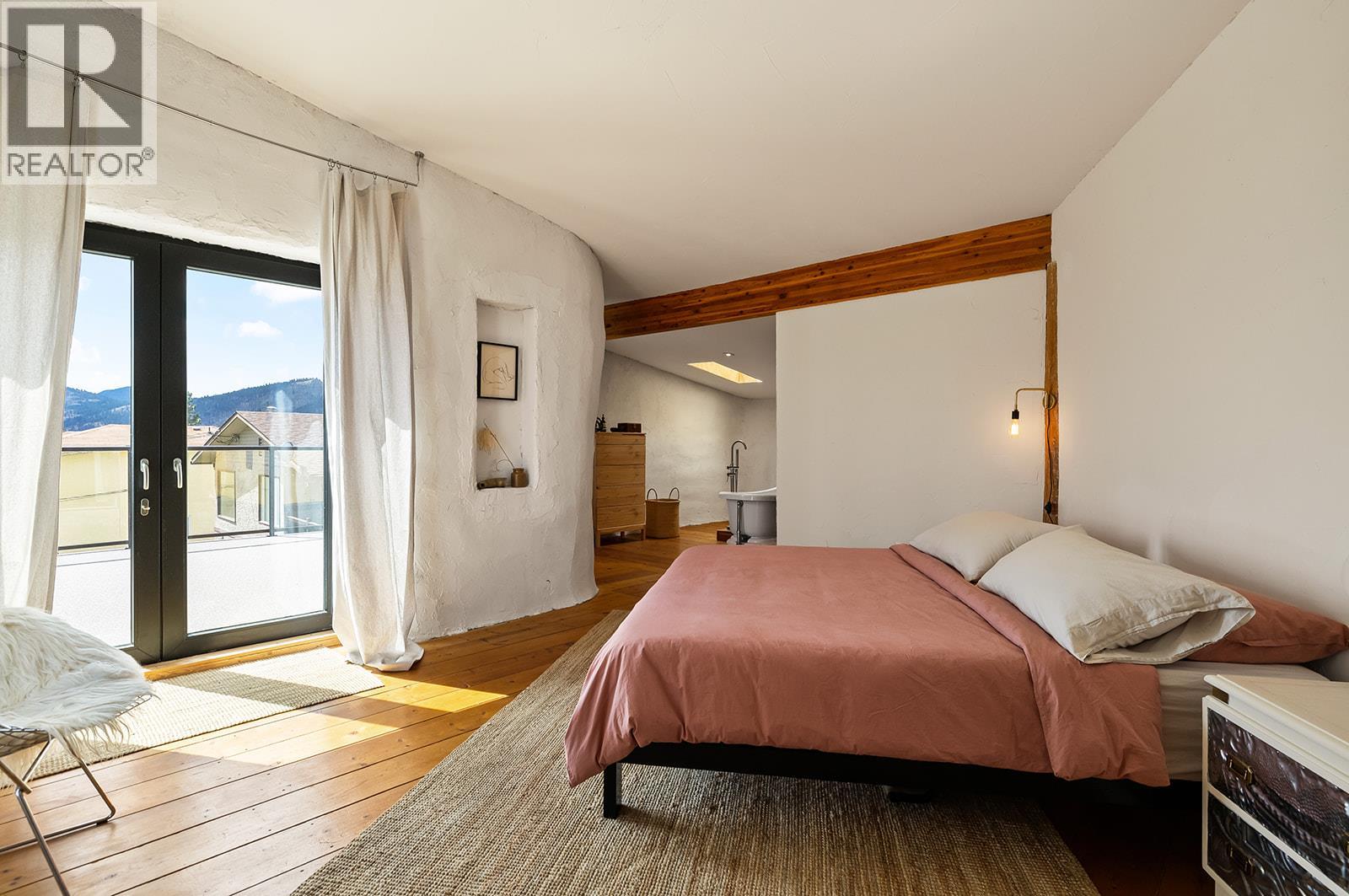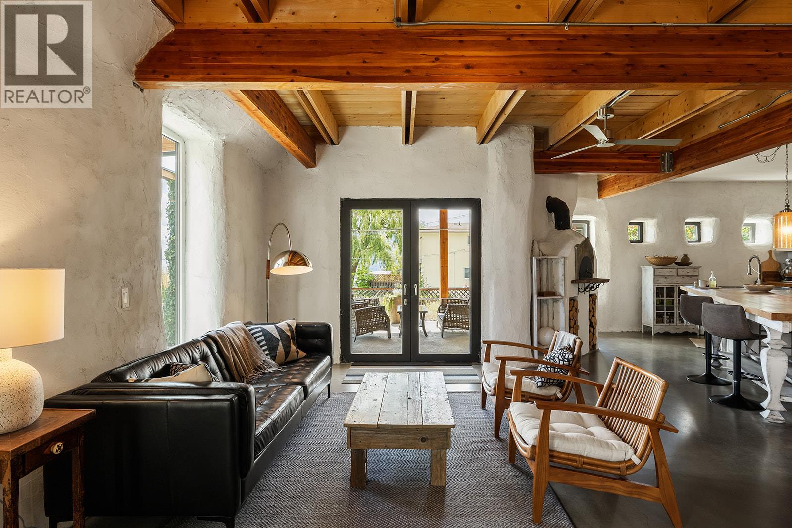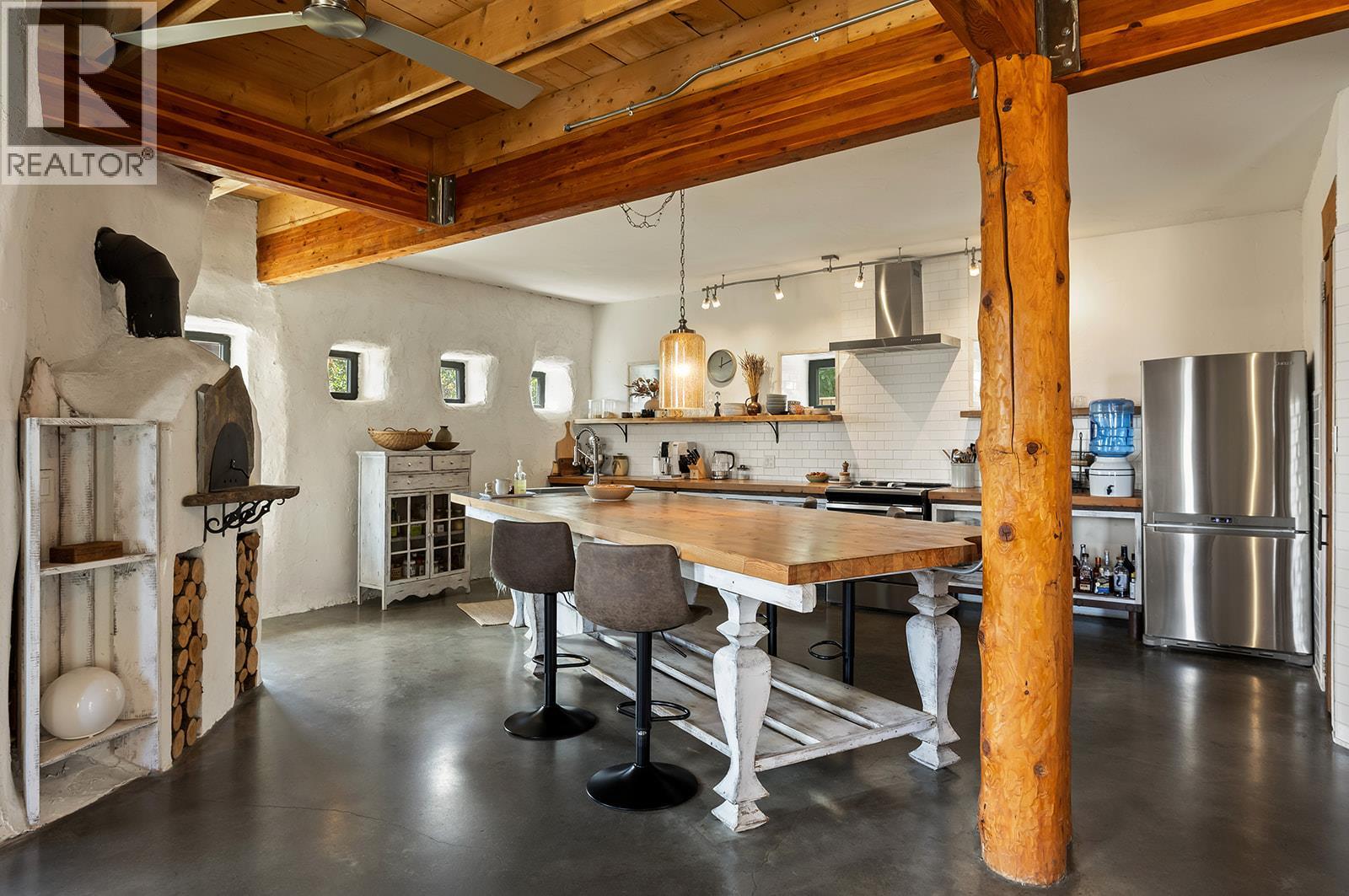 This one of a kind timber-frame straw-bale home blends architectural beauty with exceptional energy efficiency. Thoughtfully designed and extensively upgraded, this residence delivers remarkable heat retention and year round comfort with extremely low operating costs, averaging just three cords of wood annually for heating. The home features a Blaze King wood stove with long burn times, hydronic in floor heating on the main level, dual heat pumps for heating and cooling, and high performance tilt turn Innotech windows and doors. The ICF concrete slab, 18 inch straw bale walls, and reclaimed wood flooring naturally regulate temperature throughout the home, with upper level floors back beveled to allow warm air circulation. The kitchen showcases a wood fired Forno pizza oven, massive eat up island and apron sink, while the spa inspired main bathroom offers a 2025 tiled walk in shower, bidet, and in floor heat. Outdoors you will find a large covered patio, solar heated saltwater lap pool, veranda, newer fencing with custom metal caps, and a durable metal accented exterior. Major updates include a 2018 roof and eavestroughs, 2019 Duradeck upper deck, 2024 heat pump, and sewer brought onto the property with connection at the lot line. The property may support a future double garage with carriage house, buyer to verify. Built by the original owner with a passion for sustainable living, this is a rare opportunity to own a highly efficient and beautifully crafted home. (id:21321)