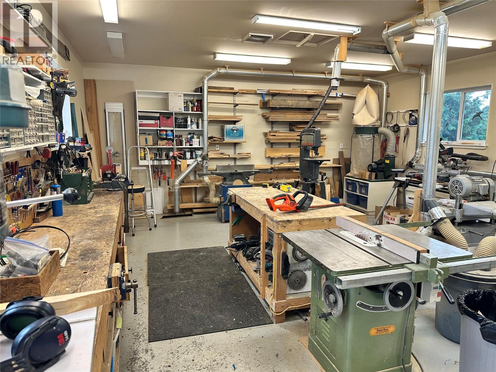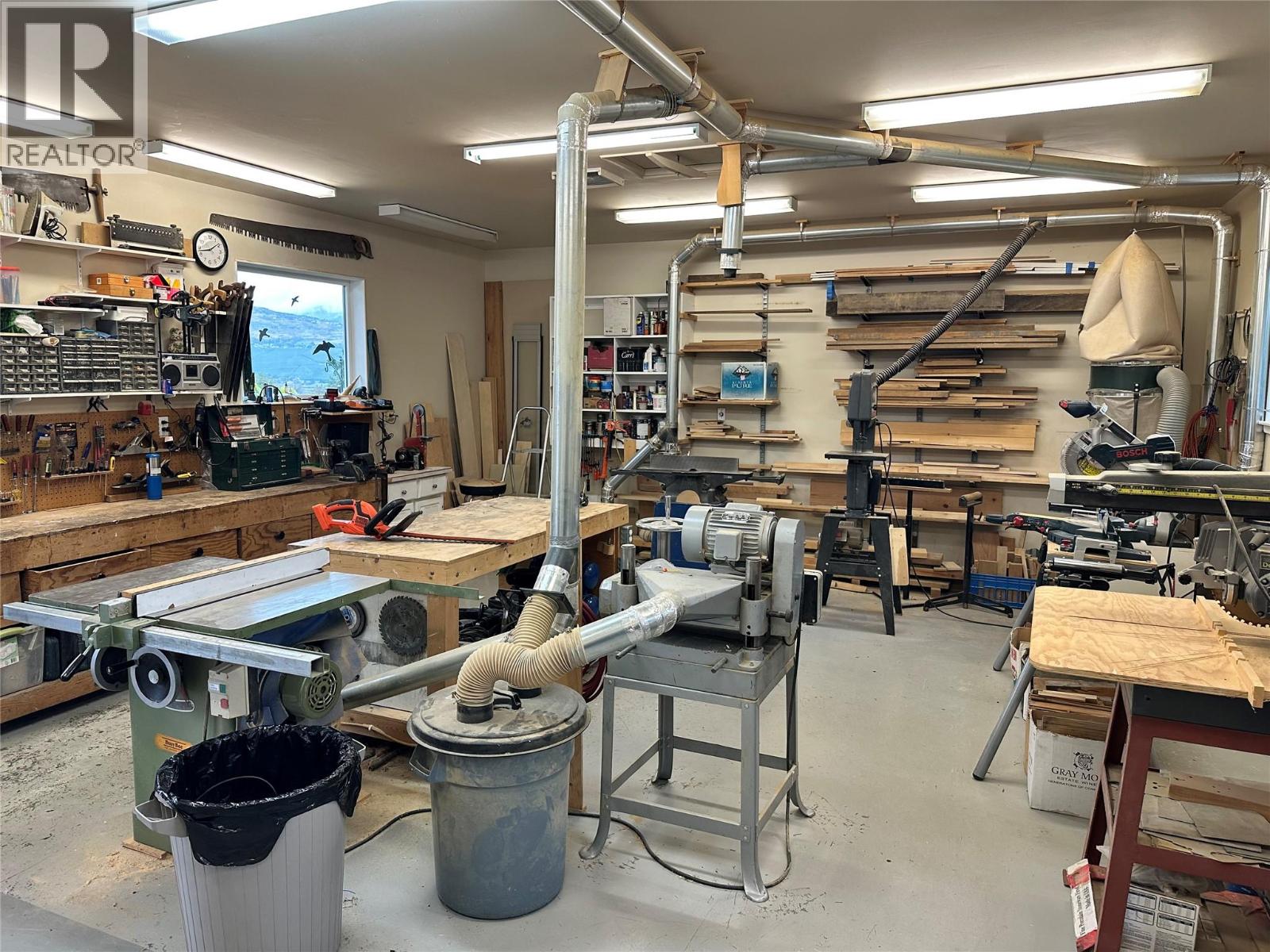 This charming family home offers a well-designed layout with pride of ownership evident throughout. It features 3 bedrooms and 3 bathrooms, located on a quiet dead-end road just a short drive from downtown Vernon. The property includes a unique garden shed an impressive 560 sq.ft. insulated woodworking shop, perfect for hobbyists or professionals, with the owner open to selling the equipment and tools. Main highlights: Primary bedroom on main floor with walk-through ensuite. Modern kitchen with stainless steel appliances, large island, and formal dining area. Cozy living room with gas fireplace. Laundry room adjacent to a half bathroom and electric sauna. Upstairs with two bedrooms, a shared bathroom, and a versatile space for a desk or small library. Beautiful covered deck overlooking a manicured backyard with garden shed and views of Swan Lake, city, and mountains. Large double garage, RV parking, and additional guest parking. This home seamlessly combines comfort, functionality, and scenic views, making it a wonderful place for family living, entertaining, and hobbies. (id:21321)
