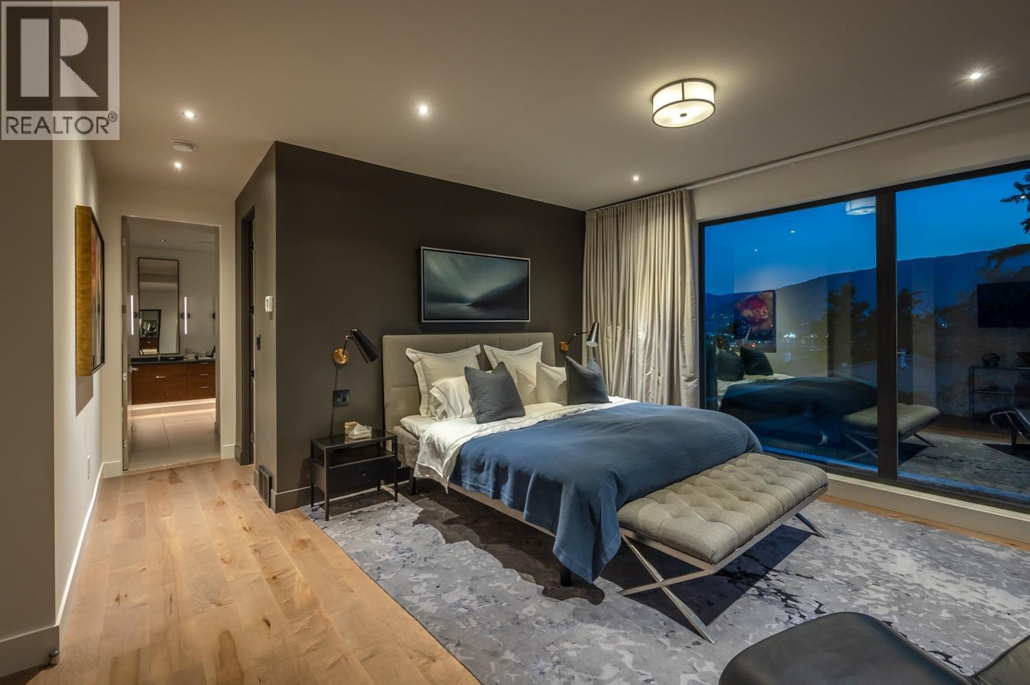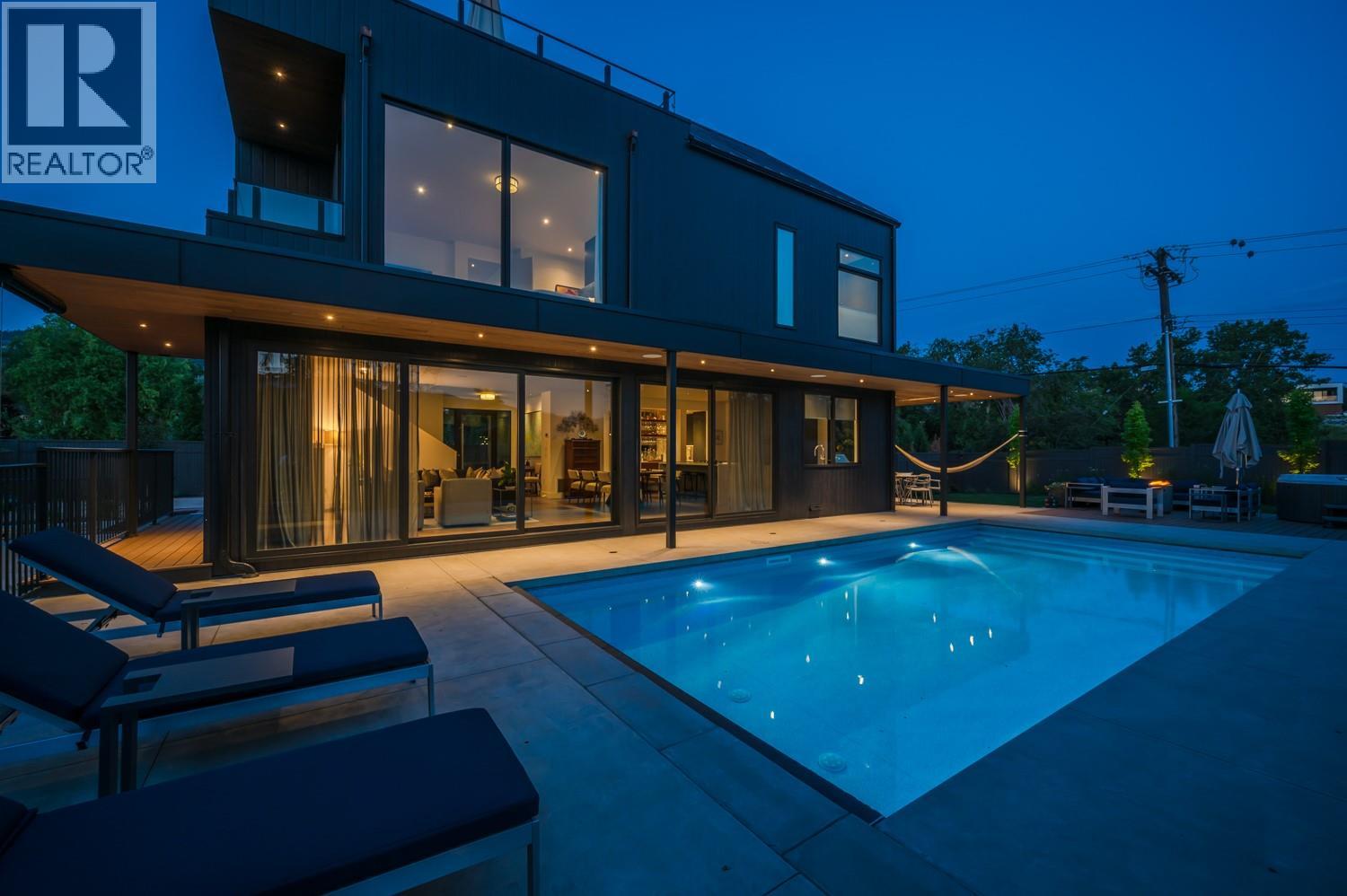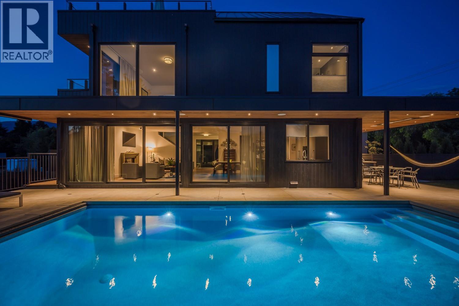 This exquisite one-of-a-kind residence is located on Penticton’s coveted Golden Mile just steps from the KVR and minutes from renowned Naramata Bench wineries. A gated entrance welcomes you into the heart of this contemporary home, to a private courtyard perfect for outdoor dining. The open-plan living and dining areas offer a stylish & inviting space, masterfully complemented by a thoughtfully appointed kitchen with custom cabinetry, integrated Fisher & Paykel appliances, a dry bar, and a butler’s pantry complete with a secondary fridge and dishwasher. Seamlessly blending indoor and outdoor living, the beautifully landscaped gardens surround a stunning saltwater pool, jacuzzi, lounge area, and a covered dining and BBQ terrace - the perfect space for entertaining or relaxing. The primary suite boasts two walk-in closets and a lavish ensuite with a wet room for ultimate relaxation. The lower level has a fully equipped home-gym and a guest suite with direct access to yet another garden space. The rooftop deck offers breathtaking, unobstructed views of the lake and city – perfect to unwind or entertain. During the summer months this property generates impressive rental income, with the home commanding up to $10K per week. This is truly the epitome of sophisticated living, offering both privacy and unparalleled luxury in one of Penticton's most desirable locations. Contact the listing representative or your REALTOR® for a private viewing. All measurements are approximate. (id:21321)