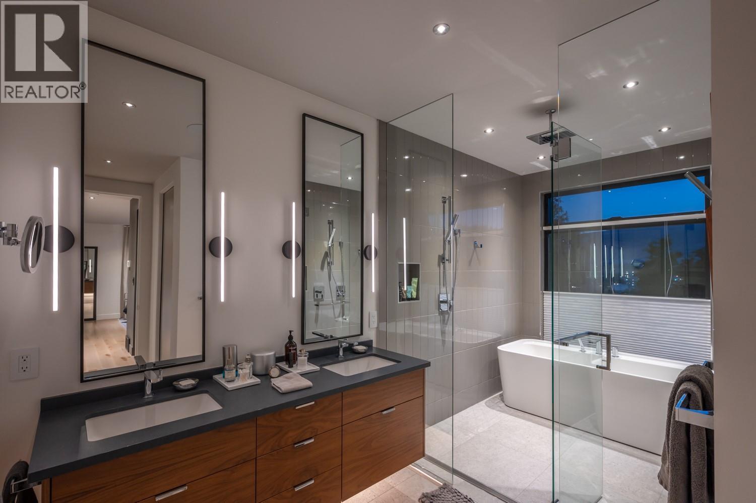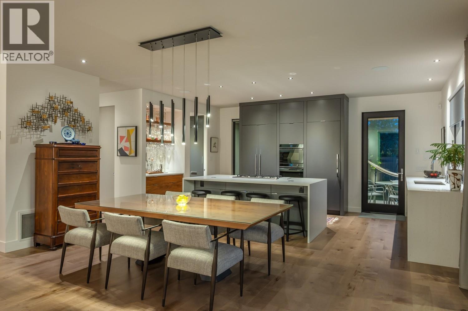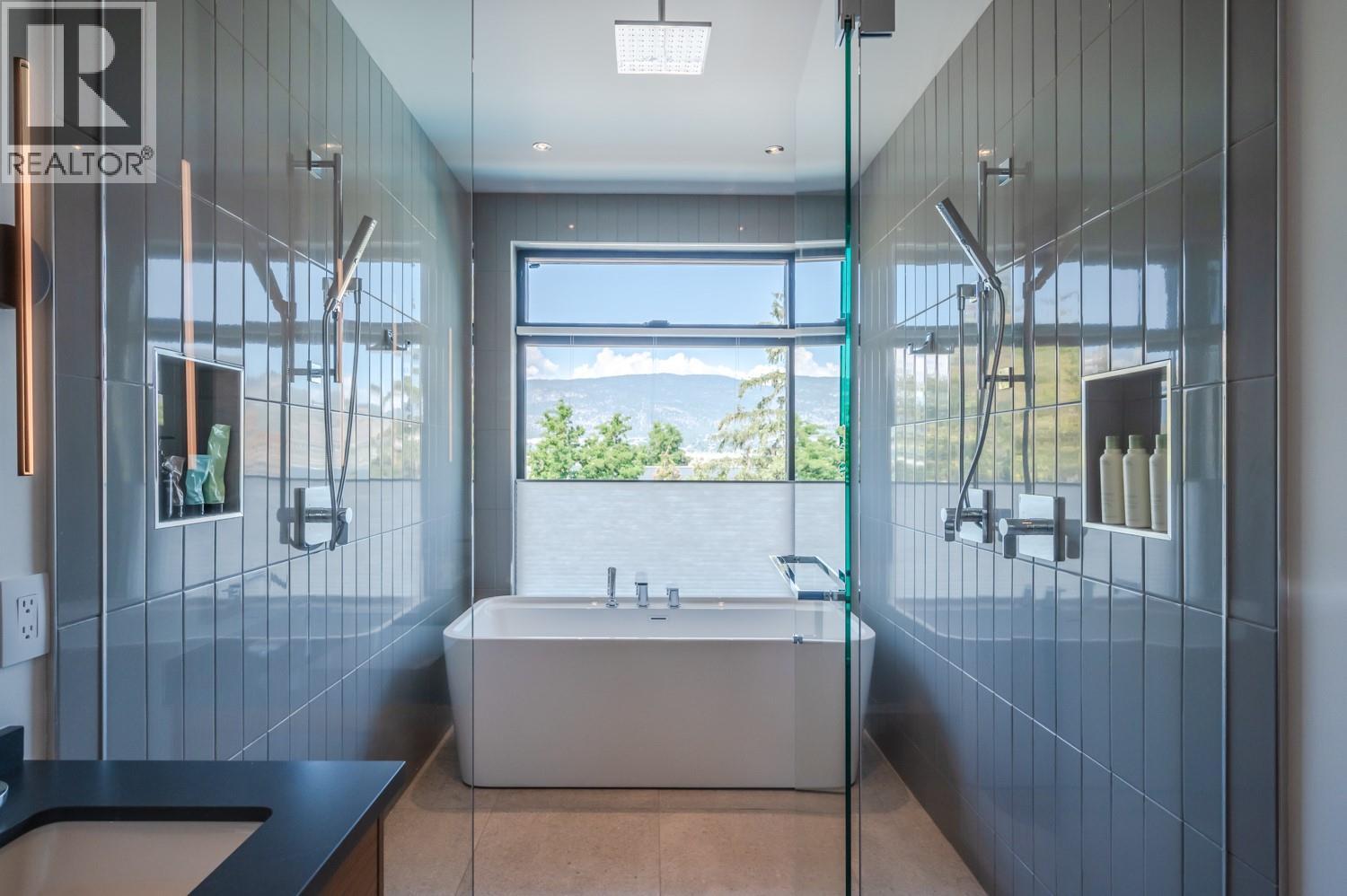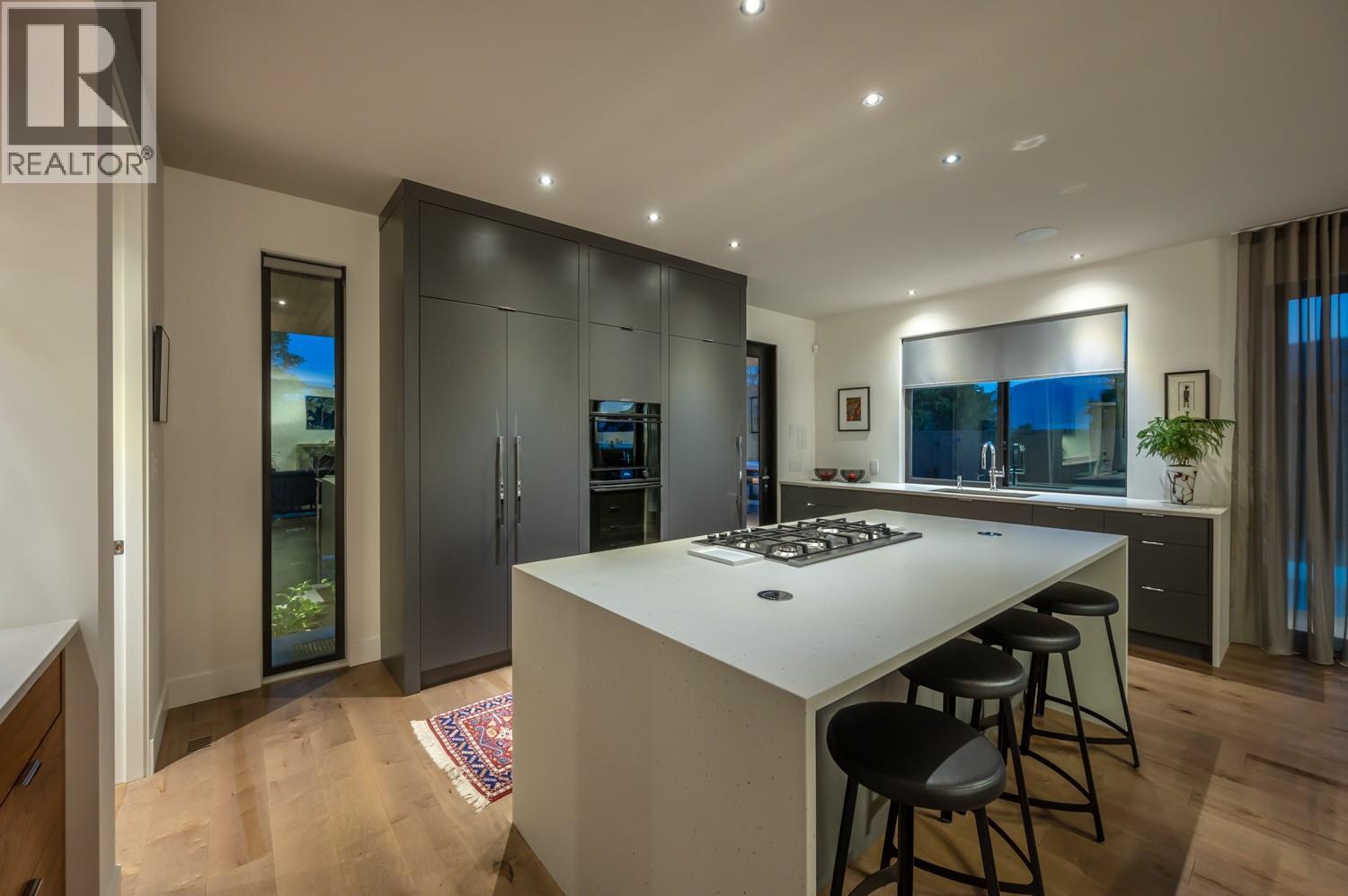 This exquisite one-of-a-kind residence is located on Penticton’s coveted Golden Mile just steps from the KVR and minutes from renowned Naramata Bench wineries. A gated entrance welcomes you into the heart of this contemporary home, to a private courtyard perfect for outdoor dining. The open-plan living and dining areas offer a stylish & inviting space, masterfully complemented by a thoughtfully appointed kitchen with custom cabinetry, integrated Fisher & Paykel appliances, a dry bar, and a butler’s pantry complete with a secondary fridge and dishwasher. Seamlessly blending indoor and outdoor living, the beautifully landscaped gardens surround a stunning saltwater pool, jacuzzi, lounge area, and a covered dining and BBQ terrace - the perfect space for entertaining or relaxing. The primary suite boasts two walk-in closets and a lavish ensuite with a wet room for ultimate relaxation. The lower level has a fully equipped home-gym and a guest suite with direct access to yet another garden space. The rooftop deck offers breathtaking, unobstructed views of the lake and city – perfect to unwind or entertain. During the summer months this property generates impressive rental income, with the home commanding up to $10K per week. This is truly the epitome of sophisticated living, offering both privacy and unparalleled luxury in one of Penticton's most desirable locations. Contact the listing representative or your REALTOR® for a private viewing. All measurements are approximate. (id:21321)