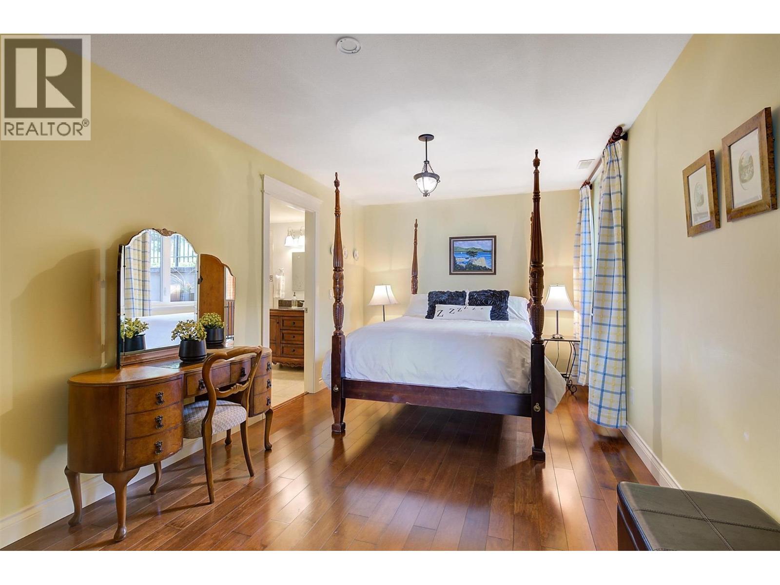 This Lakeshore Property has one of the best views on Okanagan Lake! There are just a few pockets that showcase the stunning night lights of Downtown Kelowna. If you are looking for a unique lakeshore opportunity this is it. Sitting just a few minutes North of the Kelowna bridge, you will appreciate the convenience of the location, as well as the privacy that this neighbourhood offers. This custom home, built to represent French Country Style, provides you with a piece of Okanagan Paradise. Expansive, oversized windows on all levels insure you can take in the views from the majority of the home. While you are guaranteed to enjoy the upper level primary sleeping and living quarters, with 6 beds and 5 baths over 3800sqft, the home was crafted for the ultimate guest experience with multiple rooms featuring large ensuite bathrooms and a private lower level suite that walks out to a hot tub and putting green. The open concept kitchen flows comfortably into the main living room with 10ft ceilings and stunning fireplace. You will be impressed by the kitchen's large pantry, dual ovens, gas range and custom maple cabinetry. The exterior stairwell will take you down to a flat grassy area beside 70 feet of waterfront with beach house and large dock. If you need parking, this home has it all, with a double garage, 4 car carport, and RV parking, as well as a large workshop and storage area. Come see all this home has to offer today! (id:21321)