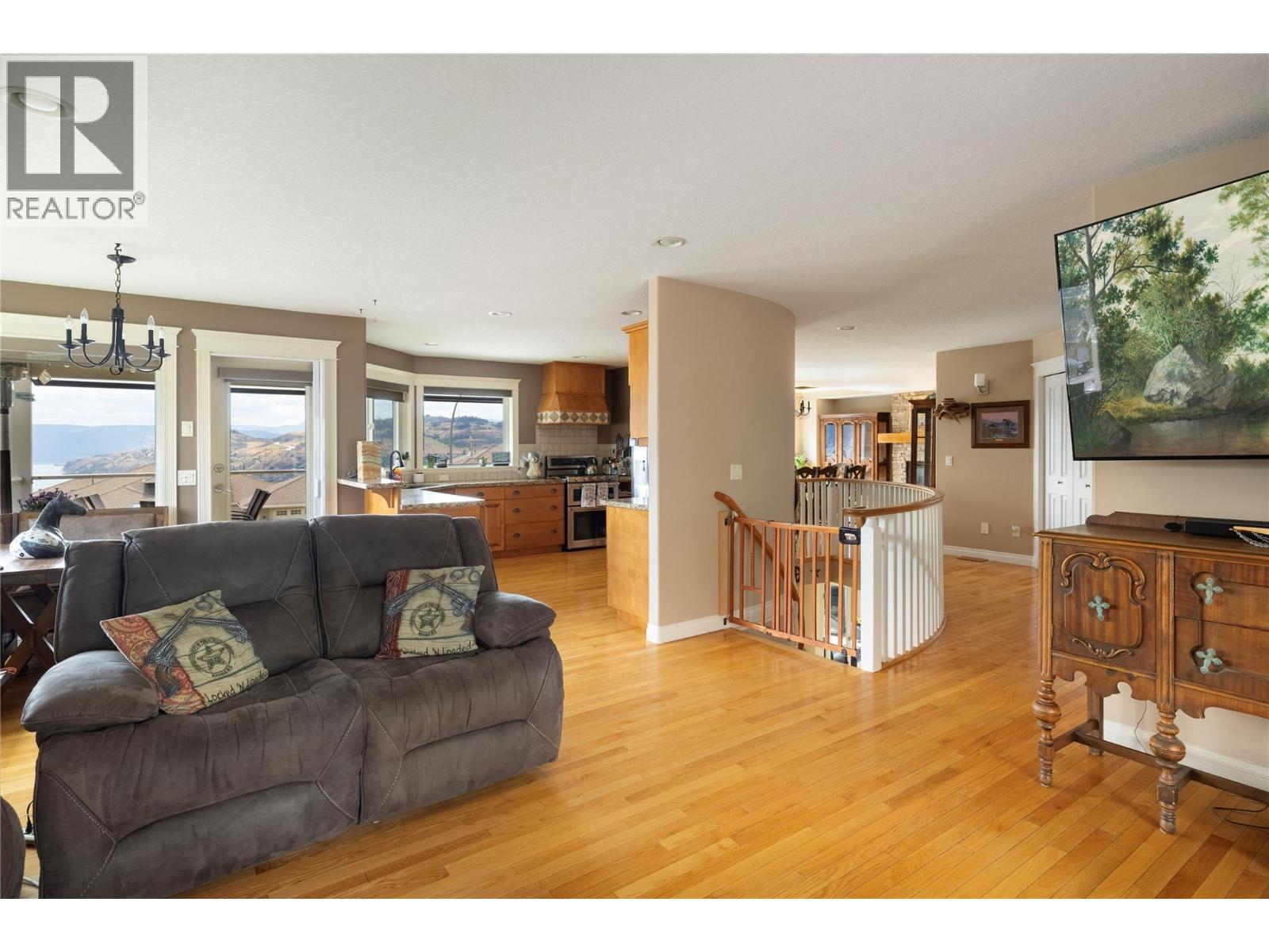 Welcome to this fantastic Coldstream 5 bedroom 3 bathroom family home on Middleton Mountain with awesome Kal lake views! Plenty of parking with space for large RV on the right hand side. Nice sized backyard off the main living area. Has both a rear patio and a big covered front deck off the kitchen area to enjoy the Kalamalka Lake views and Okanagan weather. High quality build with features like the curved stair case and in-floor heat on the upper floor. Main floor has 3 bedrooms with includes a larger master with full ensuite. Kitchen has granite counters, updated appliances, and solid wood cabinetry. Downstairs has 2 more bedrooms and family room. Lots of storage and large laundry room. Upgrades in recent years include the furnace, AC, gas stove, fridge, dishwasher, gutter leaf guards, paint and more. Roof has also been replaced once. Grass has irrigation in the front and back yards. Amazing location close to parks, trails and all amenities. Come see everything this home has to offer! (id:21321)