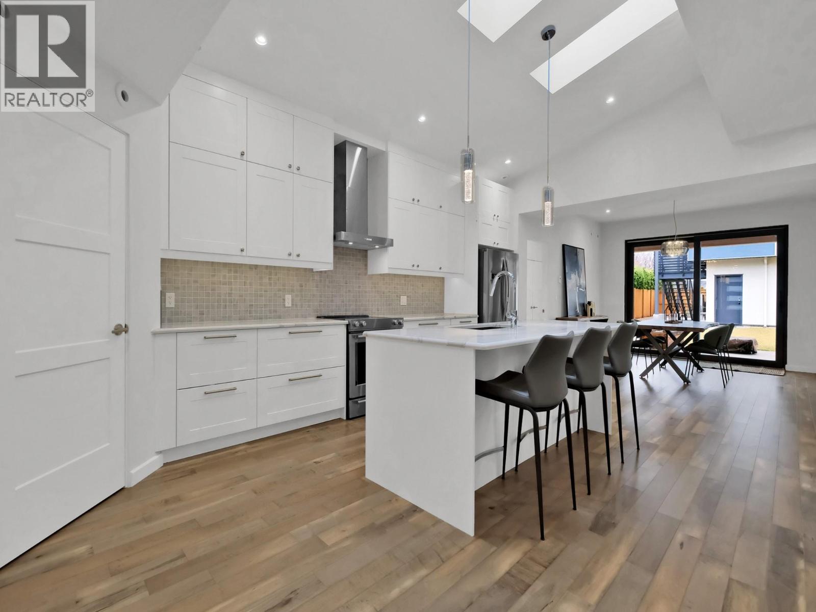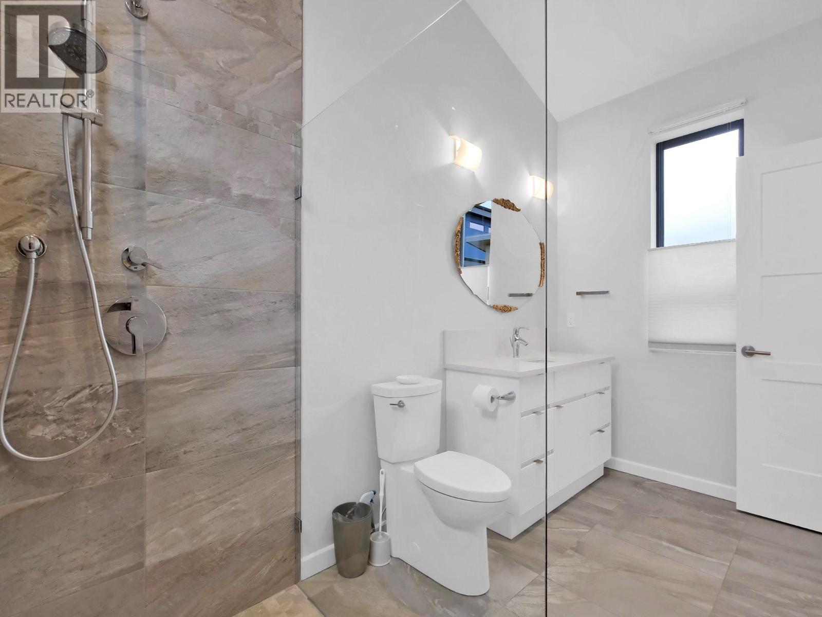INCLUDES A CARRIAGE HOME & Just Steps to Okanagan Lake! This 2,400 sqft custom built home with BONUS 842 sqft Carriage Home is meticulously crafted to meet Step 3 building code standards, boasting cutting edge solar energy & a hydronic radiant in floor heating system. Given the NEW provincial Airbnb regulations, this property is an ideal investment, strategically positioned to serve vacationers while adhering to the ever evolving housing regulations. Experience contemporary luxury in this 3 bd + den / 3 bth beauty! The main floor showcases a chef's kitchen with Cambria Quartz countertops, complemented by Engineered Maple hardwood floors with hydronic in floor heat. A wood burning frpl, vaulted ceiling living area, seamlessly transition through large glass sliders to the outdoor living space. Upstairs, the primary bdrm retreat has an ensuite with a glass shower, walk in closet, & large private deck. An additional bdrm & a full bthrm complete the upper level. With a focus on sustainability, this eco-conscious residence minimizes its carbon footprint & energy usage. Noteworthy is the 842 sqft 1 bdrm carriage home, above the oversized sized double garage on the south side of the rectangle lot. The garage is equipped with wiring for an EV charger. This home was designed with top of the line features. Total sq.ft. calculations are based on the exterior dimensions of the building at each floor level & inc. all interior walls & must be verified by the buyer if deemed important. (id:21321)