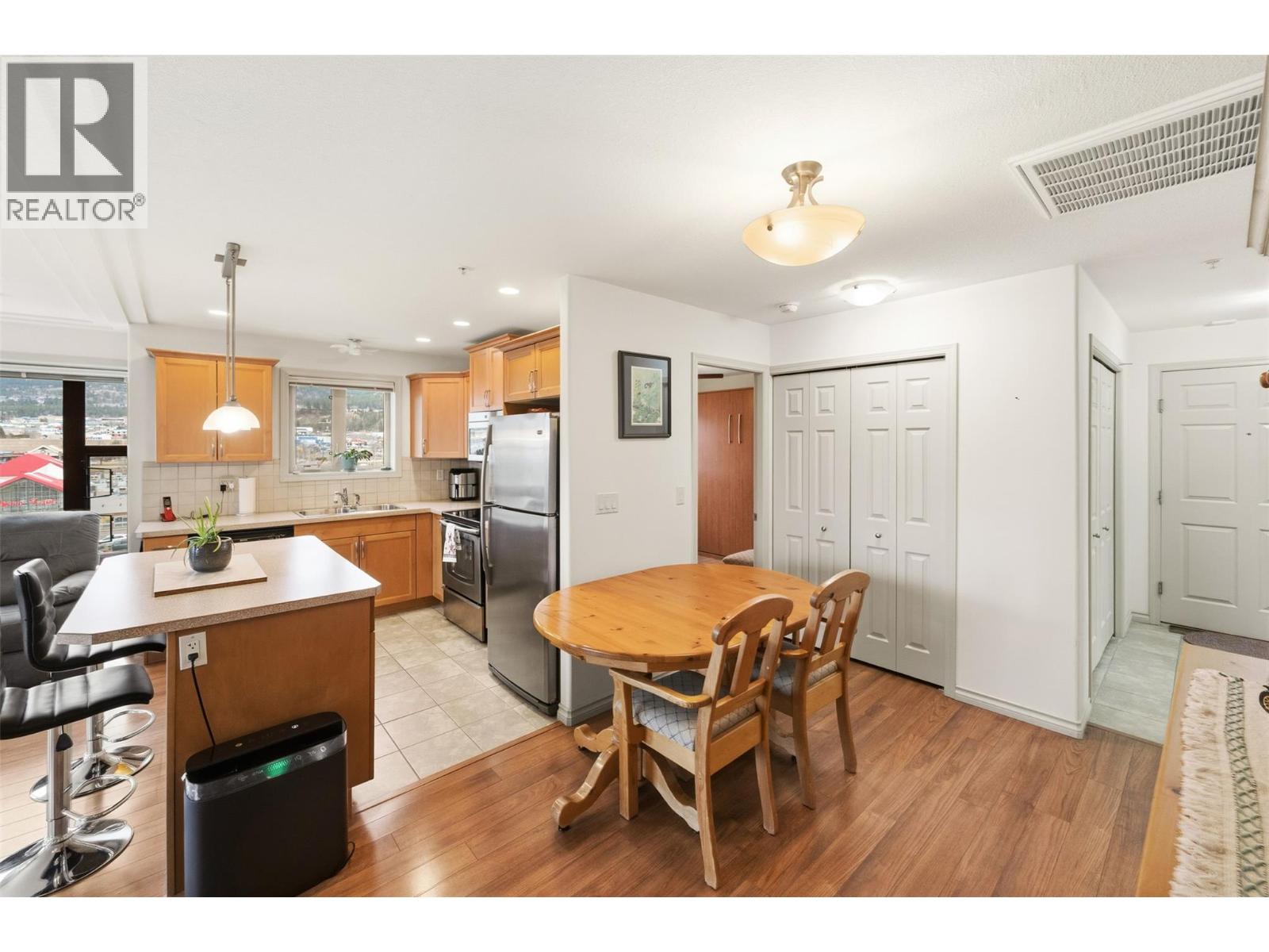 Views for miles from this bright, well appointed north east corner unit. This two bedroom, two bathroom home offers an abundance of natural light and huge windows, welcoming the sunshine into the open concept main living area. The kitchen space includes an island with storage and seating, a pantry closet, and all appliances including a built in microwave. The spacious primary bedroom offers a walk through closet and a private ensuite with walk in shower. The second bedroom is a versatile space with a custom made Murphy bed with built in desk and shelving, great for a work space or hobby area. Other features include a gas fireplace, in suite laundry, of course the main full bathroom with tub/shower combo, hot water on demand, central air conditioning and forced air heating. Being only steps to Cherry Lane Shopping Center, direct access to the bike lane and the transit hub, a car is not a necessity living here. However, included with this unit is a secure underground parking stall and a storage locker. Amenities of this complex are an exercise room, an incredibly organized library and a meeting room. All ages are welcome, pets are allowed with some size restrictions and there are no short-term rentals. Call for your private viewing today. (id:21321)