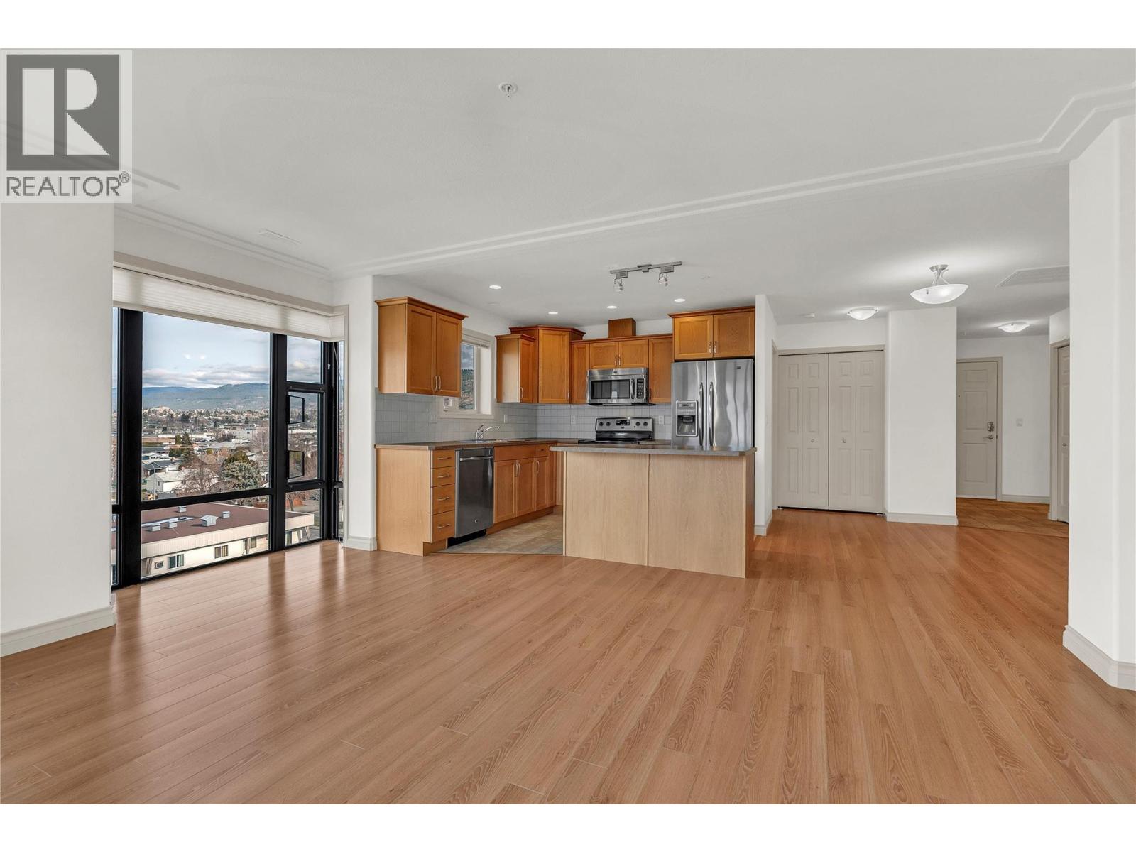 Best location in the building! Welcome to easy living in this bright, move-in ready condo located in Phase 2 of Athens Creek Towers—perfectly positioned on the 7th floor as a NW CORNER unit with incredible views. Whether you're downsizing or looking for a low-maintenance lifestyle, this home has it all! This 2 bedroom, 2 bathroom unit offers a smart open layout with large windows wrapping around the living space for natural light all day, and a gas fireplace you can enjoy from the kitchen, dining, and living areas. The spacious patio expands your living space even further. The kitchen has plenty of cabinetry and a large island with bar seating. The primary bedroom includes a walk-in closet and ensuite with a walk-in shower, while the second bedroom is perfect for guests, hobbies, or a home office. There's also ample in-unit storage to keep everything tidy, while also having a designated secured storage locker underground as well. Step outside and you’re literally across the street from Cherry Lane Mall, Save-On-Foods, London Drugs, banks, pharmacies, a walk-in clinic, and Lions Park. Pet-friendly building allows 2 pets (dogs or cats). Great amenities like a fitness room, library, and regular social events. Quick possession possible! (id:21321)
