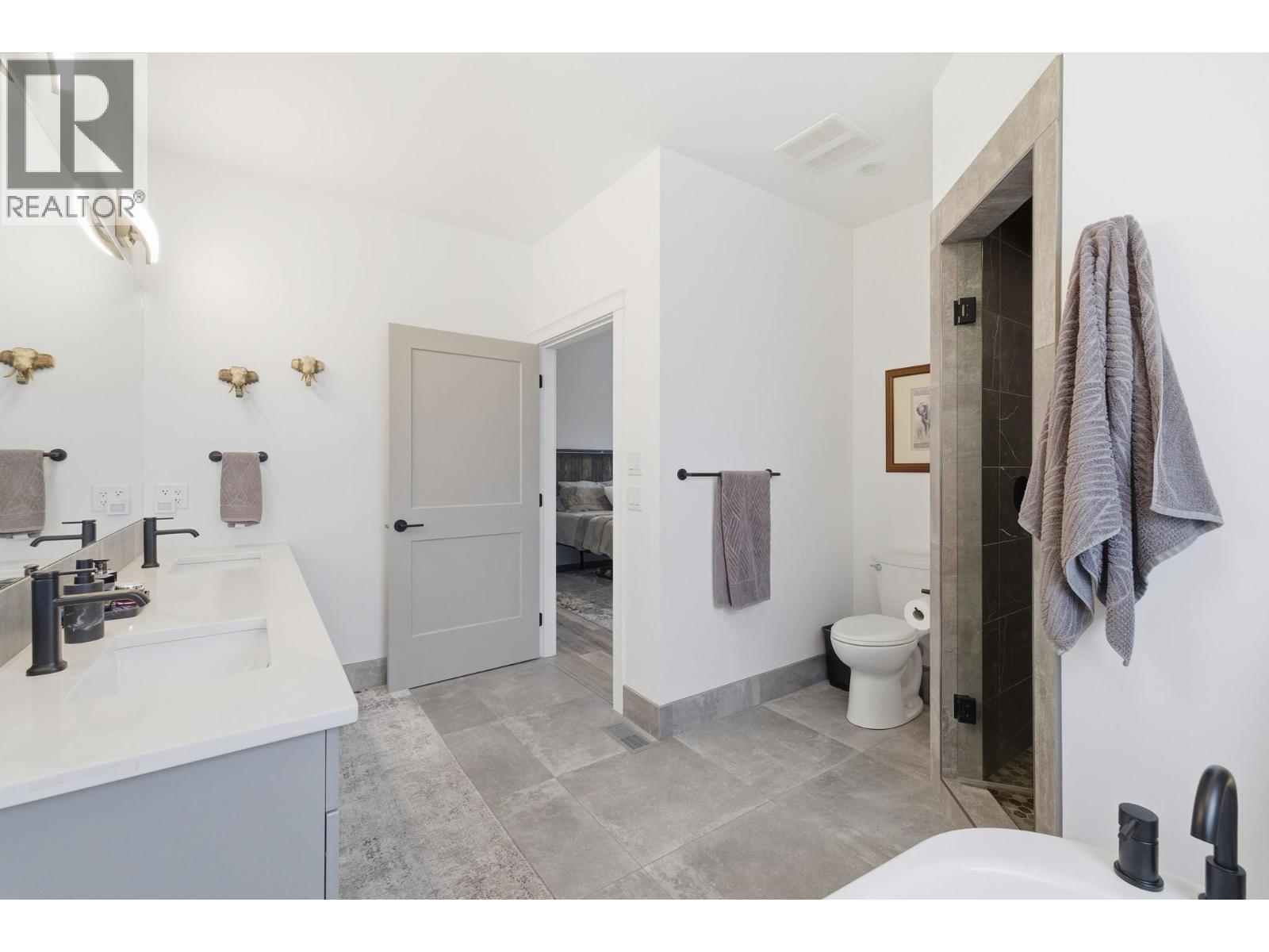 Luxury living in sought after Lakeview Heights - this stunning home truly has it all. Designed to impress, oversized windows showcase beautiful mountain views, while luxury vinyl plank flooring, sleek modern fixtures, and abundant storage create a refined yet functional living space. The chef-inspired kitchen features an oversized island, quartz countertops, stainless steel appliances, and ample cabinetry, seamlessly flowing into the open-concept dining and living areas highlighted by a tile-surround fireplace. The primary suite is a private retreat, complete with a custom walk-in closet and a spa-like ensuite offering dual sinks, a free-standing soaker tub, and a tiled walk-in shower. The main level also includes a second bedroom with cheater ensuite access to the 4-piece bath and a spacious laundry room with sink and folding area. Downstairs, enjoy a large rec room, 3-piece bathroom plus a versatile basement suite that can function as part of the home or as a separate 1 or 2 bedroom rental with enhanced soundproofing, full kitchen, 4-piece bath, and open-concept living area. Completing the package is an impressive 1,100 sq. ft. oversized triple garage, prewired for a 220V EV charger and heater, with space for a workshop. Ideally located within walking distance to local wineries, shopping, and sports amenities. (id:21321)