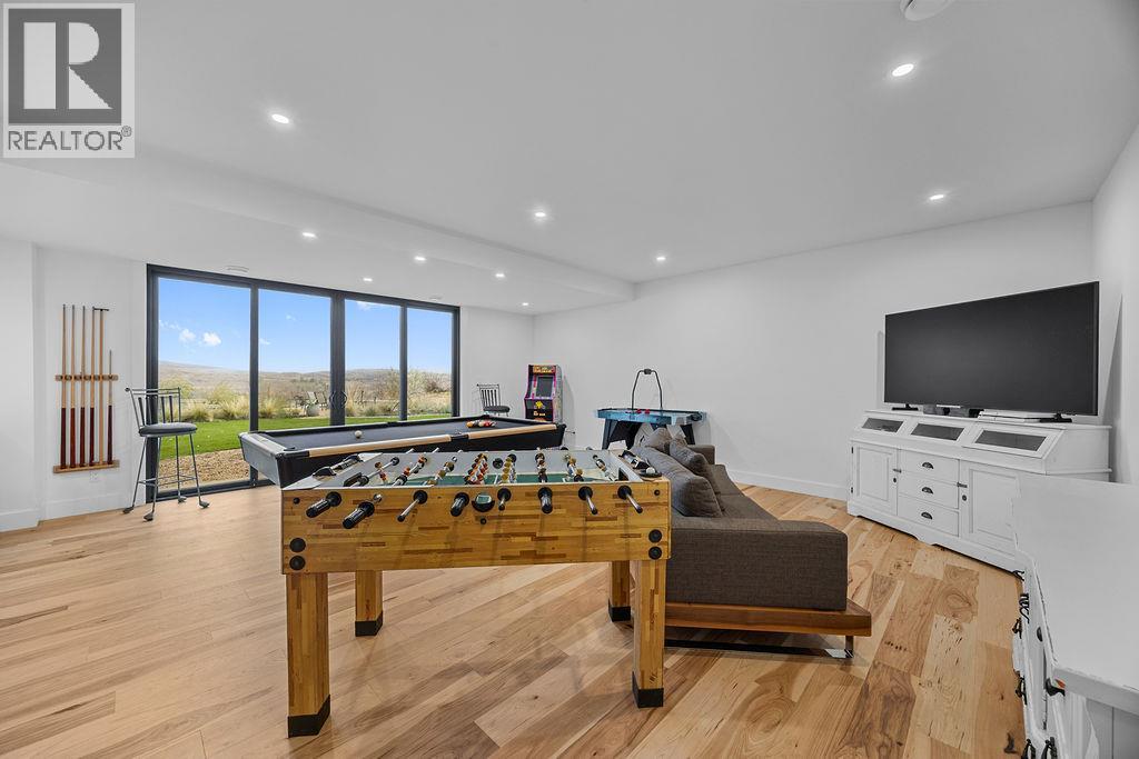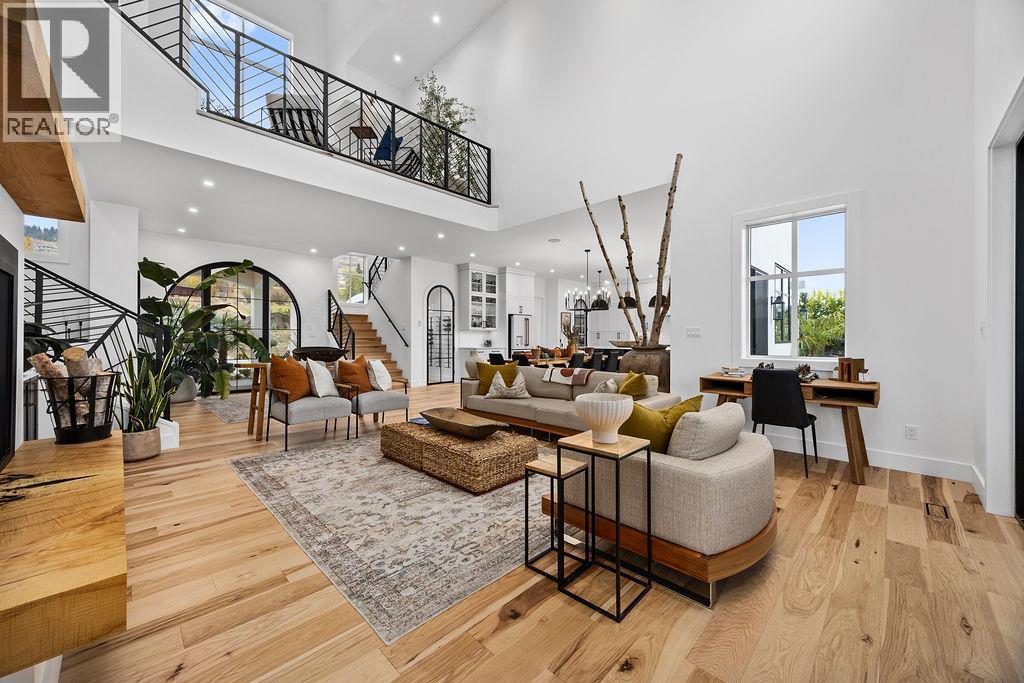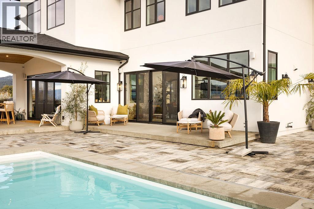Stunning new architecturally designed executive home on 12 acres of prime, fertile BX land, with unbelievable views overlooking Swan Lake. This property would lend its self so amazingly well as an estate winery with tasting room, agri tourism business, incredible wedding venue or just as an outstanding private estate property. The detail and complexity will captivate you the moment you step out of your vehicle and in through the custom designed arched glass door and foyer and into the great room with soaring 27 foot ceilings and glass wall soaking in the incredible views. Incredible kitchen with 10 foot ceilings, a massive white quartz island, 36 inch gas stove with custom hood fan and high end appliances. The main living space will blow your mind with gleaming heritage hickory hardwood flooring throughout, 5 bedrooms, 4 bathrooms, 2 laundry areas, a butlers pantry, wine cellar, and architectural bridge overlooking the great room. The lower level offers an expansive rec-room/games room, the main level great room leads out to an incredibly inviting covered patio area with gas fire table overlooking the valley and a custom tiled unground pool with waterfall feature. Massive triple car garage with 10x10 insulated doors, and a stunning 2 bed carriage home suite above, and pool change room next to the hot tub. Fertile and lush south west facing land that is fully fenced with 10ft deer fencing, irrigation water and domestic water with extensive irrigation throughout. (id:21321)