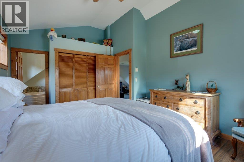 Spacious 3-Bedroom Home Backing Onto Parkland! This 2200+ sq.ft. 3-bedroom, 3-bathroom home offers the perfect blend of comfort, function, and outdoor living, all while backing onto beautiful provincial parkland and 5min walk to the lake. The inviting main floor features a bright kitchen, dining area, living room with fireplace, and a bedroom serviced by a full bathroom with laundry. Step outside to enjoy the large front porch or expansive back deck, creating seamless indoor/outdoor living. Upstairs, a spacious loft overlooks the main level and connects to a private balcony. The master bedroom includes a full ensuite with a large soaker tub. The lower level adds a large recreation room, a third bedroom, and flexible spaces that can easily convert into an additional bedroom. The well-manicured yard features fruit trees, gardens, and a back gate leading directly into the park. A detached 2-car garage/shop is perfect for hobbies, projects, or storing all your toys, with plenty of additional parking available. Modern comforts include recent heat pumps for summer cooling and a 2025-installed backup battery bank for peace of mind during power outages. Built in 2008, this home is ideal for retirees seeking a quiet retreat or families wanting space and direct access to outdoor adventures. Hydro averages just $100/month! Come grab your piece of paradise before it’s gone! (id:21321)