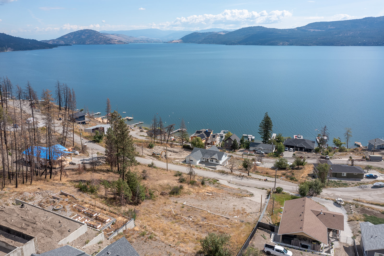 A fantastic LAKE VIEW building lot in the sought-after Estamont area on Westside Road. Build your DREAM HOME and take advantage of the captivating 180-degree lake views. This .38-acre LAKE VIEW lot is fully serviced and features a front driveway and a ready-to-go house-building pad at the top of the property, perfectly situated for VIEWS. The gently sloped lot is perfect for a walk-out basement design, and the two concrete retaining walls offer additional parking or space for vegetable gardens. Essential utilities are already in place, including a power pole for easy powerline transfer, a ready-to-tie-in septic system, and a waterline connection. Enjoy the convenience of a 1-2 minute walk to the semi-private beach and boat launch, ideal for family swims and picnics. Boat moorage is available for water enthusiasts. Surround yourself with abundant wildlife. Explore the numerous hiking and biking trails nearby. The original home was damaged by fire, the site is now fully cleared and ready to build your dream home. Driveway in place.