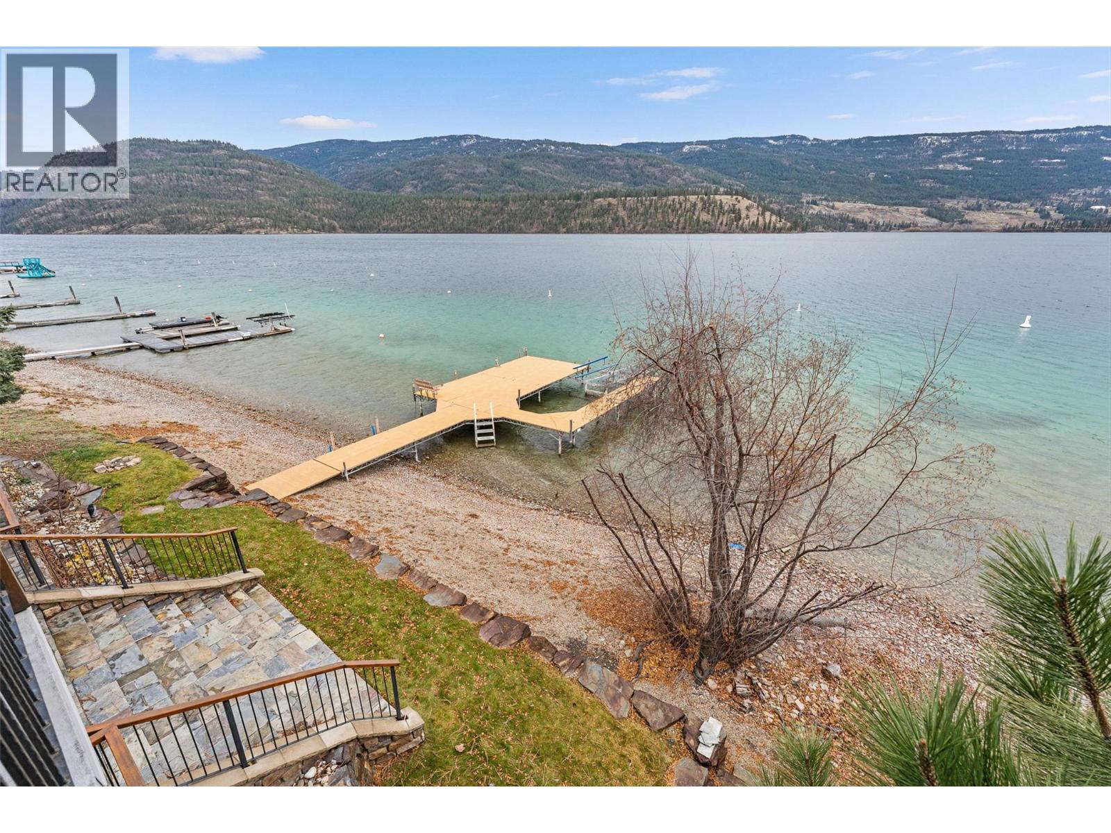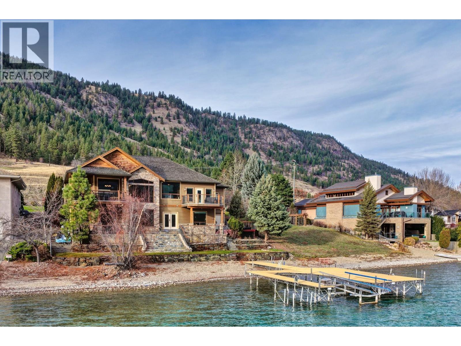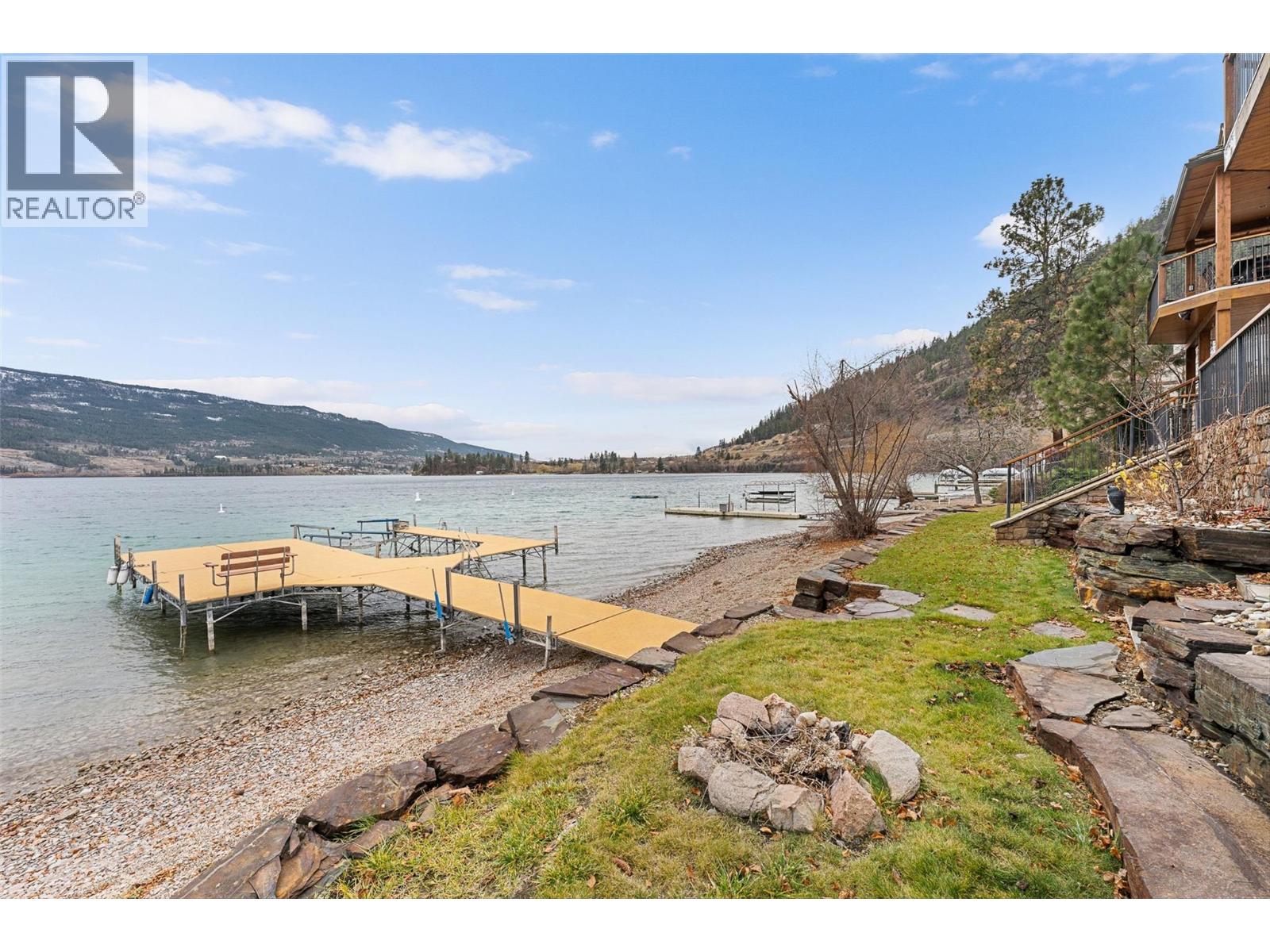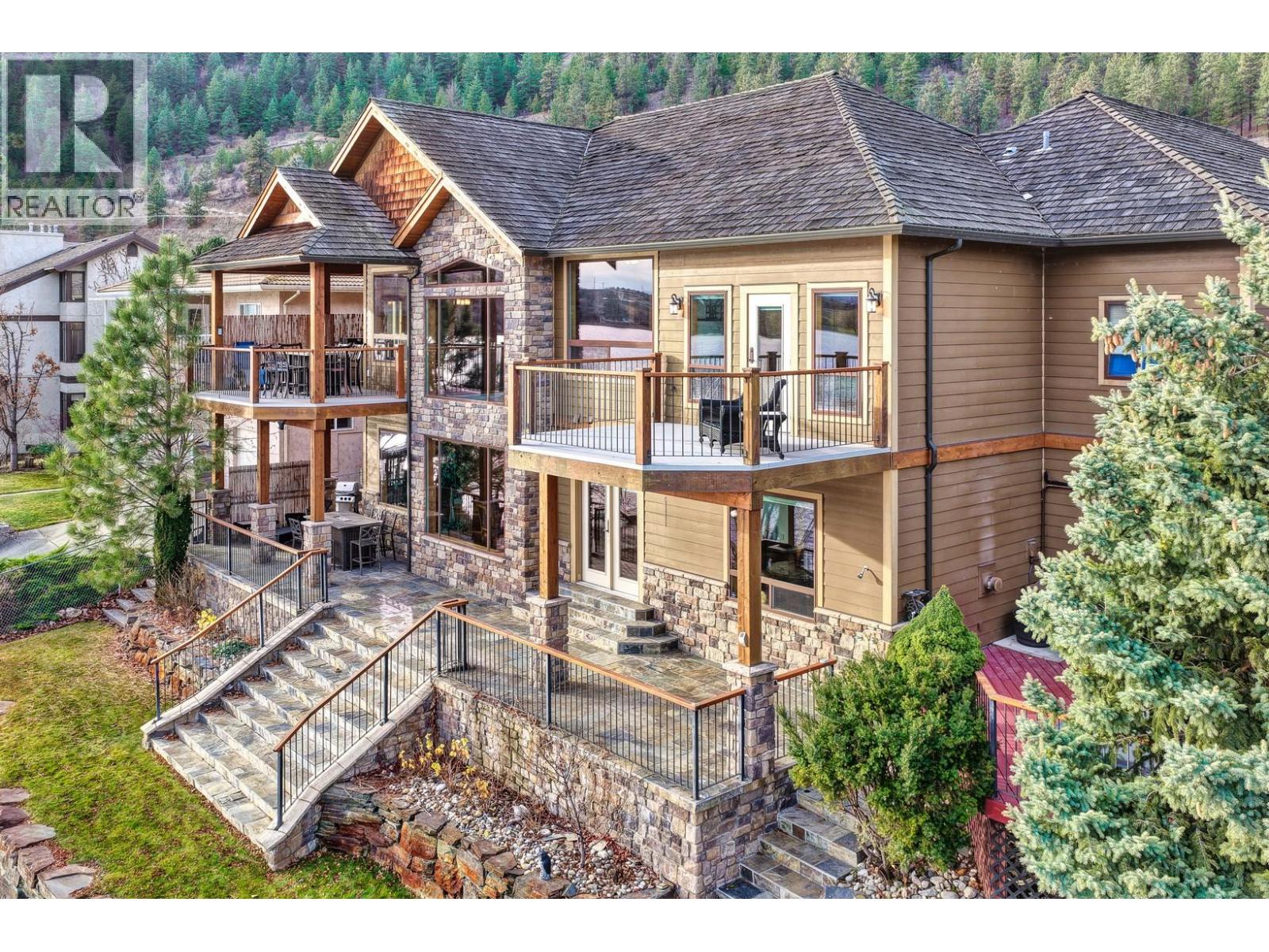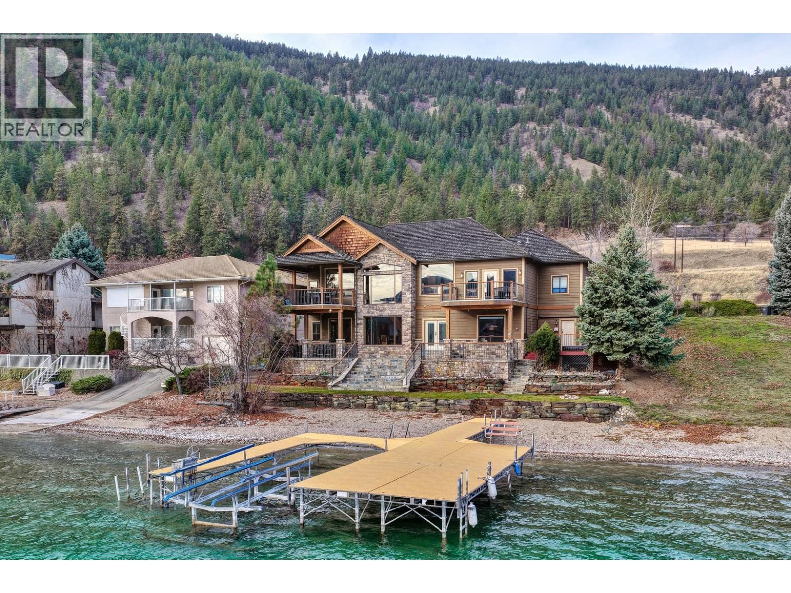 Discover the jewel of Kalamalka Lake. Located at the quiet end of a cul-de-sac in the exclusive, gated Jade Bay community, this property offers unmatched privacy with no neighbors across the street and a natural berm ensuring peace and quiet. This Tommie Gold Award-winning rancher walkout (2008) is a masterpiece of timeless design. A stunning lake view greets you the moment you enter, framed by the grand open concept, warm wood tones, and exposed ceiling beams that draw the eye to the floor-to-ceiling windows in the back. Watch the ""Lake of Many Colors"" shift from emerald to turquoise from your main-floor primary suite—complete with a sunrise-facing balcony—or from the expansive living area. Designed for lifestyle and entertaining, the home boasts a triple garage with a tandem bay and car lift, plus a fully equipped lower level with a second kitchen and three guest bedrooms. Step out to the lower deck to relax in the hot tub, or take the short 19 steps down to your large private dock with boat and Sea-Doo lifts. Just 15 minutes from the airport, this is the perfect year-round sanctuary. (id:21321)