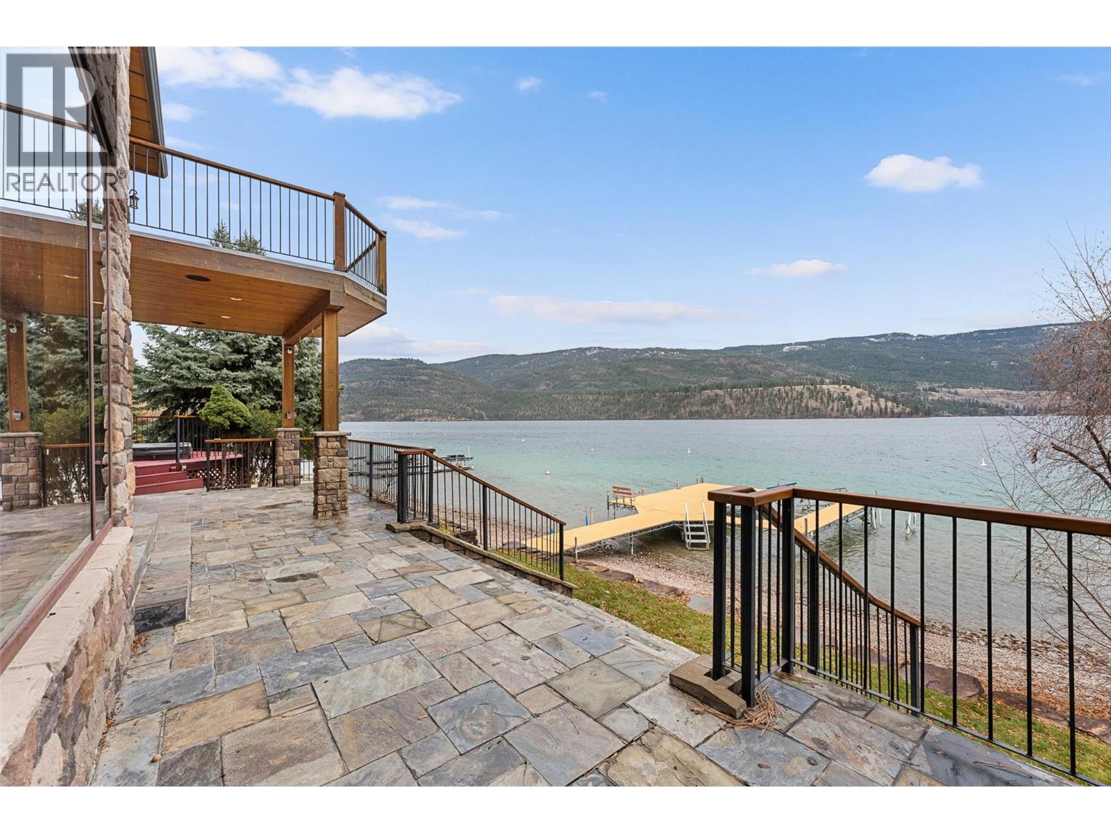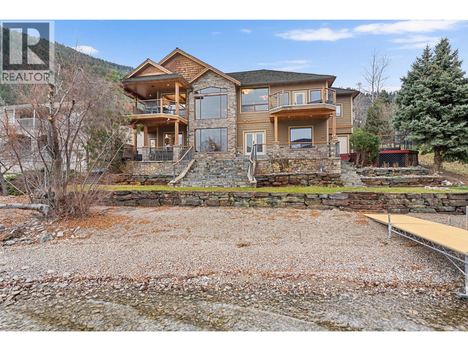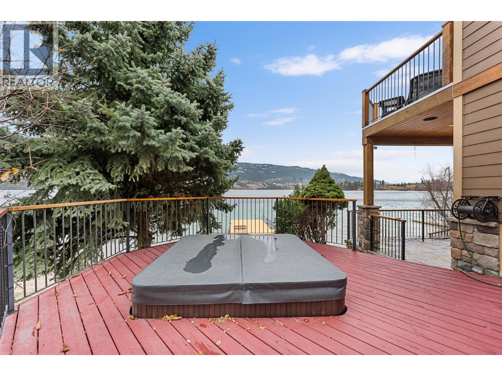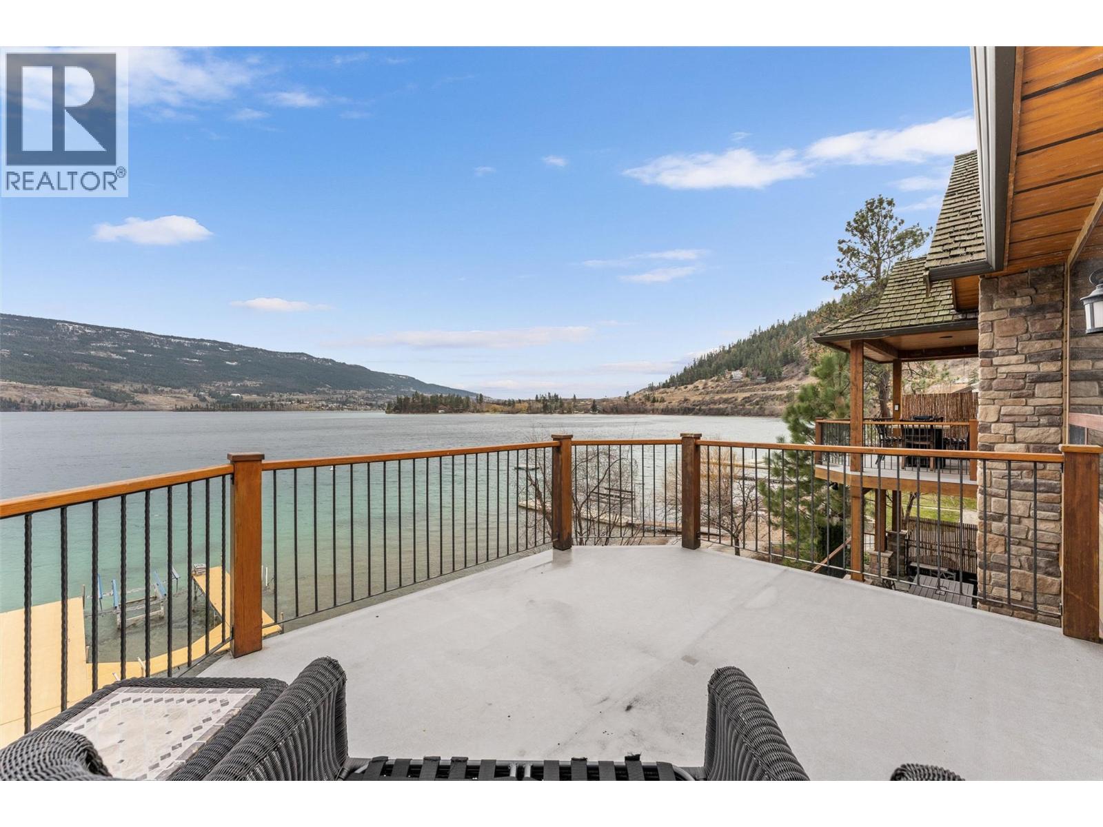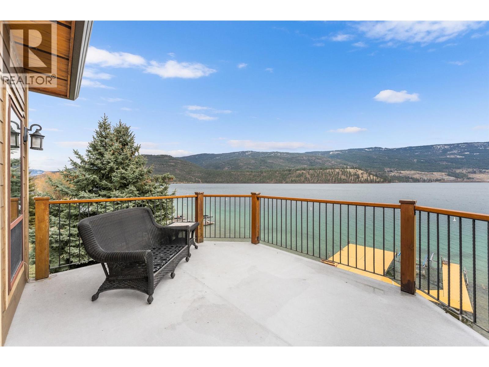 Discover the jewel of Kalamalka Lake. Located at the quiet end of a cul-de-sac in the exclusive, gated Jade Bay community, this property offers unmatched privacy with no neighbors across the street and a natural berm ensuring peace and quiet. This Tommie Gold Award-winning rancher walkout (2008) is a masterpiece of timeless design. A stunning lake view greets you the moment you enter, framed by the grand open concept, warm wood tones, and exposed ceiling beams that draw the eye to the floor-to-ceiling windows in the back. Watch the ""Lake of Many Colors"" shift from emerald to turquoise from your main-floor primary suite—complete with a sunrise-facing balcony—or from the expansive living area. Designed for lifestyle and entertaining, the home boasts a triple garage with a tandem bay and car lift, plus a fully equipped lower level with a second kitchen and three guest bedrooms. Step out to the lower deck to relax in the hot tub, or take the short 19 steps down to your large private dock with boat and Sea-Doo lifts. Just 15 minutes from the airport, this is the perfect year-round sanctuary. (id:21321)