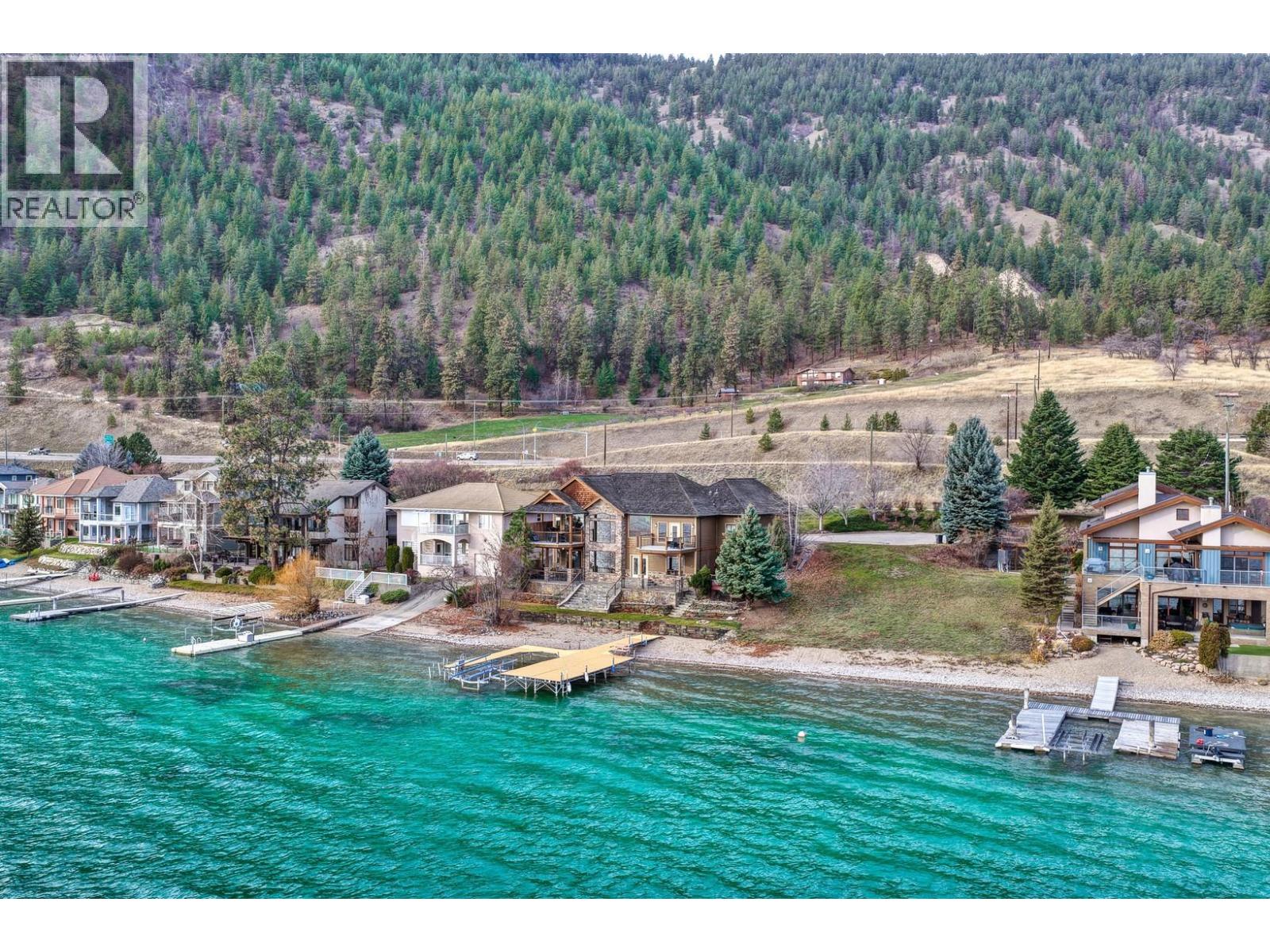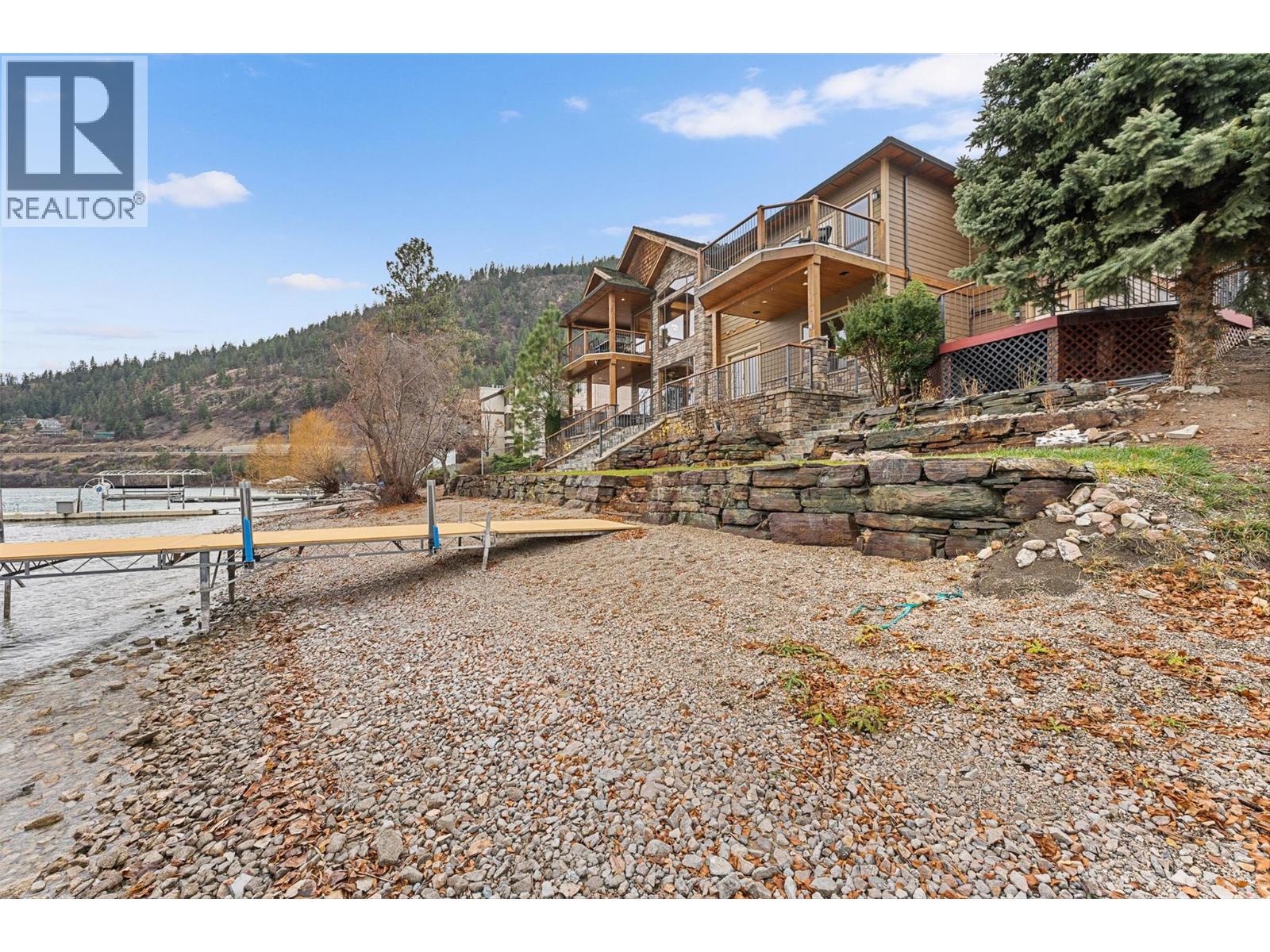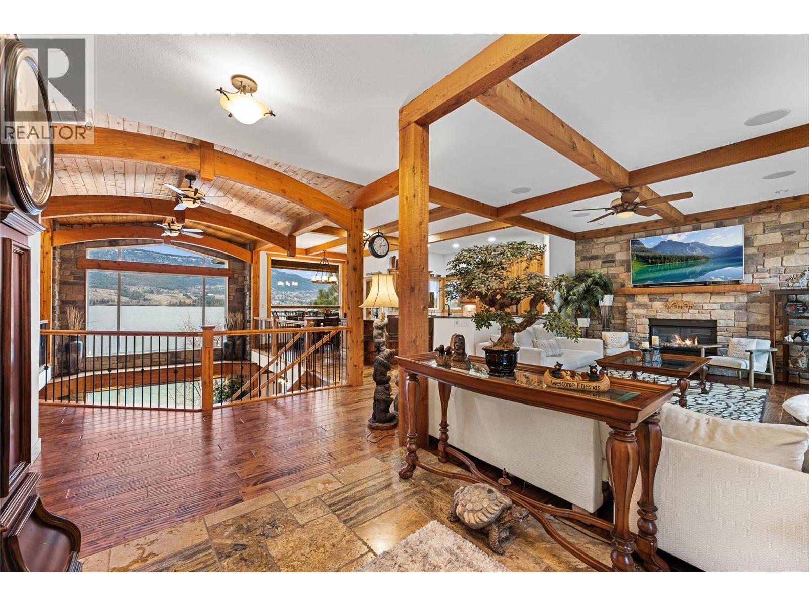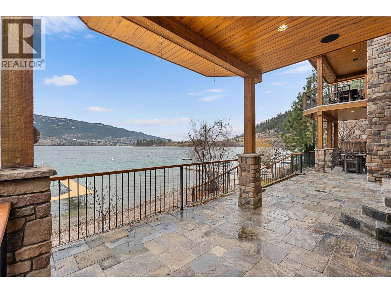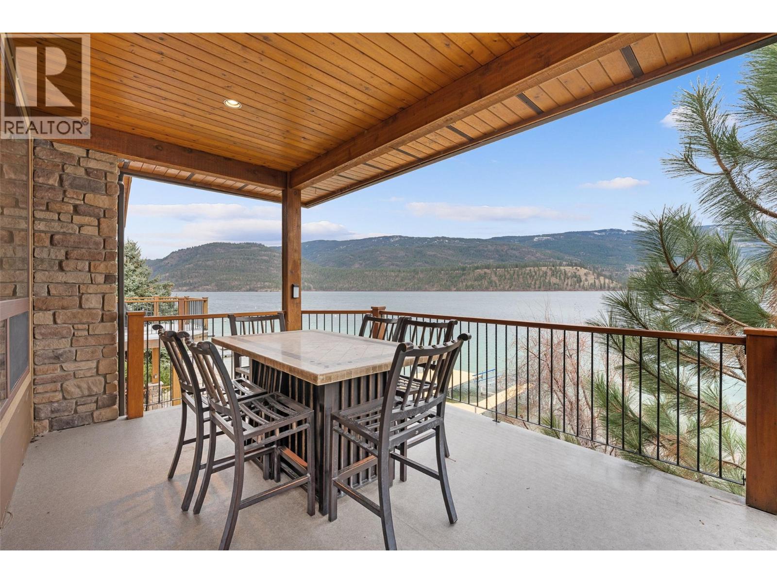 Discover the jewel of Kalamalka Lake. Located at the quiet end of a cul-de-sac in the exclusive, gated Jade Bay community, this property offers unmatched privacy with no neighbors across the street and a natural berm ensuring peace and quiet. This Tommie Gold Award-winning rancher walkout (2008) is a masterpiece of timeless design. A stunning lake view greets you the moment you enter, framed by the grand open concept, warm wood tones, and exposed ceiling beams that draw the eye to the floor-to-ceiling windows in the back. Watch the ""Lake of Many Colors"" shift from emerald to turquoise from your main-floor primary suite—complete with a sunrise-facing balcony—or from the expansive living area. Designed for lifestyle and entertaining, the home boasts a triple garage with a tandem bay and car lift, plus a fully equipped lower level with a second kitchen and three guest bedrooms. Step out to the lower deck to relax in the hot tub, or take the short 19 steps down to your large private dock with boat and Sea-Doo lifts. Just 15 minutes from the airport, this is the perfect year-round sanctuary. (id:21321)