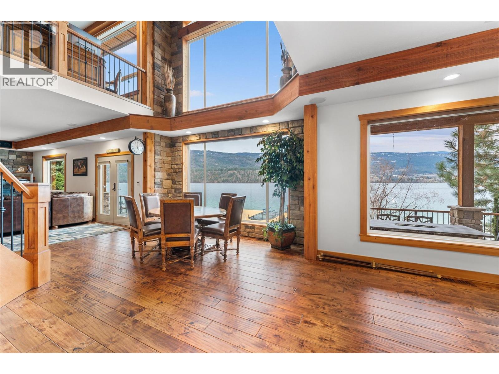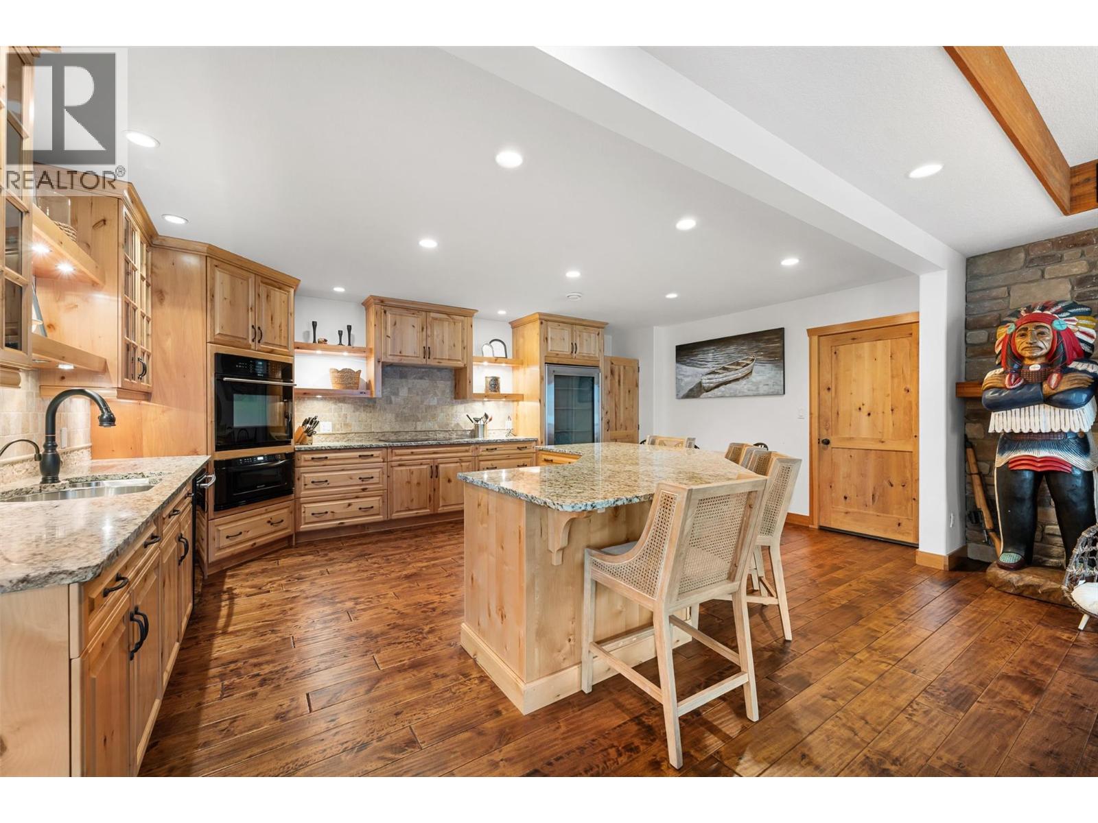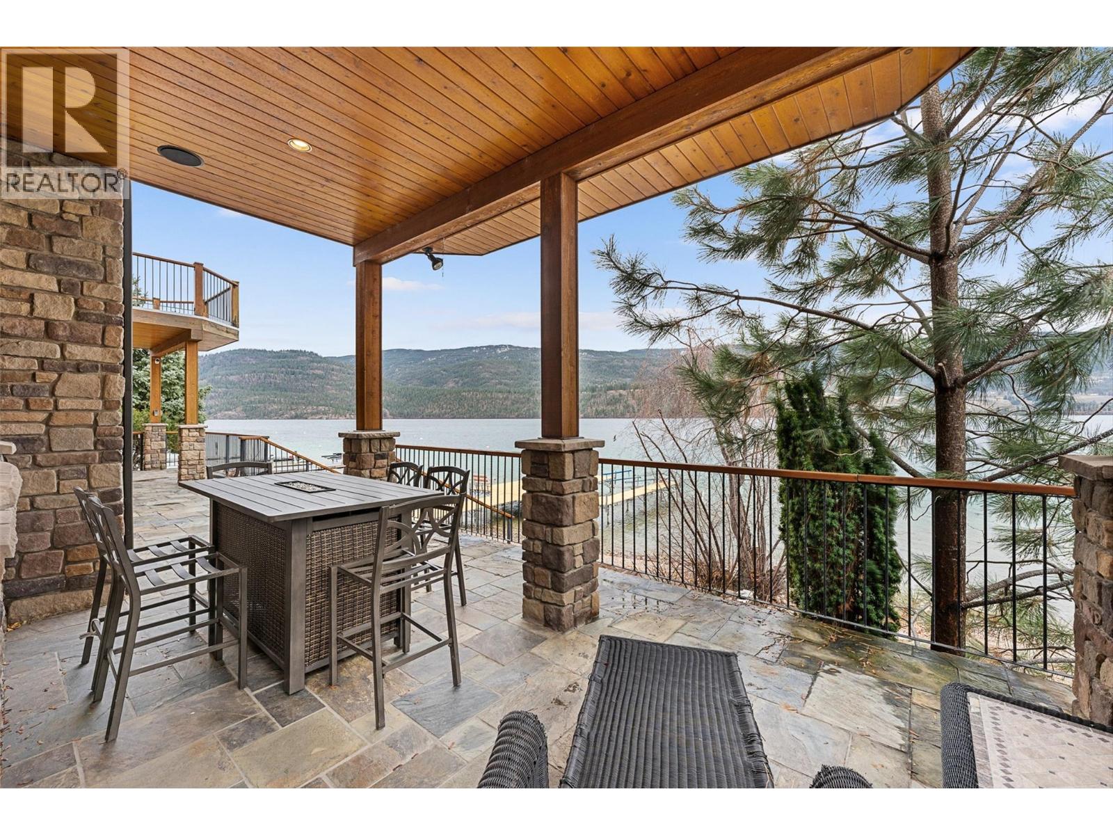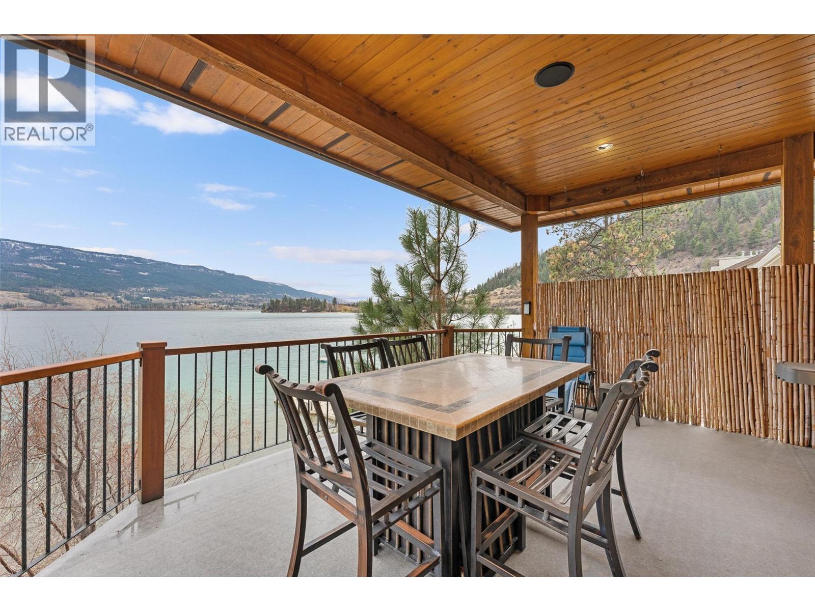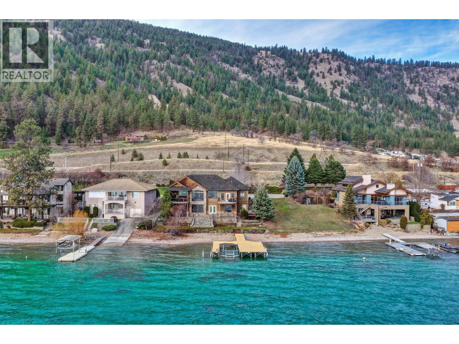 Discover the jewel of Kalamalka Lake. Located at the quiet end of a cul-de-sac in the exclusive, gated Jade Bay community, this property offers unmatched privacy with no neighbors across the street and a natural berm ensuring peace and quiet. This Tommie Gold Award-winning rancher walkout (2008) is a masterpiece of timeless design. A stunning lake view greets you the moment you enter, framed by the grand open concept, warm wood tones, and exposed ceiling beams that draw the eye to the floor-to-ceiling windows in the back. Watch the ""Lake of Many Colors"" shift from emerald to turquoise from your main-floor primary suite—complete with a sunrise-facing balcony—or from the expansive living area. Designed for lifestyle and entertaining, the home boasts a triple garage with a tandem bay and car lift, plus a fully equipped lower level with a second kitchen and three guest bedrooms. Step out to the lower deck to relax in the hot tub, or take the short 19 steps down to your large private dock with boat and Sea-Doo lifts. Just 15 minutes from the airport, this is the perfect year-round sanctuary. (id:21321)