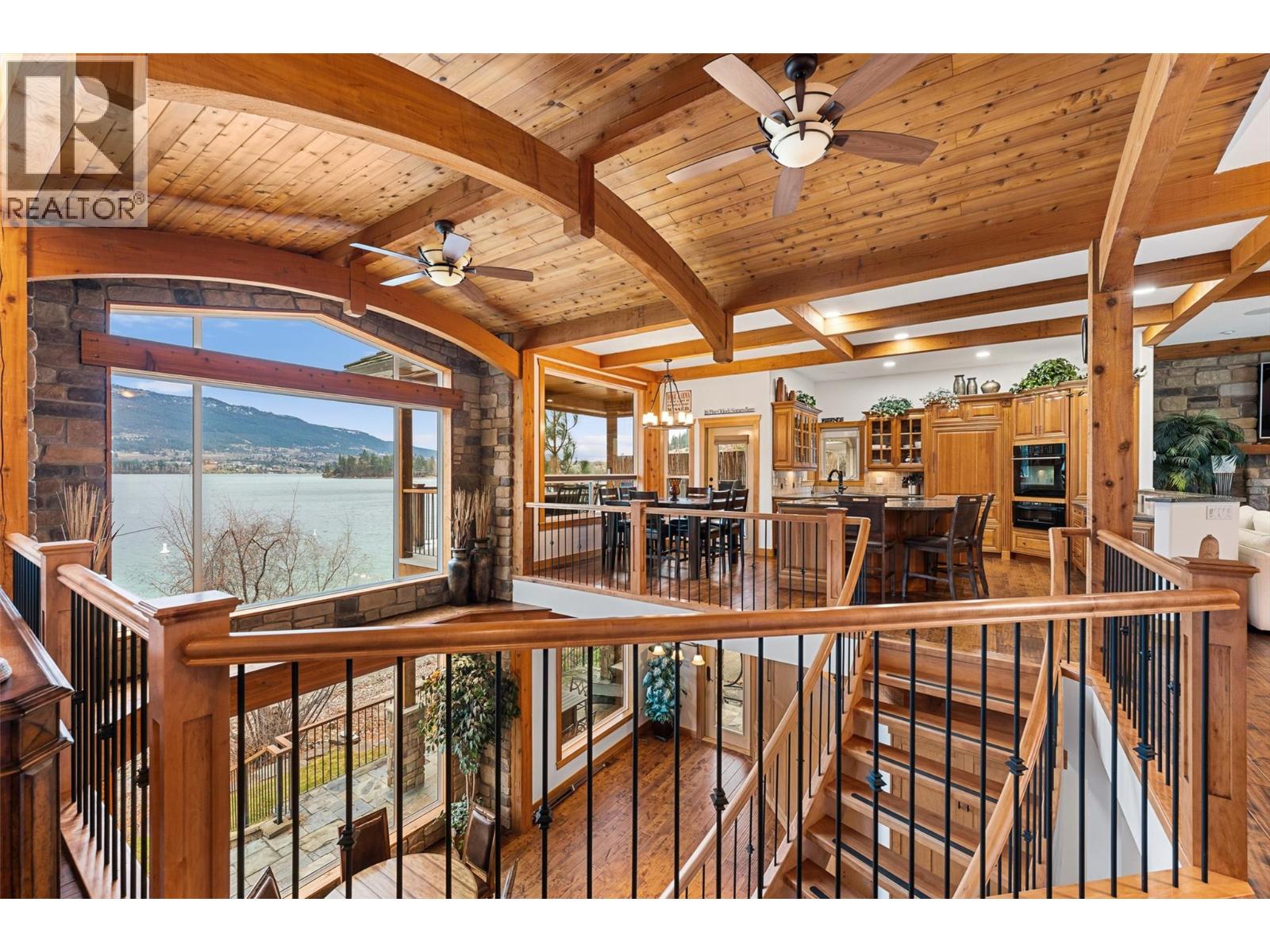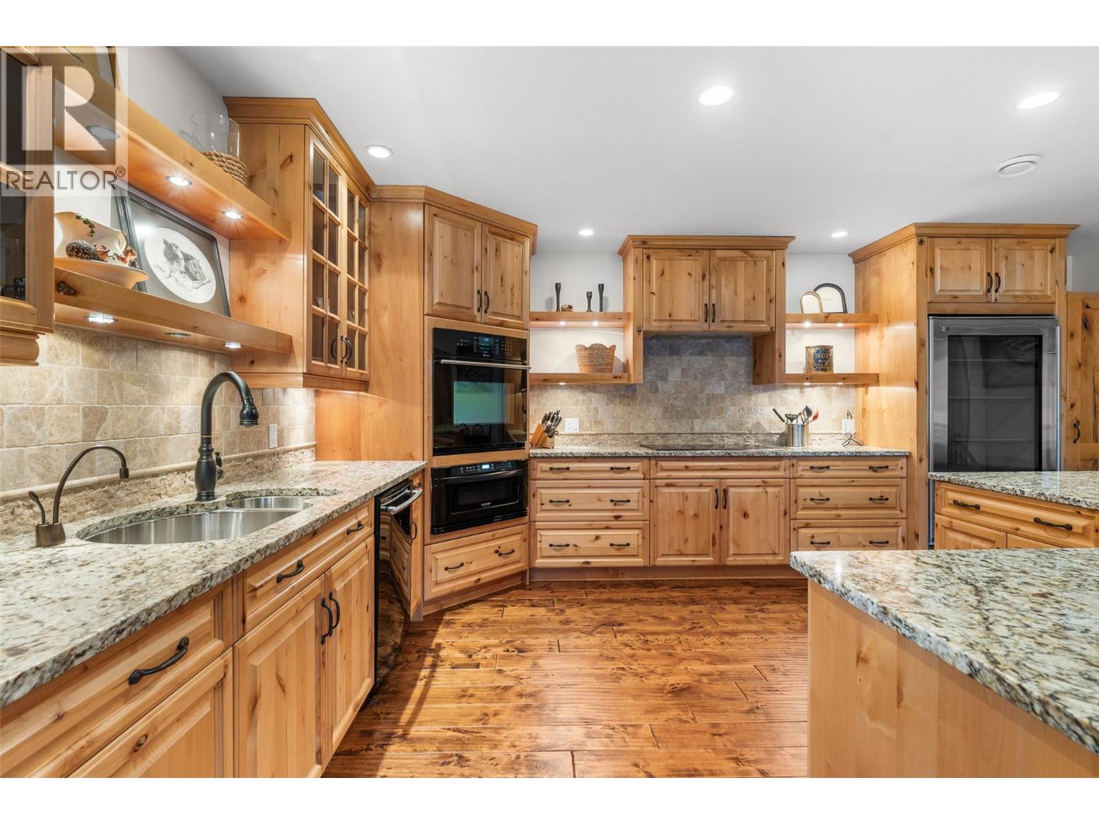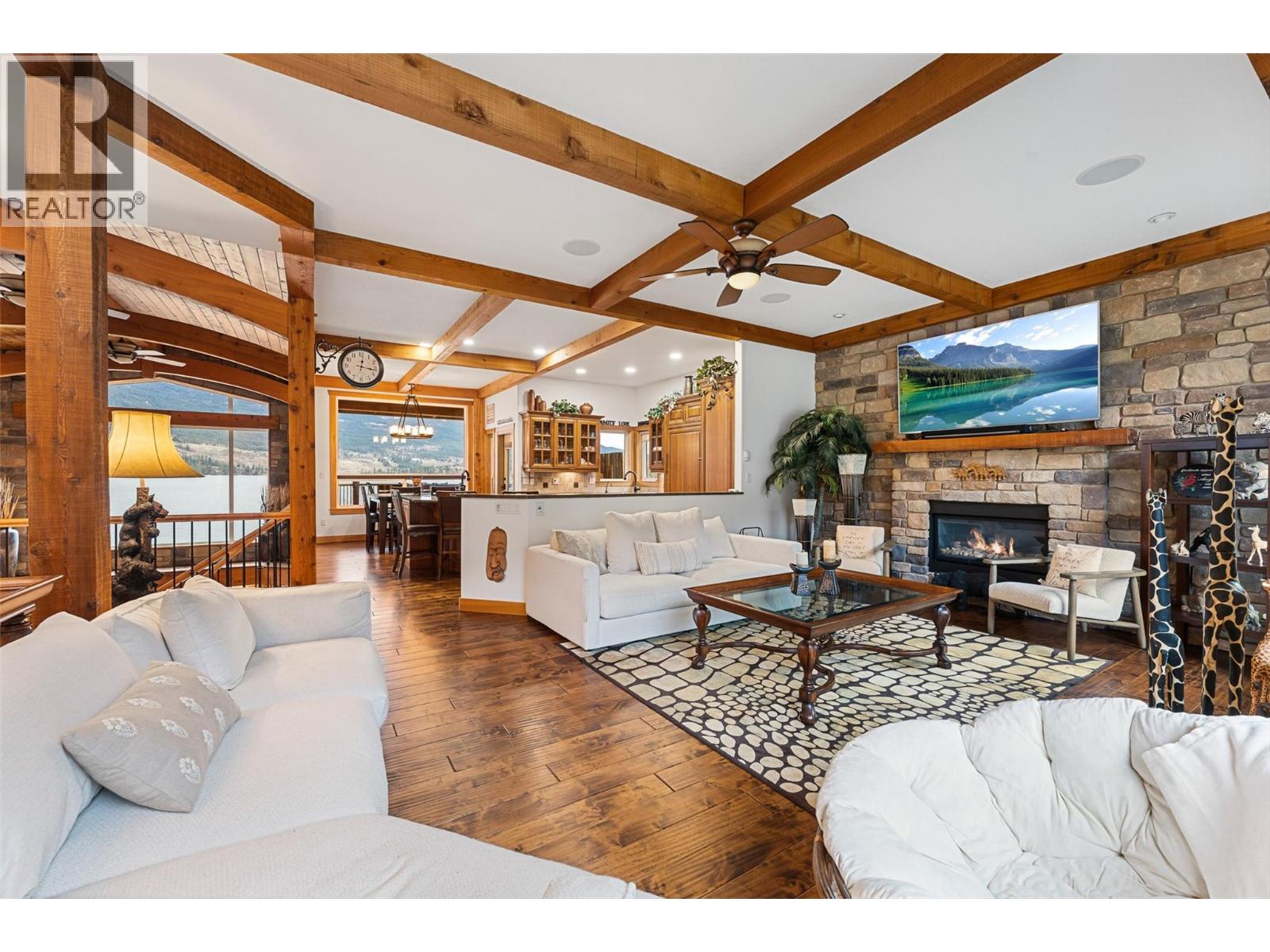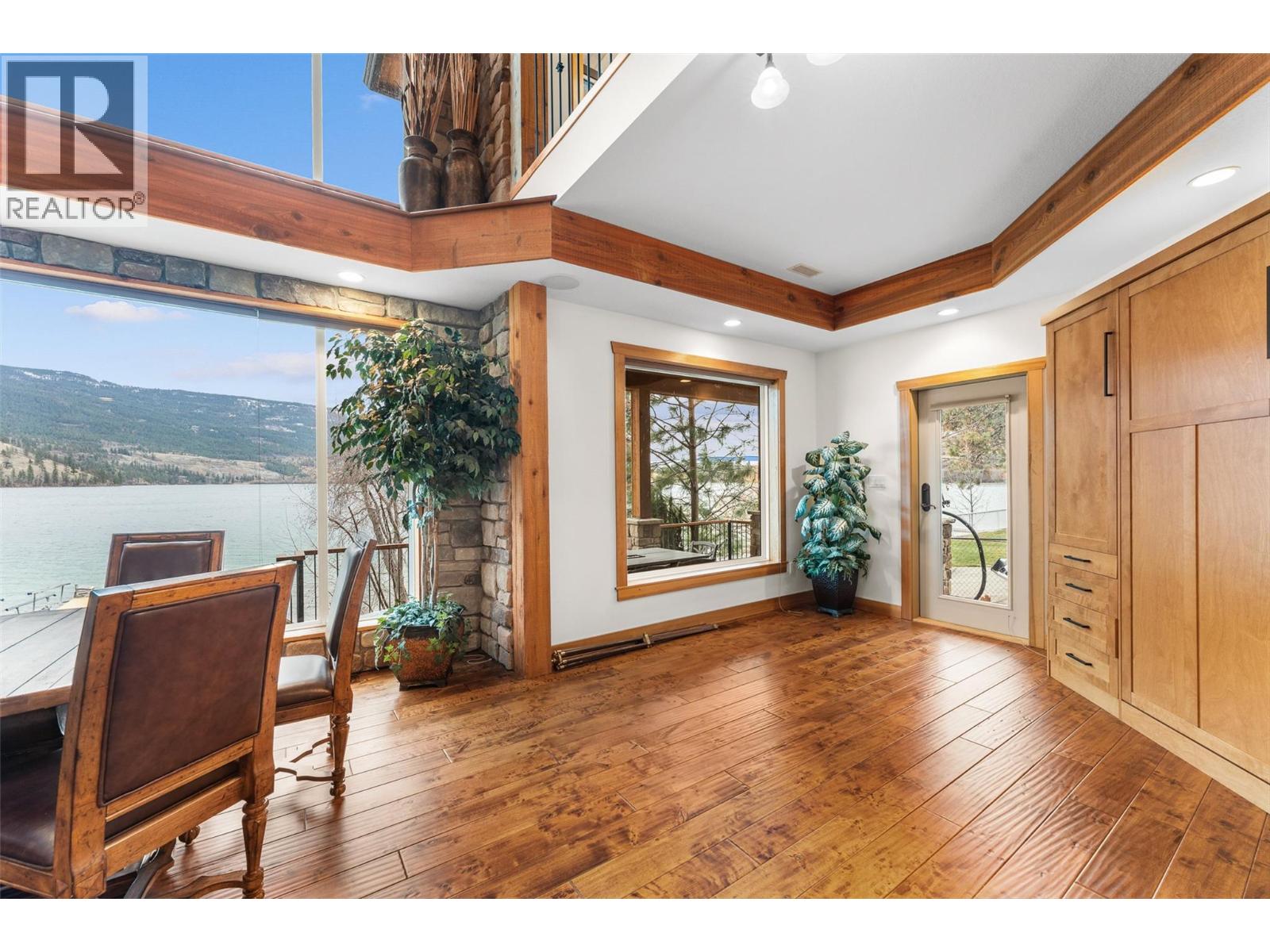 Discover the jewel of Kalamalka Lake. Located at the quiet end of a cul-de-sac in the exclusive, gated Jade Bay community, this property offers unmatched privacy with no neighbors across the street and a natural berm ensuring peace and quiet. This Tommie Gold Award-winning rancher walkout (2008) is a masterpiece of timeless design. A stunning lake view greets you the moment you enter, framed by the grand open concept, warm wood tones, and exposed ceiling beams that draw the eye to the floor-to-ceiling windows in the back. Watch the ""Lake of Many Colors"" shift from emerald to turquoise from your main-floor primary suite—complete with a sunrise-facing balcony—or from the expansive living area. Designed for lifestyle and entertaining, the home boasts a triple garage with a tandem bay and car lift, plus a fully equipped lower level with a second kitchen and three guest bedrooms. Step out to the lower deck to relax in the hot tub, or take the short 19 steps down to your large private dock with boat and Sea-Doo lifts. Just 15 minutes from the airport, this is the perfect year-round sanctuary. (id:21321)