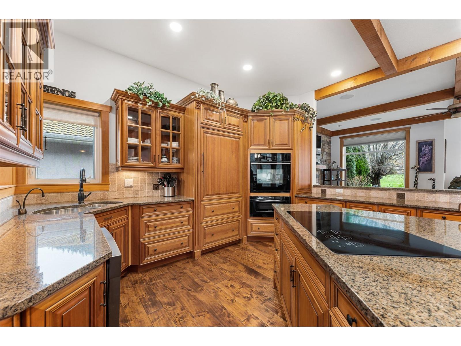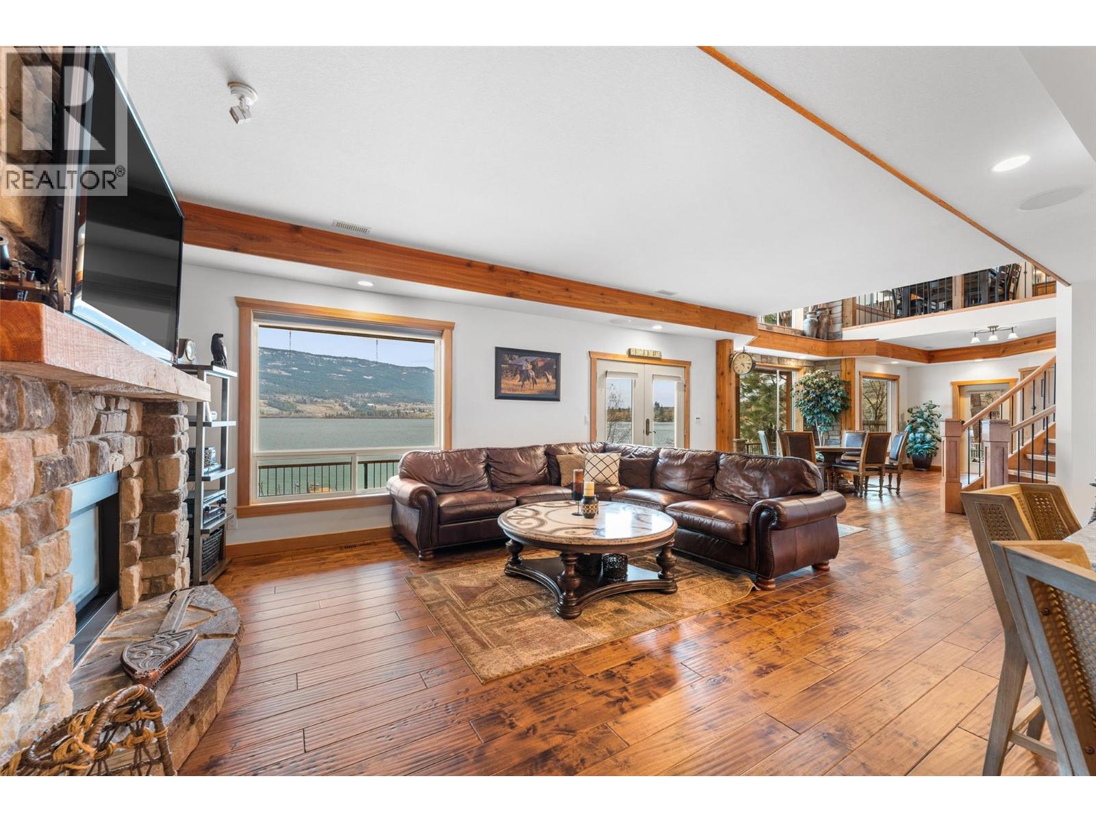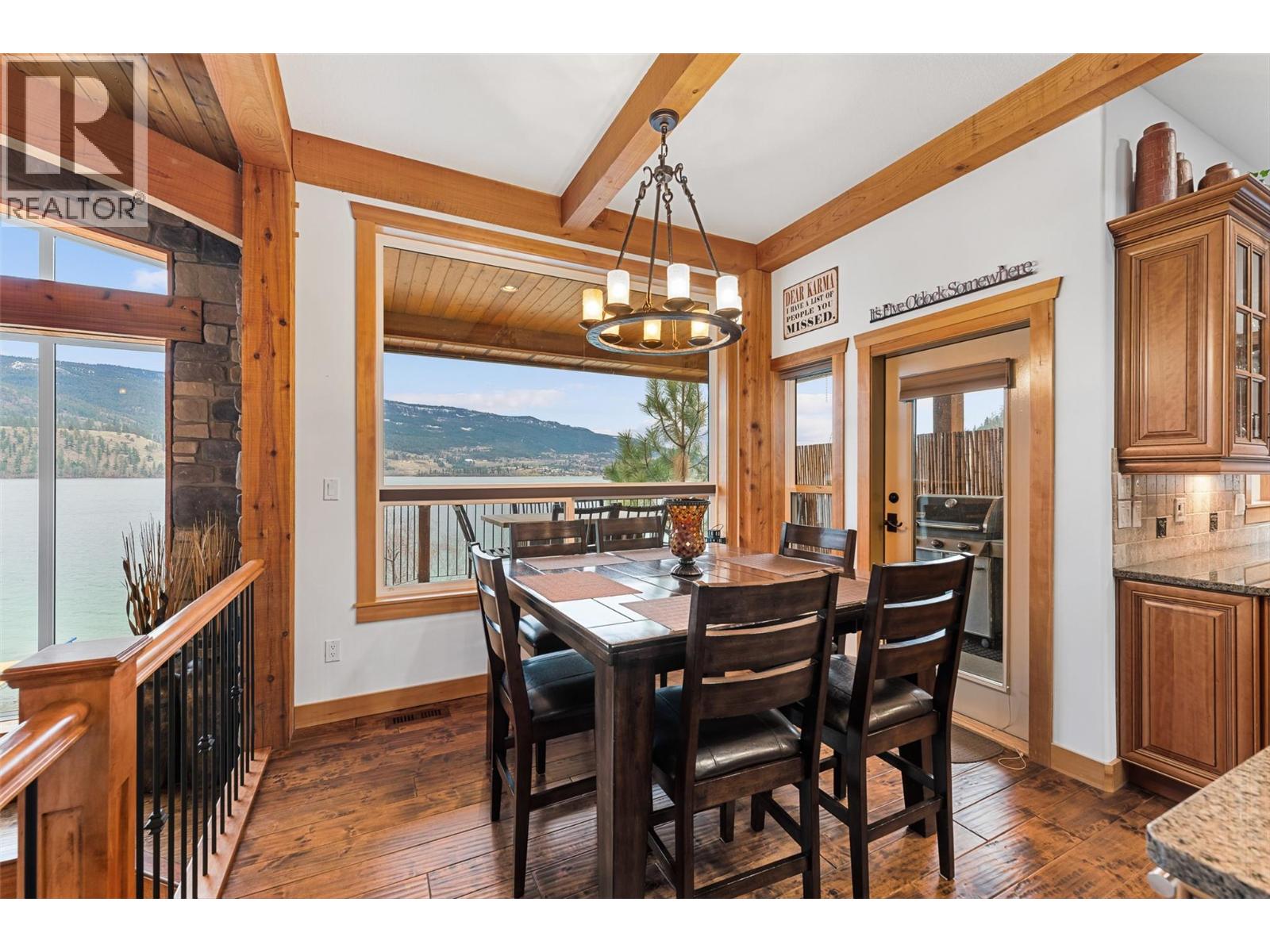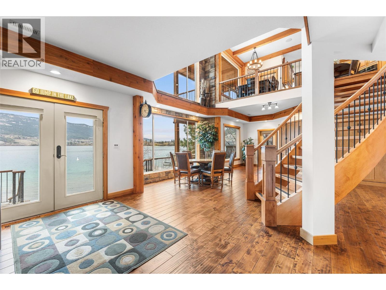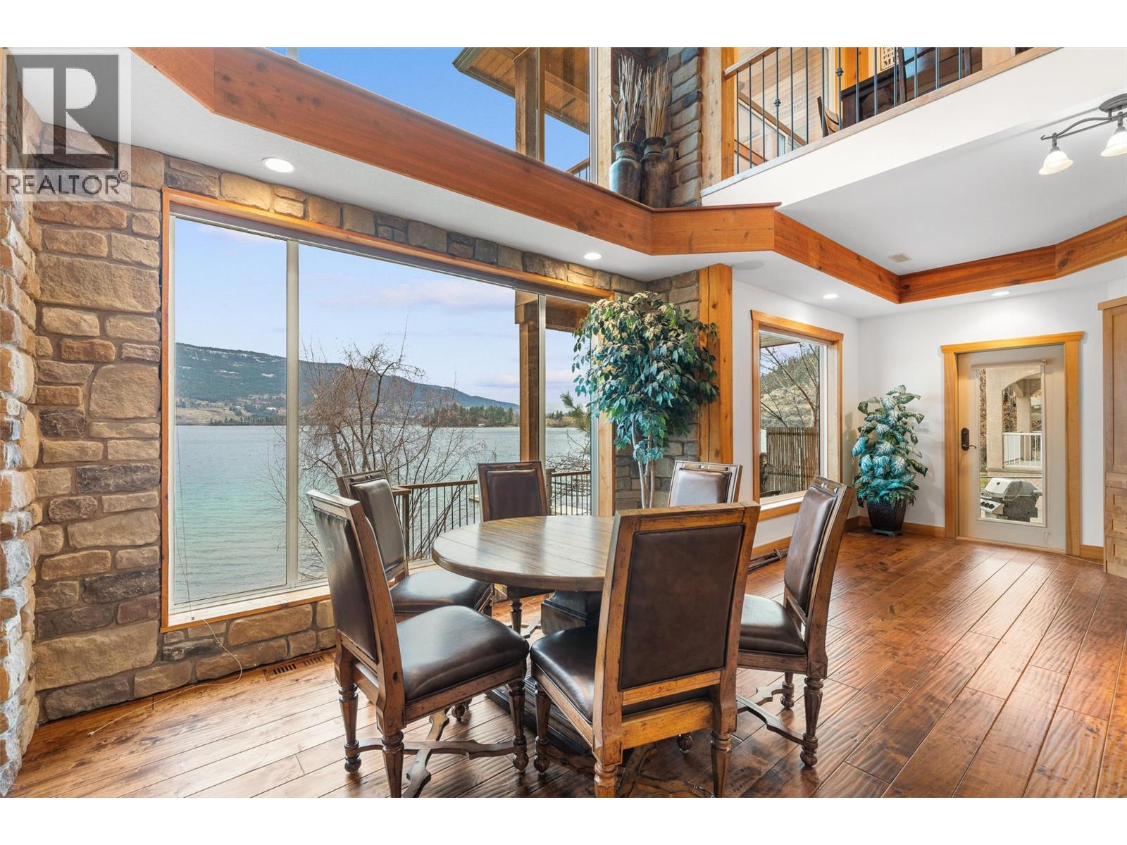 Discover the jewel of Kalamalka Lake. Located at the quiet end of a cul-de-sac in the exclusive, gated Jade Bay community, this property offers unmatched privacy with no neighbors across the street and a natural berm ensuring peace and quiet. This Tommie Gold Award-winning rancher walkout (2008) is a masterpiece of timeless design. A stunning lake view greets you the moment you enter, framed by the grand open concept, warm wood tones, and exposed ceiling beams that draw the eye to the floor-to-ceiling windows in the back. Watch the ""Lake of Many Colors"" shift from emerald to turquoise from your main-floor primary suite—complete with a sunrise-facing balcony—or from the expansive living area. Designed for lifestyle and entertaining, the home boasts a triple garage with a tandem bay and car lift, plus a fully equipped lower level with a second kitchen and three guest bedrooms. Step out to the lower deck to relax in the hot tub, or take the short 19 steps down to your large private dock with boat and Sea-Doo lifts. Just 15 minutes from the airport, this is the perfect year-round sanctuary. (id:21321)