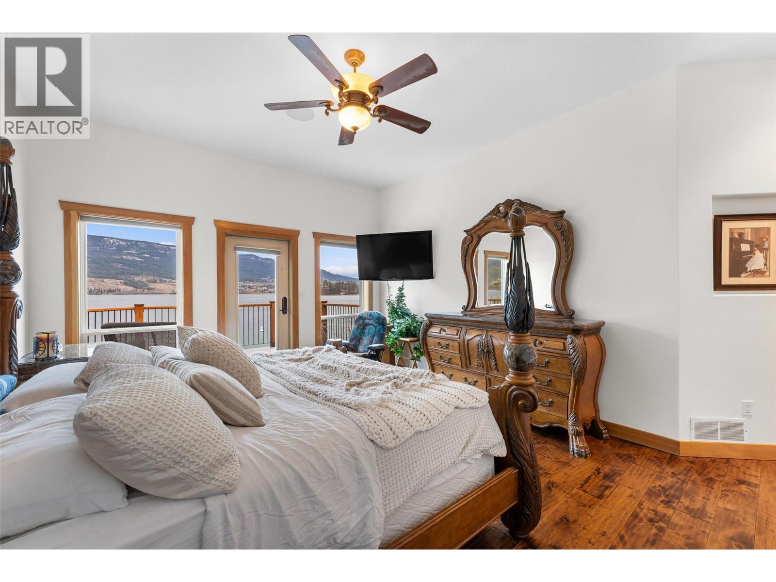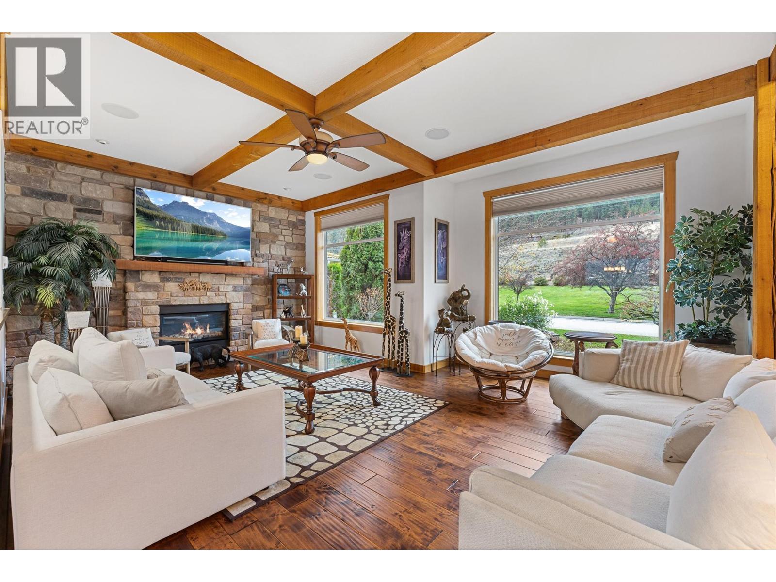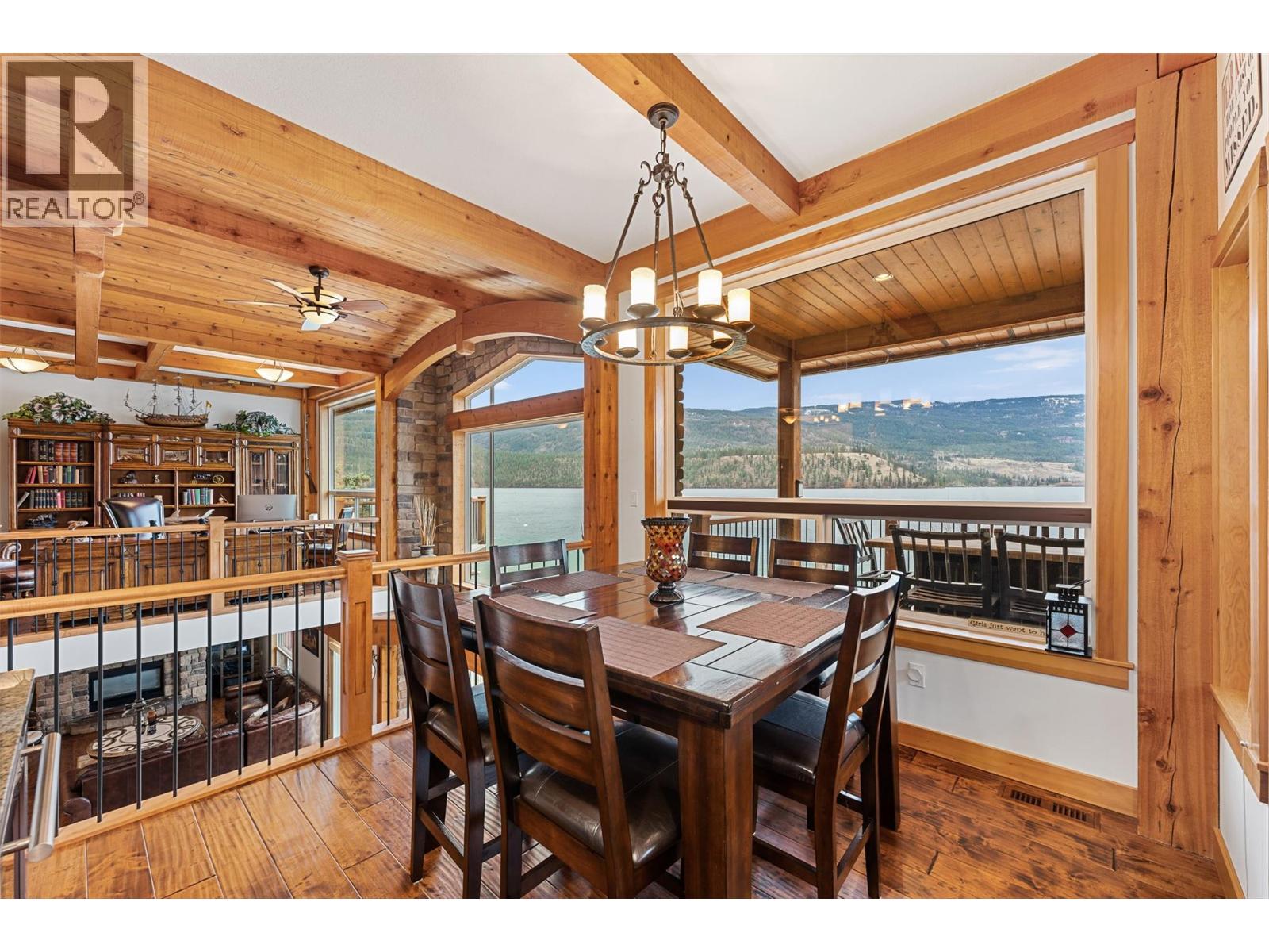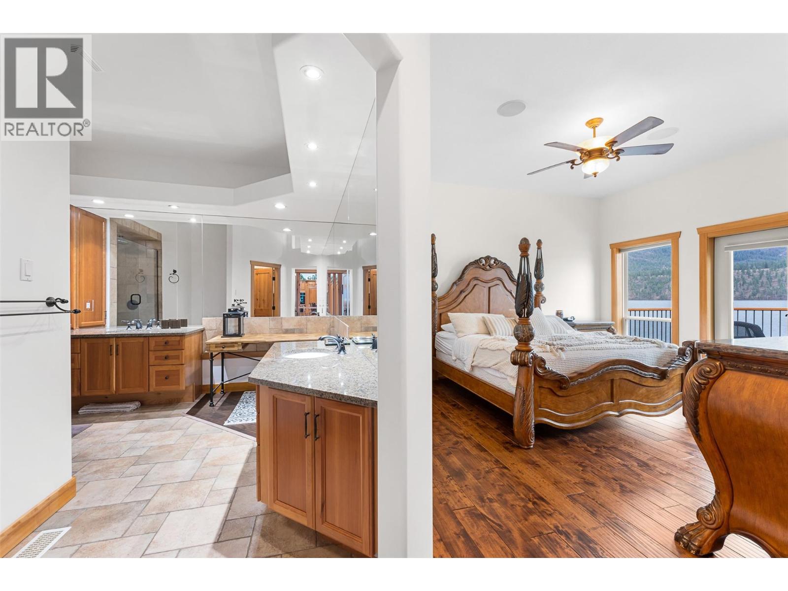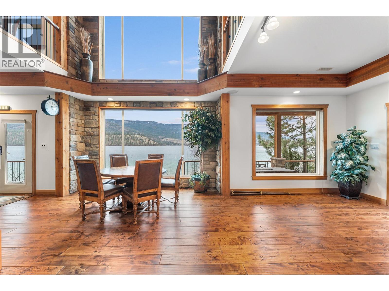 Discover the jewel of Kalamalka Lake. Located at the quiet end of a cul-de-sac in the exclusive, gated Jade Bay community, this property offers unmatched privacy with no neighbors across the street and a natural berm ensuring peace and quiet. This Tommie Gold Award-winning rancher walkout (2008) is a masterpiece of timeless design. A stunning lake view greets you the moment you enter, framed by the grand open concept, warm wood tones, and exposed ceiling beams that draw the eye to the floor-to-ceiling windows in the back. Watch the ""Lake of Many Colors"" shift from emerald to turquoise from your main-floor primary suite—complete with a sunrise-facing balcony—or from the expansive living area. Designed for lifestyle and entertaining, the home boasts a triple garage with a tandem bay and car lift, plus a fully equipped lower level with a second kitchen and three guest bedrooms. Step out to the lower deck to relax in the hot tub, or take the short 19 steps down to your large private dock with boat and Sea-Doo lifts. Just 15 minutes from the airport, this is the perfect year-round sanctuary. (id:21321)