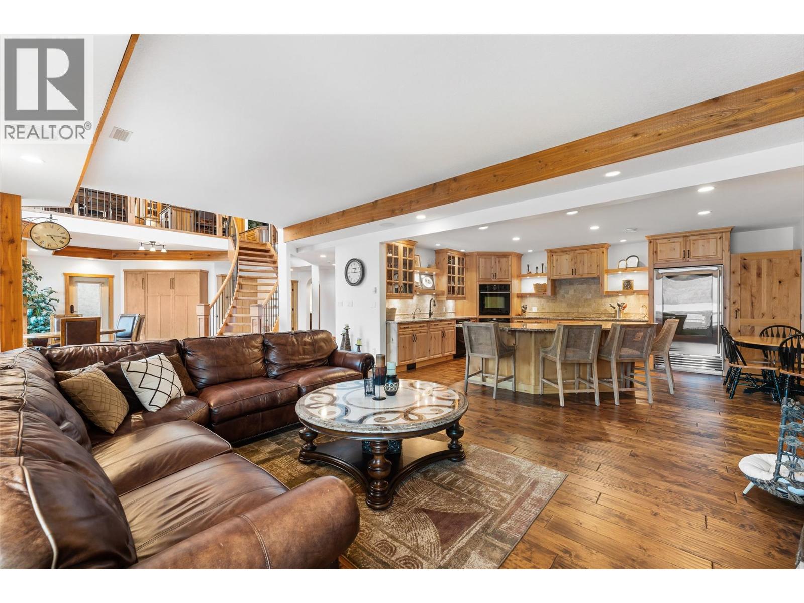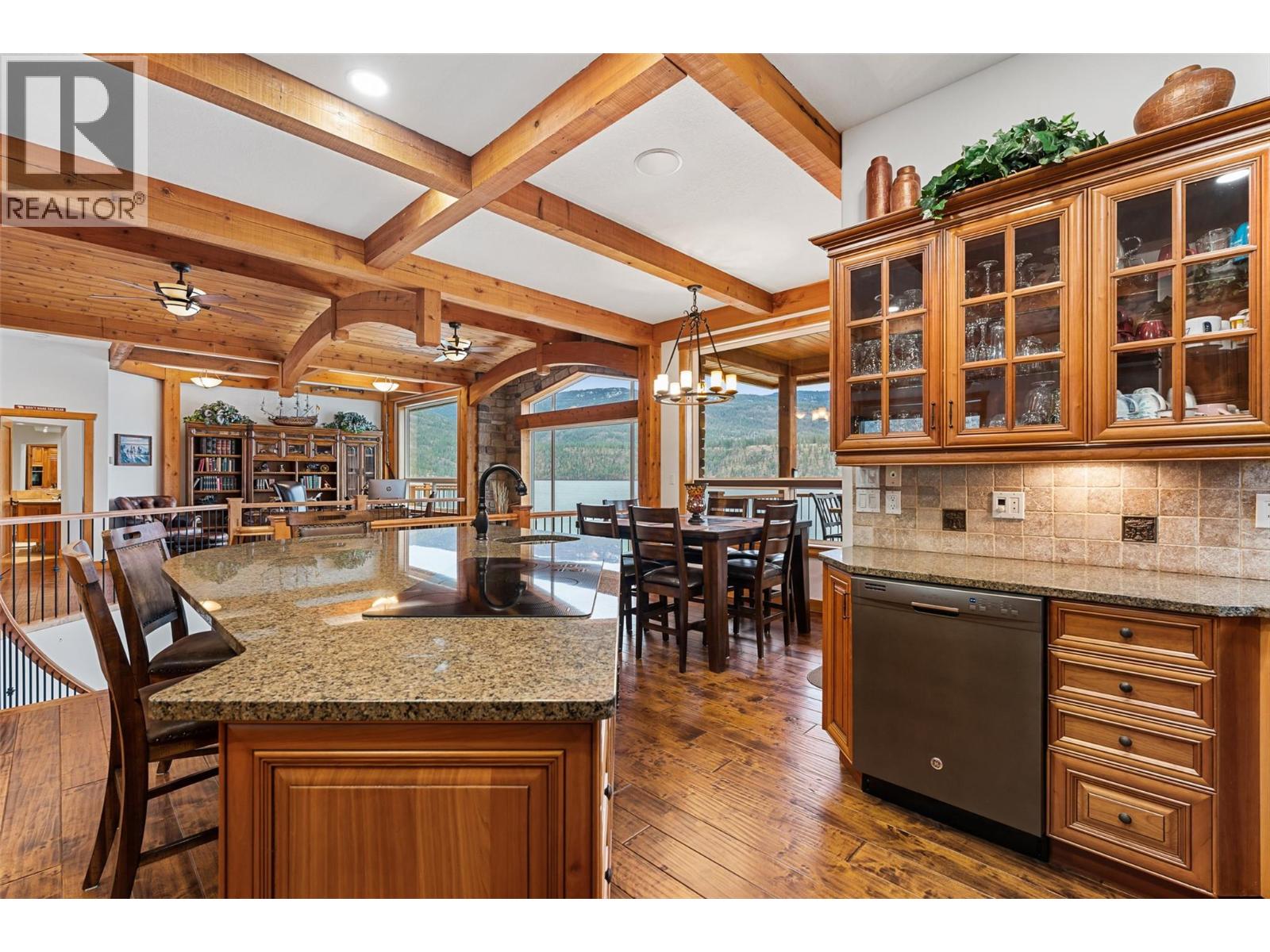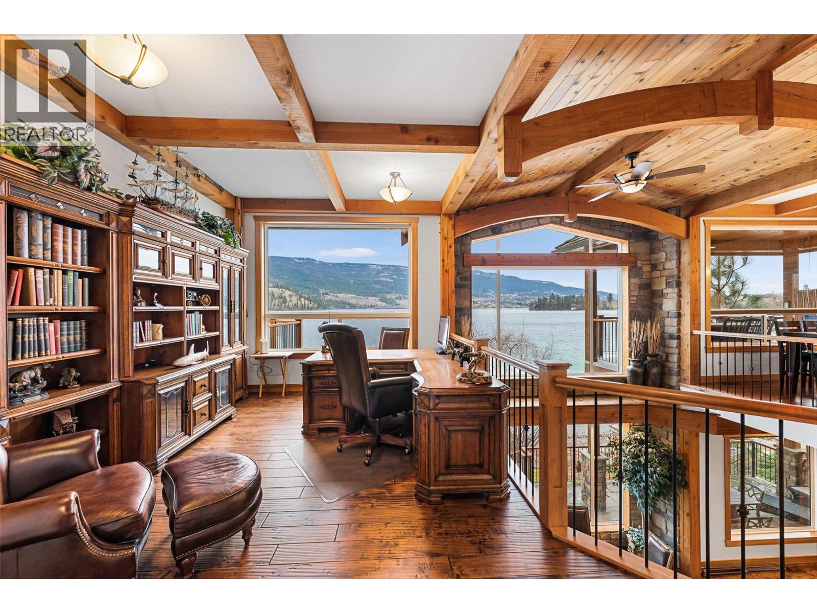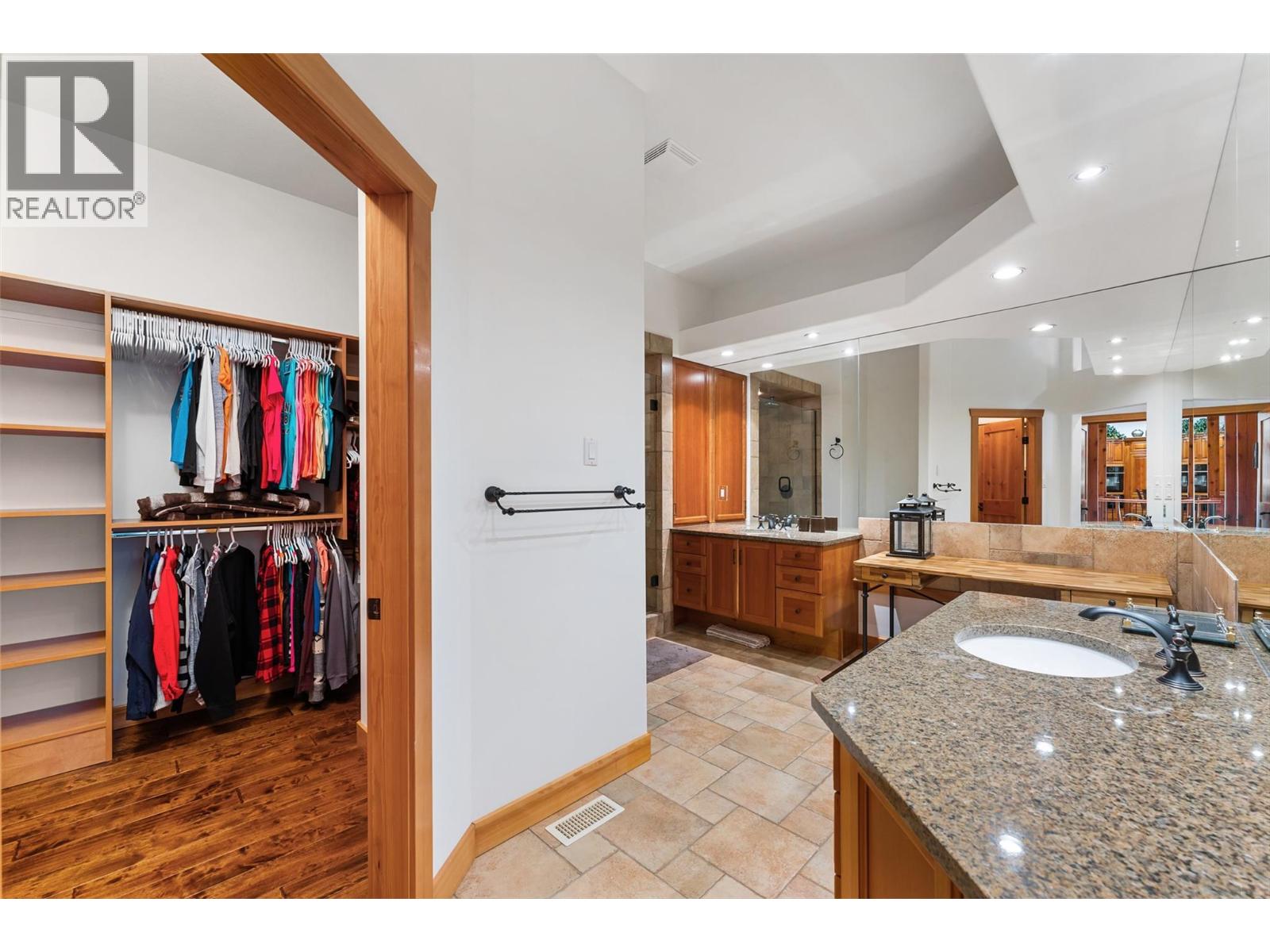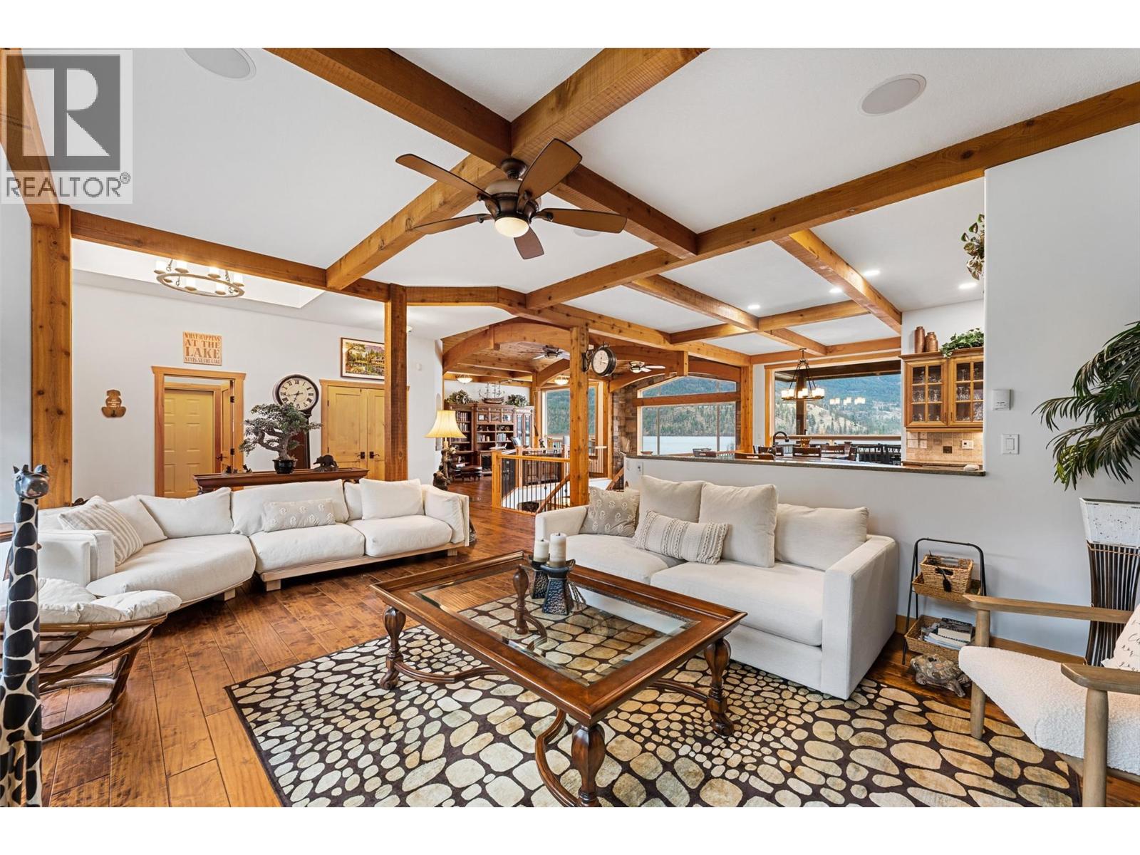 Discover the jewel of Kalamalka Lake. Located at the quiet end of a cul-de-sac in the exclusive, gated Jade Bay community, this property offers unmatched privacy with no neighbors across the street and a natural berm ensuring peace and quiet. This Tommie Gold Award-winning rancher walkout (2008) is a masterpiece of timeless design. A stunning lake view greets you the moment you enter, framed by the grand open concept, warm wood tones, and exposed ceiling beams that draw the eye to the floor-to-ceiling windows in the back. Watch the ""Lake of Many Colors"" shift from emerald to turquoise from your main-floor primary suite—complete with a sunrise-facing balcony—or from the expansive living area. Designed for lifestyle and entertaining, the home boasts a triple garage with a tandem bay and car lift, plus a fully equipped lower level with a second kitchen and three guest bedrooms. Step out to the lower deck to relax in the hot tub, or take the short 19 steps down to your large private dock with boat and Sea-Doo lifts. Just 15 minutes from the airport, this is the perfect year-round sanctuary. (id:21321)