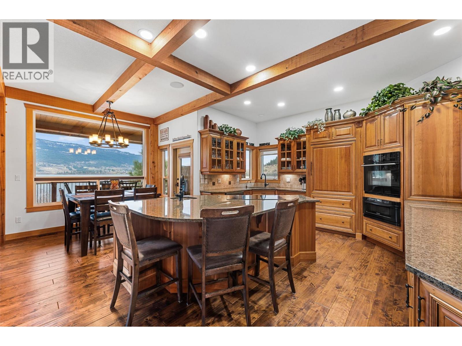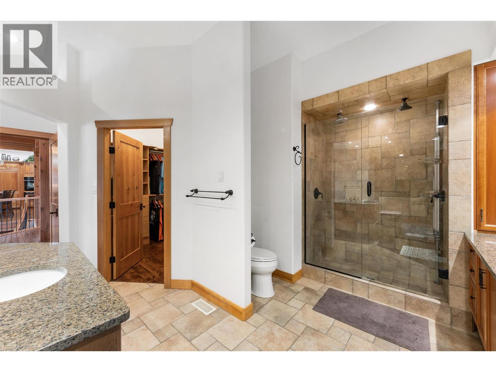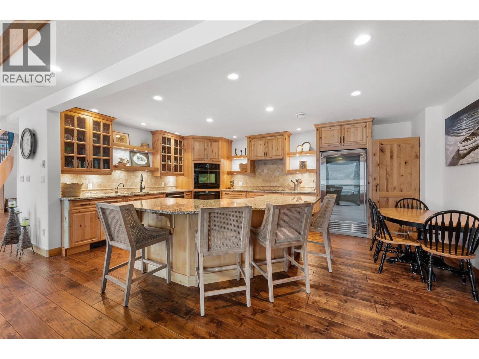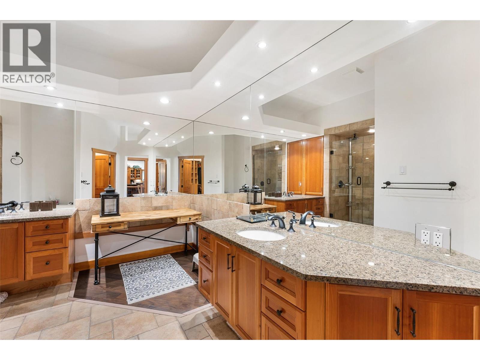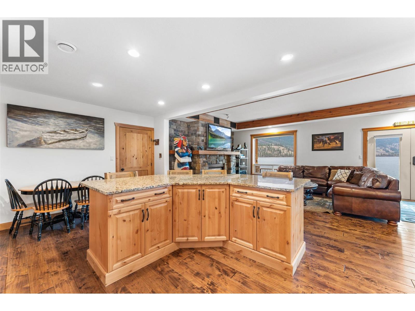 Discover the jewel of Kalamalka Lake. Located at the quiet end of a cul-de-sac in the exclusive, gated Jade Bay community, this property offers unmatched privacy with no neighbors across the street and a natural berm ensuring peace and quiet. This Tommie Gold Award-winning rancher walkout (2008) is a masterpiece of timeless design. A stunning lake view greets you the moment you enter, framed by the grand open concept, warm wood tones, and exposed ceiling beams that draw the eye to the floor-to-ceiling windows in the back. Watch the ""Lake of Many Colors"" shift from emerald to turquoise from your main-floor primary suite—complete with a sunrise-facing balcony—or from the expansive living area. Designed for lifestyle and entertaining, the home boasts a triple garage with a tandem bay and car lift, plus a fully equipped lower level with a second kitchen and three guest bedrooms. Step out to the lower deck to relax in the hot tub, or take the short 19 steps down to your large private dock with boat and Sea-Doo lifts. Just 15 minutes from the airport, this is the perfect year-round sanctuary. (id:21321)