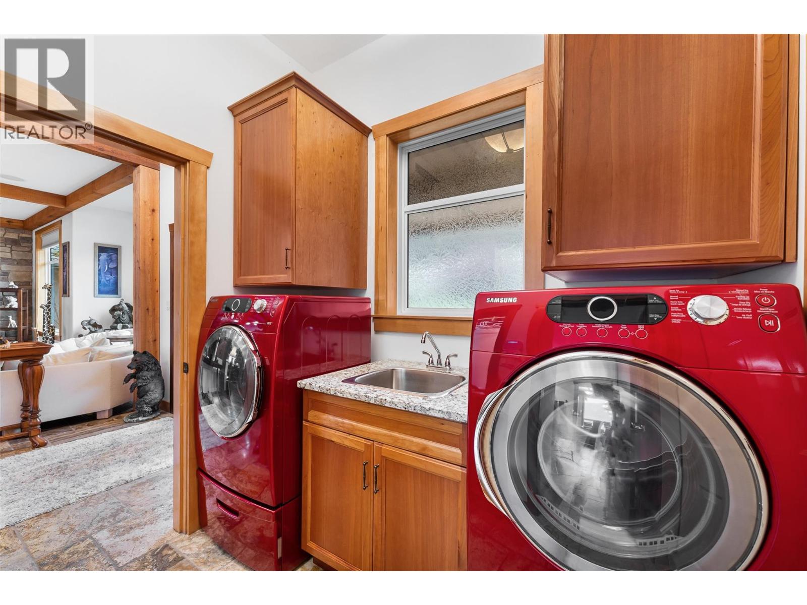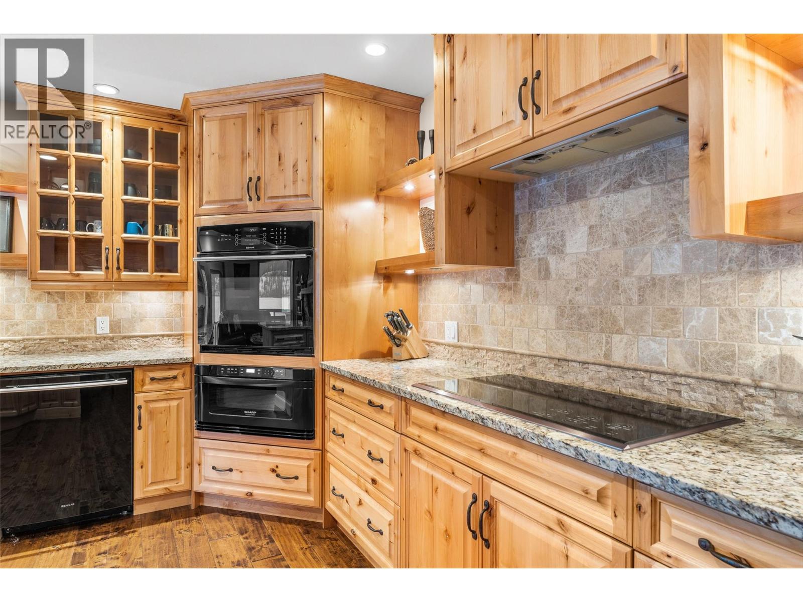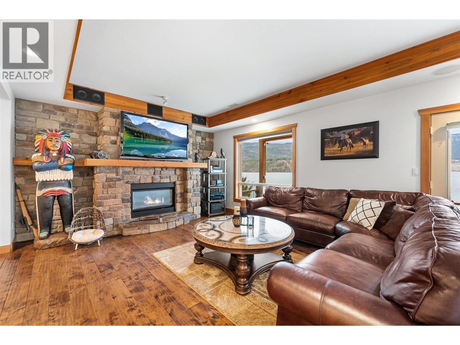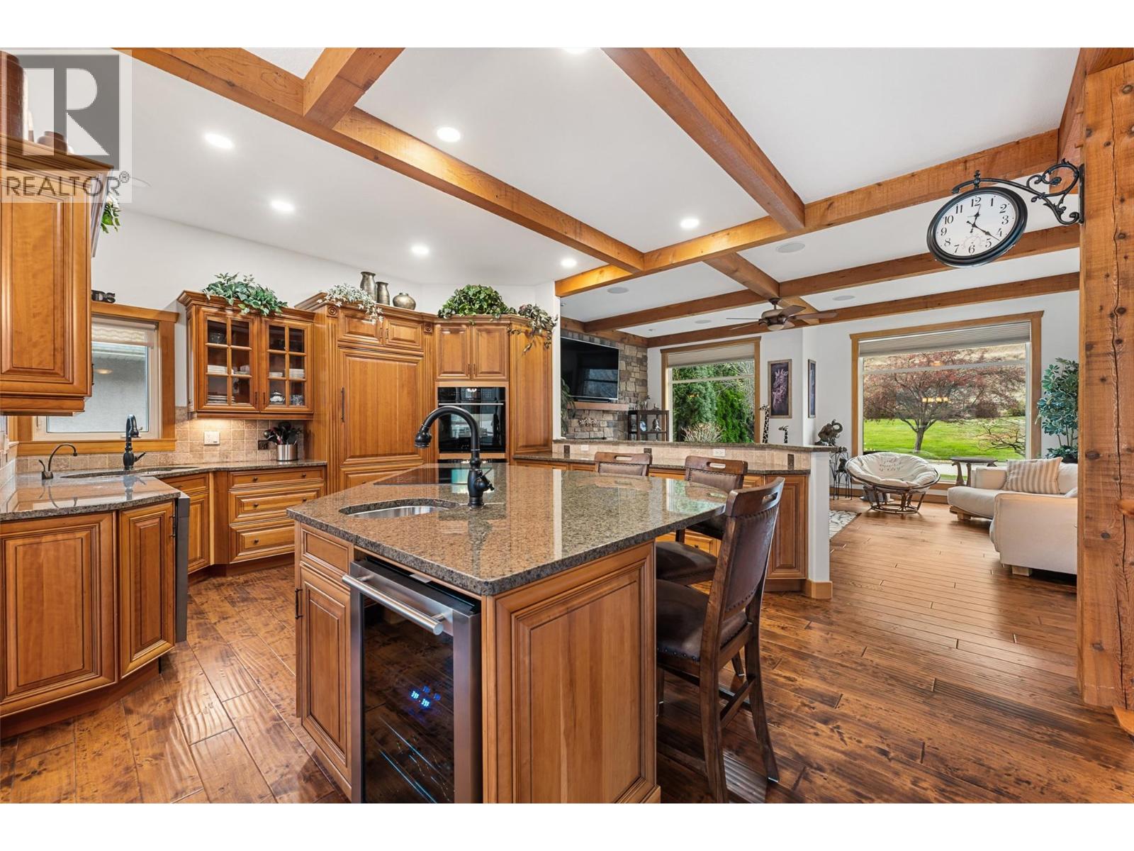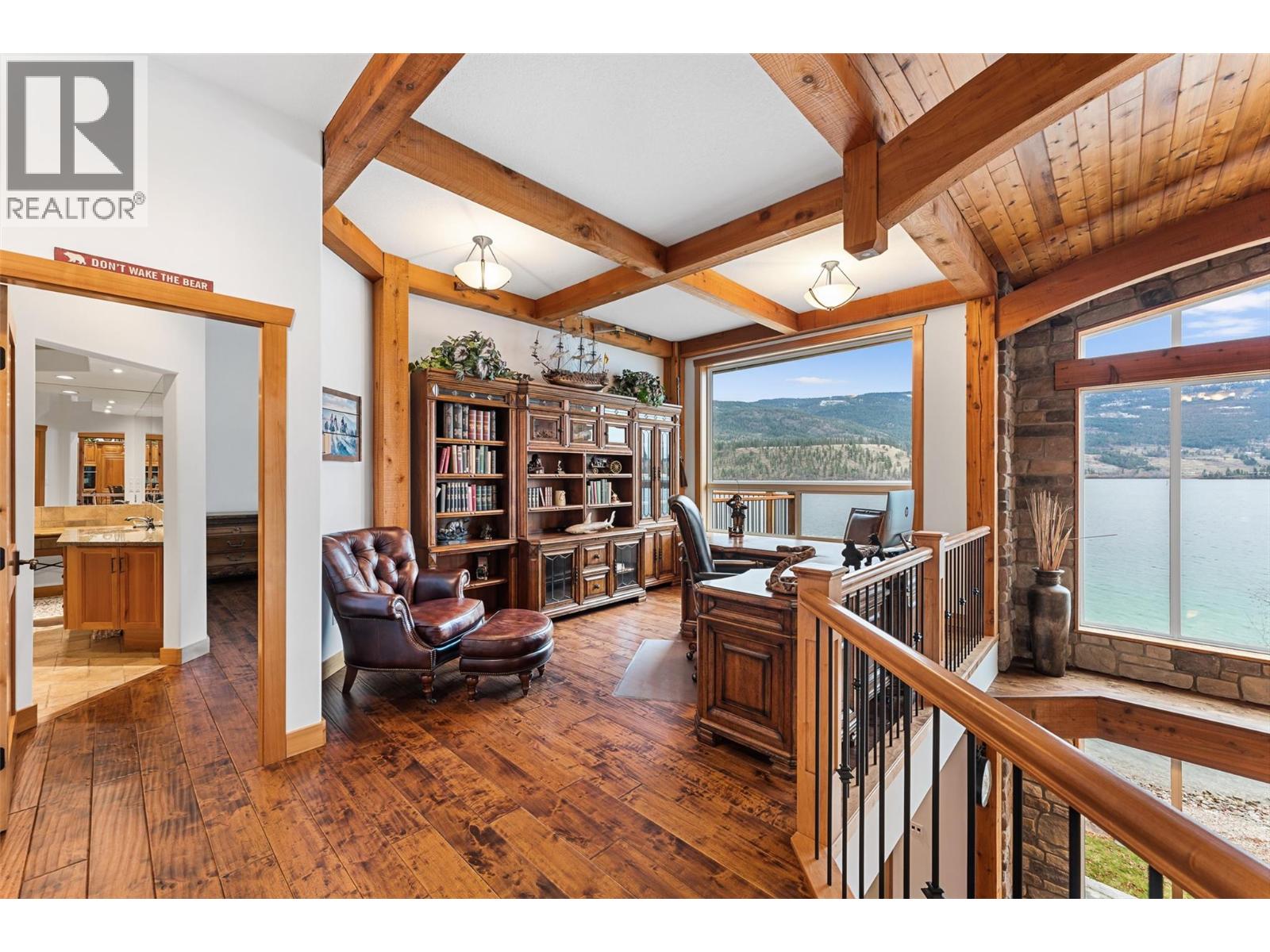 Discover the jewel of Kalamalka Lake. Located at the quiet end of a cul-de-sac in the exclusive, gated Jade Bay community, this property offers unmatched privacy with no neighbors across the street and a natural berm ensuring peace and quiet. This Tommie Gold Award-winning rancher walkout (2008) is a masterpiece of timeless design. A stunning lake view greets you the moment you enter, framed by the grand open concept, warm wood tones, and exposed ceiling beams that draw the eye to the floor-to-ceiling windows in the back. Watch the ""Lake of Many Colors"" shift from emerald to turquoise from your main-floor primary suite—complete with a sunrise-facing balcony—or from the expansive living area. Designed for lifestyle and entertaining, the home boasts a triple garage with a tandem bay and car lift, plus a fully equipped lower level with a second kitchen and three guest bedrooms. Step out to the lower deck to relax in the hot tub, or take the short 19 steps down to your large private dock with boat and Sea-Doo lifts. Just 15 minutes from the airport, this is the perfect year-round sanctuary. (id:21321)