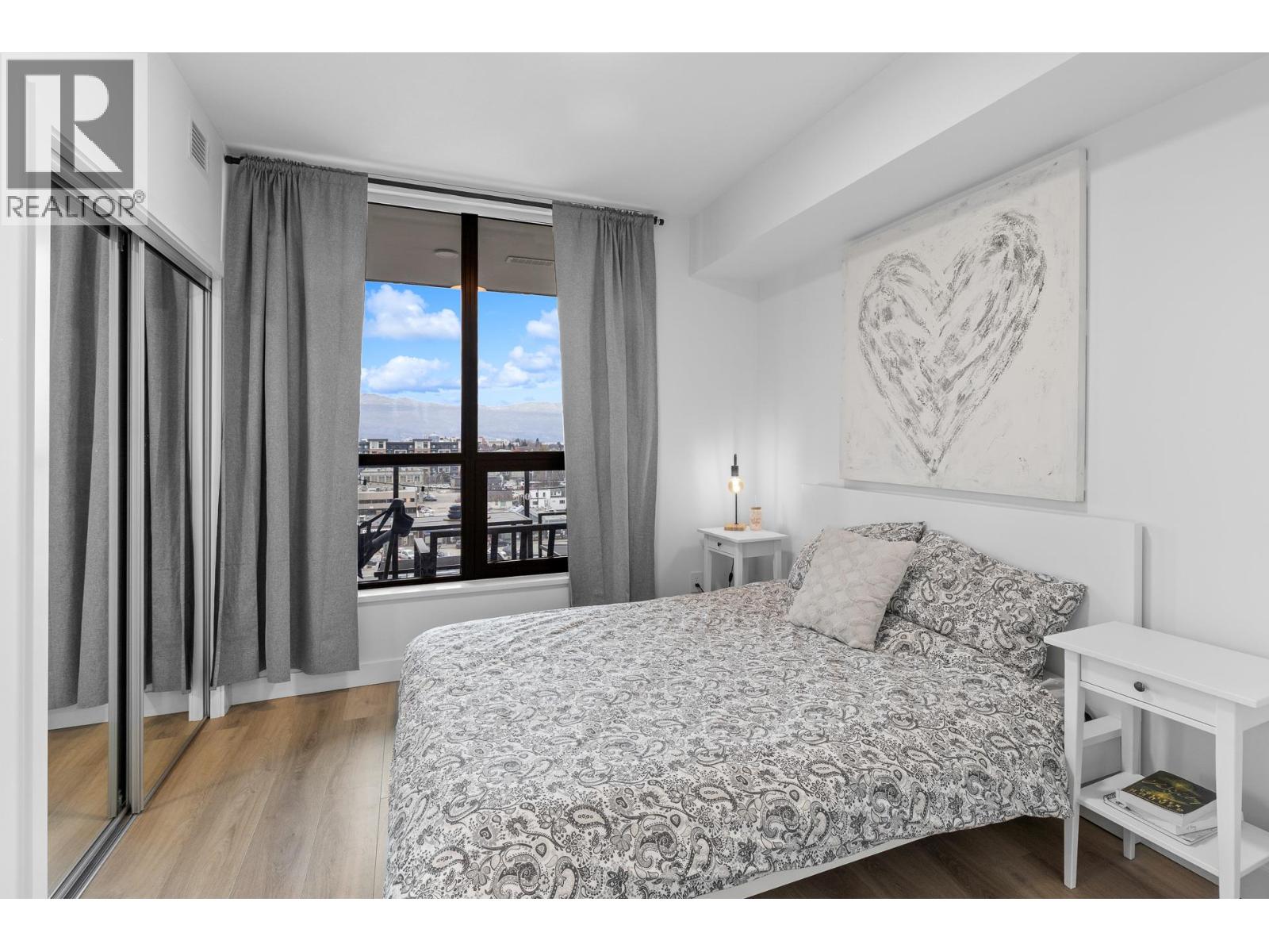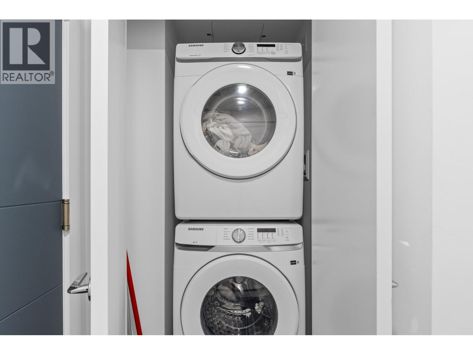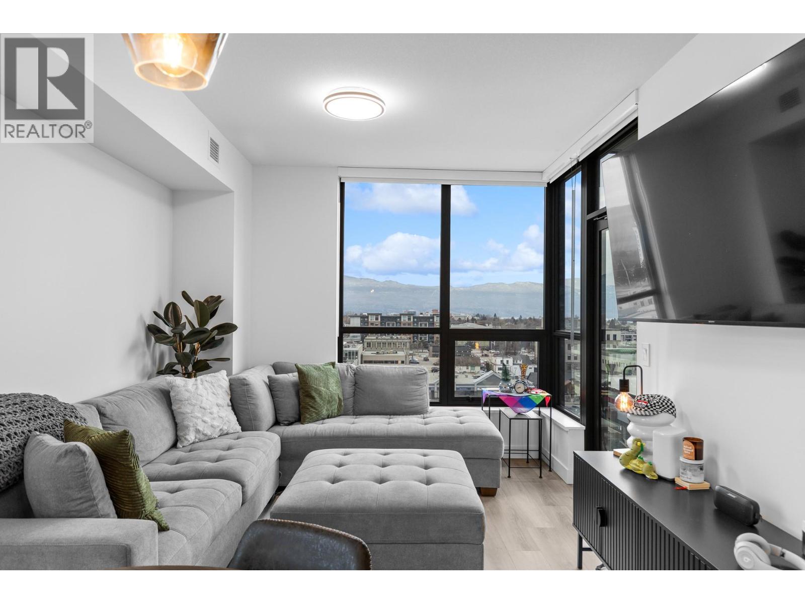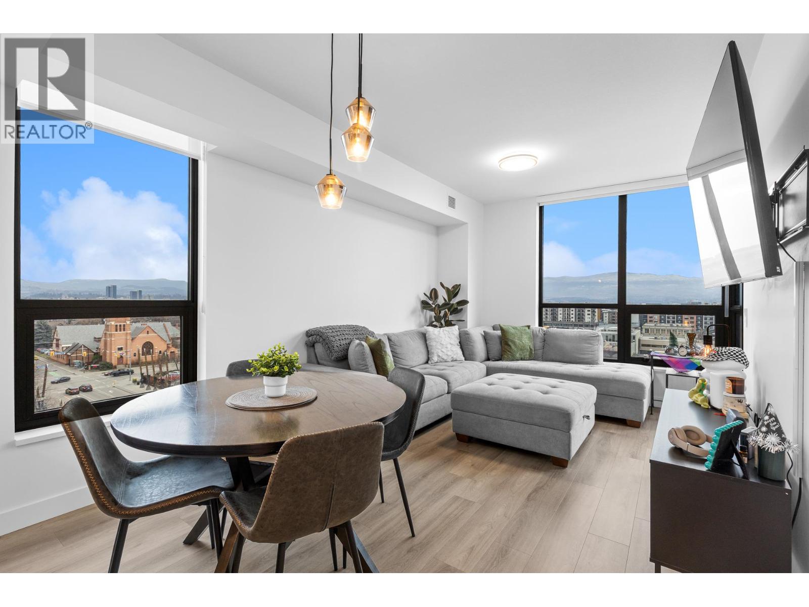 Welcome to Bertram, where elevated living meets an effortless lakeside lifestyle. This beautifully appointed corner unit offers two bedrooms and two bathrooms and is ideally positioned to capture sweeping lake views, abundant natural daylight, and stunning sunsets. Completed in 2024, this residence is wrapped in expansive windows that fill the home with sunshine throughout the day while showcasing views of Lake Okanagan, the city skyline, and surrounding valley. The thoughtfully designed split-bedroom layout provides excellent privacy, while the open-concept living and dining areas create a seamless flow for both everyday living and entertaining. The contemporary kitchen features quartz countertops, stainless steel appliances, and clean modern cabinetry, delivering a timeless and functional design. Step out onto the covered balcony to enjoy morning coffee or unwind in the evening as the sun sets over the lake. Residents of Bertram enjoy an impressive collection of resort-style amenities, including a rooftop heated pool and spacious hot tub with panoramic 360-degree views, outdoor BBQ and lounge areas, bocce ball court, community gardens, fully equipped fitness centre, dog run and dog wash station, secure bike room, and multiple indoor lounges and work-from-home spaces. This home includes one secure parking stall and a private bike locker. (id:21321)