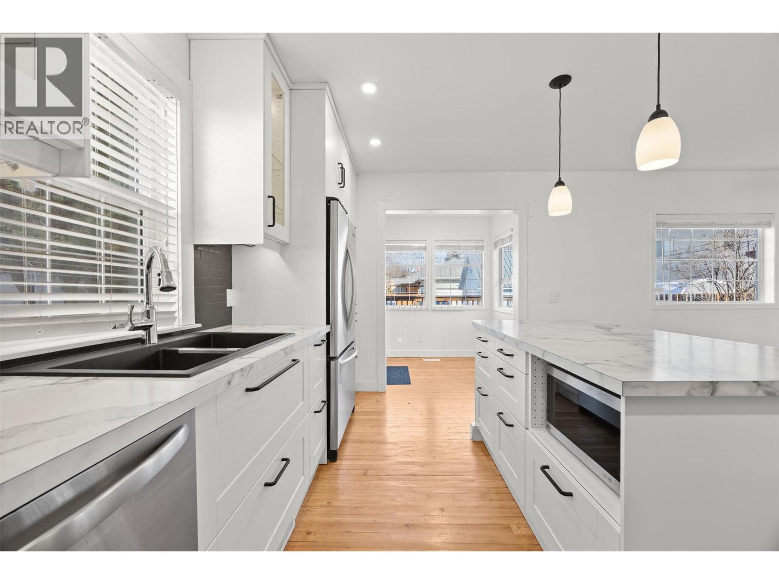 Discover this bright and inviting 4-bedroom, 2-bathroom home located in the heart of the highly sought-after Kelowna South neighborhood. Filled with character and modern updates, this south-facing property is situated on a RU6 zoned lot with carriage house potential. The home welcomes you through a bright foyer leading into a spacious living room. The modernized, airy kitchen features a door opening directly to the backyard. The main floor includes two well-sized bedrooms, one of which features french doors leading to the deck. Upstairs, you will find the primary bedroom, an additional bedroom, and a bathroom. The basement offers a finished den/flex room, laudry, while the remaining unfinished space provides a versatile area for a workshop or games room. You can enjoy entertaining outdoors on the large deck and appreciate maintenance-free living with synthetic turf in both the front and back yards. Parking & Storage includes a single-car garage 17'by 20'11"", a large shed, and a driveway with room for four cars or an RV. The laneway access offers future potential for a carriage home. Recent Updates include the AC and furnace that were replaced in 2017, and a new irrigation system was installed in 2023. The location is perfect as you are a short stroll from Kelowna’s best attractions, including pristine beaches, trendy restaurants, Pandosy Village, Okanagan College, downtown and the hospital. Outdoor enthusiasts will also appreciate the proximity to the Sutherland Transportation corridor. (id:21321)