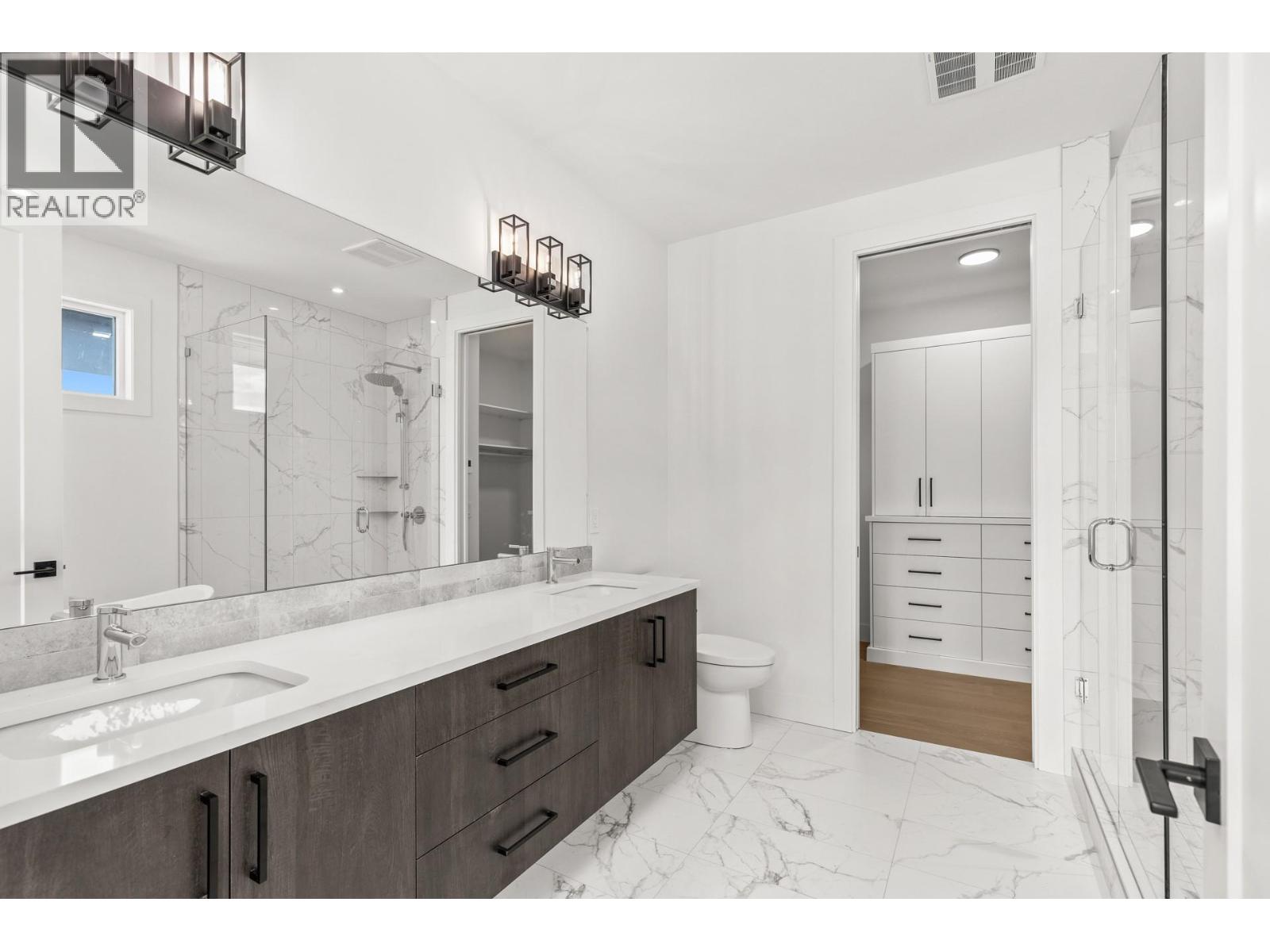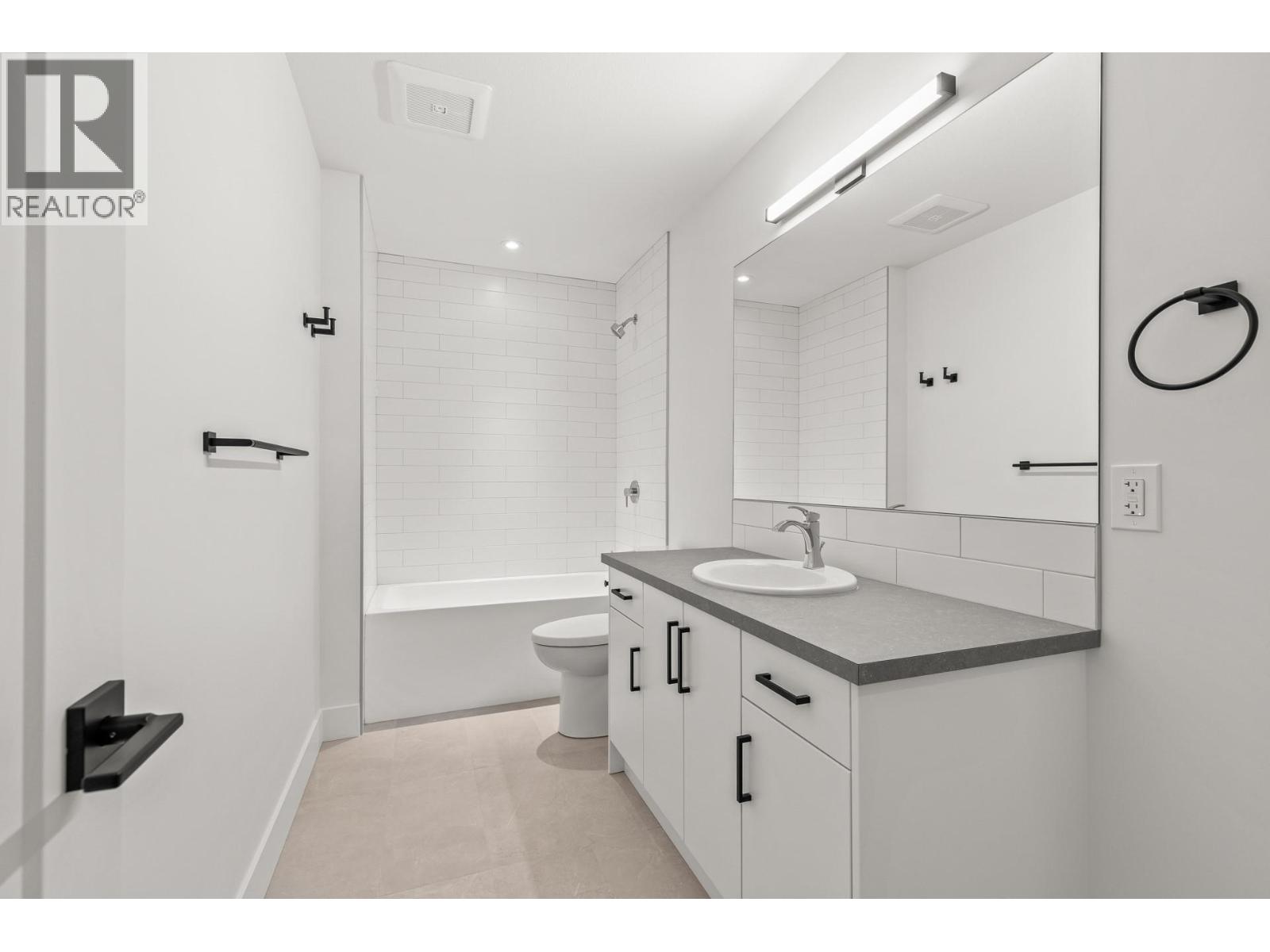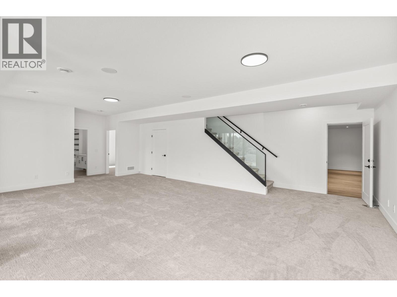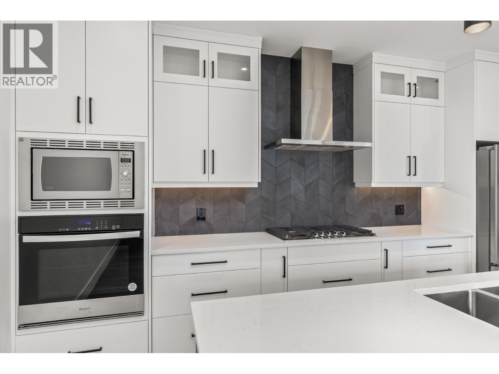 Brand New Walkout Rancher with Legal Suite! Welcome to this stunning new home offering sweeping valley and mountain views. Every detail has been thoughtfully designed — from the custom tile work and chic modern color palette to the smart, open-concept layout. The main floor features a gourmet island kitchen with a gas cooktop, overlooking the Great Room with a unique Hydra fireplace and floor-to-ceiling windows that flood the space with natural light. A spacious laundry room with abundant cabinetry adds everyday convenience. You’ll also find a second bedroom and a stylish powder room on this level, ideal for guests or family. The bright living and dining areas flow seamlessly onto a large covered deck, perfect for entertaining. The elegant primary suite enjoys a gorgeous outlook and features a luxurious ensuite with double sinks, a soaker tub, and an oversized glass and ceramic shower, plus a generous walk-in closet. The lower level includes two additional large bedrooms, a full 5-piece bath, a recreation room, and access to a covered patio. A self-contained legal one-bedroom suite offers flexible options for guests or rental income. Additional highlights include an oversized double garage with an extra-wide driveway, superior insulation and airtight construction, and Energy Step Code 3 compliance (R24 walls and R60 ceilings) for exceptional energy efficiency. Located just 20 minutes to downtown, and 30 minutes to Big White Ski Resort. 10-Year New Home Warranty (id:21321)