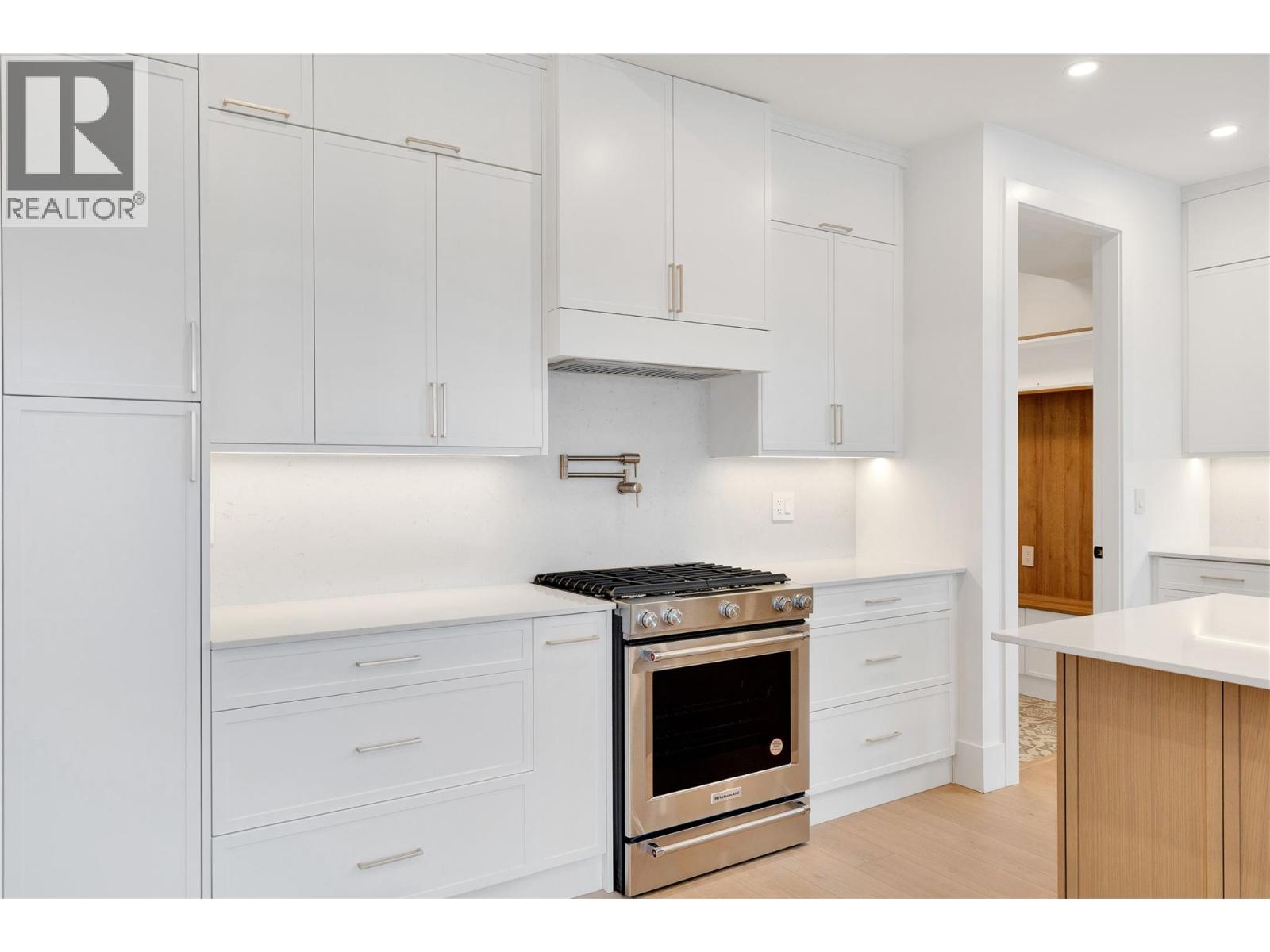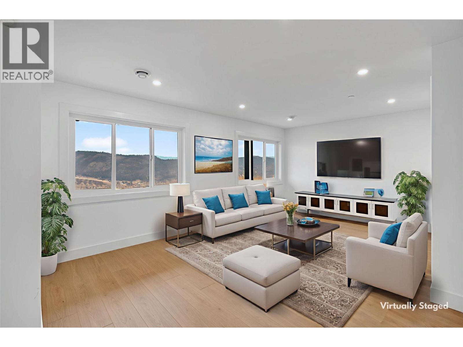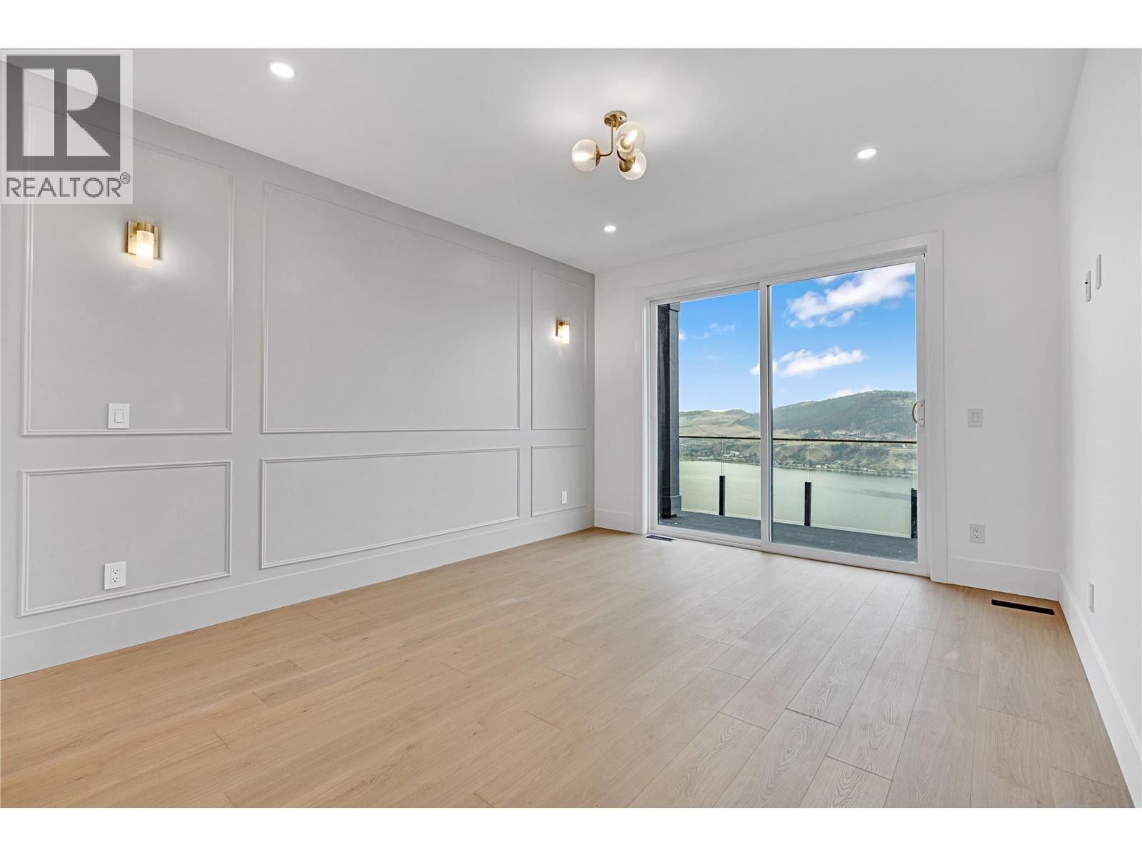 *Kitchen + laundry appliances, outdoor decking topper, and security + control 4 system will be installed, and are included in the purchase price.* Be the first to experience this exceptional new build in the prestigious Adventure Bay community, enhanced with premium upgrades. This stunning three-level home showcases panoramic Okanagan Lake views from every floor. The top level features an open-concept kitchen, dining, and living area with expansive windows and a contemporary gas fireplace with stone surround and framed built-ins. The gourmet kitchen offers rich wood and white shaker cabinetry, stone countertops, a large centre island, and a convenient pot filler. The main-level primary suite boasts a walk-in closet, luxurious ensuite, and access to a covered patio perfect for lakeside dining. The mid-level includes three bedrooms, two full bathrooms, first wet bar, a second balcony, and a striking stone-clad wine room. The lower level features a generous bonus rec room living area, plus full bath, with seamless yard access, as well as a custom second wet bar, ideal for entertaining. Adventure Bay residents enjoy exclusive access to a private beach, tennis courts, and scenic trails. Refined style, premium finishes, and breathtaking lake views define this extraordinary Vernon home. (id:21321)