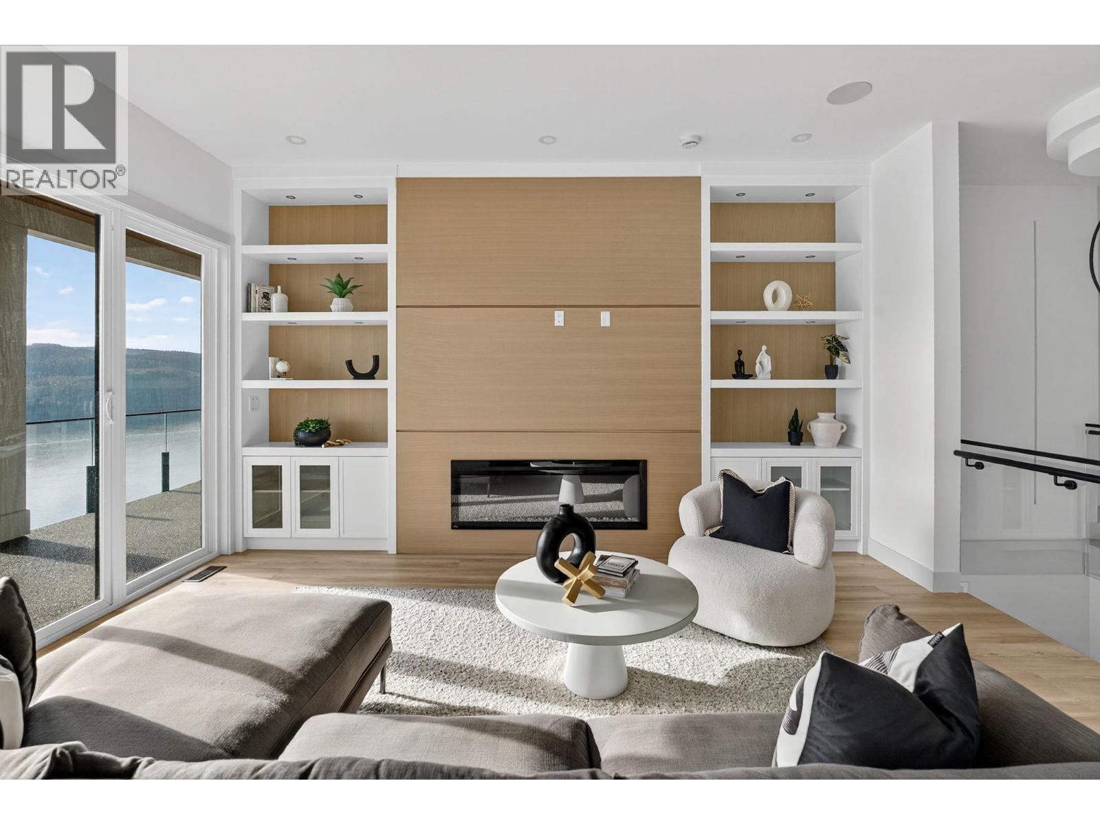 Breathtaking Lake Views in Vernon's Premier Adventure Bay Community! Experience luxury living in this meticulously designed 4 bed+ Den & 4 1/2 bath home spanning 3,303 SOFT. Showcasing floor-to-ceiling windows, artisan millwork, premium hardwood floors, & an open-concept layout, every detail has been crafted for modern elegance & comfort. The gourmet kitchen is a chef's dream, featuring stainless steel appliances, sleek stone countertops, a spacious center island, custom cabinetry, & a generous pantry. Entertain in style with a built-in entertainment center, feature fireplace, & elegant wet bar. Retreat to the luxurious primary suite, complete with a walk-in closet & a spa-inspired 5-piece ensuite featuring an nVent Nuheat programmable heated-floor thermostat. Modern comforts include Control4 home automation, a multi-zone smart lighting control keypad, & efficient HVAC, ensuring comfort year-round. Outside, the home impresses with elegant stone & fibre cement fagades, an elevated deck perfect for entertaining, and a yearround patio to soak in the views. Located just steps from access to a private beach, tennis & pickleball courts, & minutes from hiking trails, golf, wineries, & downtown amenities, this home offers the ultimate blend of refined living (id:21321)