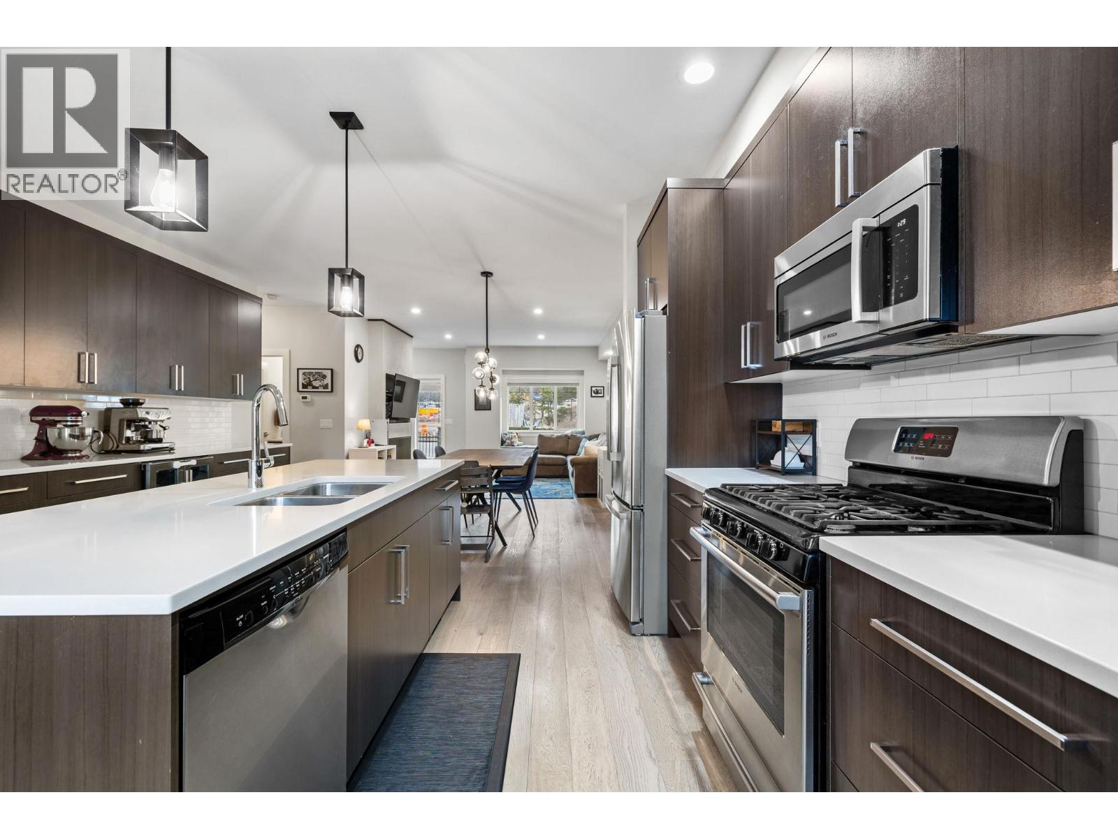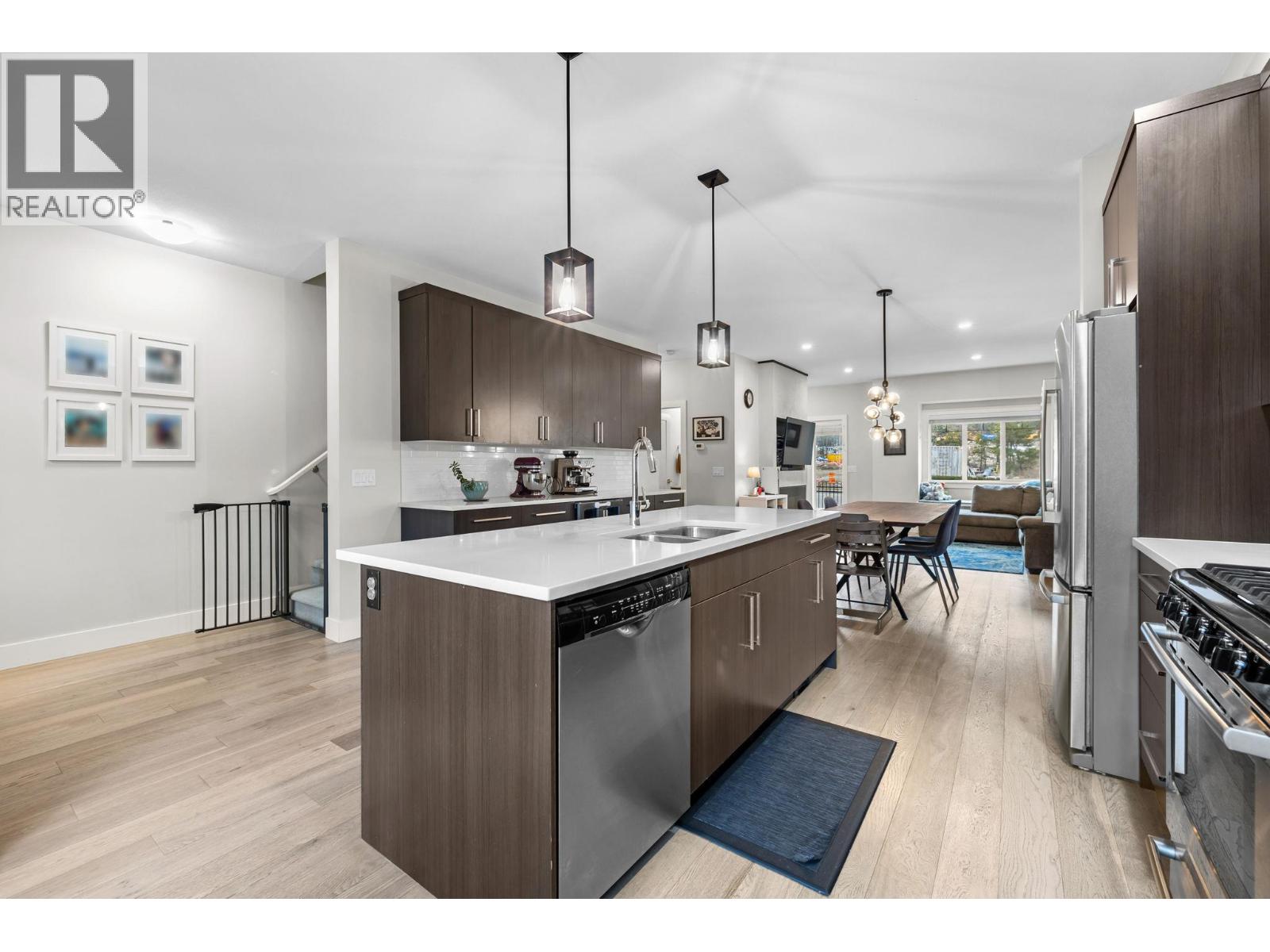 Welcome to Hidden Lake Lookout, a quaint and lovely townhouse community in the highly sought-after family friendly neighbourhood of Wilden. This stunning 3-bedroom, 2 1/2-bathroom home with a wonderful sightline of the local pond is perfect for people who love to live near nature but still prefer a location closer to town. Featuring the always popular “open concept” floor plan on the main, you’ll enjoy the flow of over 500 sqft of living & dining space with east and west facing views ensuring plenty of natural light throughout the day. The kitchen boasts sleek stone countertops, stainless steel appliances, and ample cabinet storage, making it the perfect space for both casual meals and entertaining guests. The upper level showcases a large primary bedroom with ensuite, two additional generous sized bedrooms, and a beautiful main bathroom. This property also features a large double tandem garage complete with a workshop space ideal for DIY projects or extra storage. You will also appreciate the lower utility costs with geothermal and natural gas heating & cooling systems, ensuring year-round comfort. Wilden's Future ""Market Square"" is under construction just down the street and will provide residents many exciting opportunities such as parkland, restaurants, shopping, and other lifestyle amenities including a new elementary school. Surrounded by nature but just 10 minutes from downtown Kelowna, the airport, and the university, get ready to enjoy the beauty of Wilden living! (id:21321)