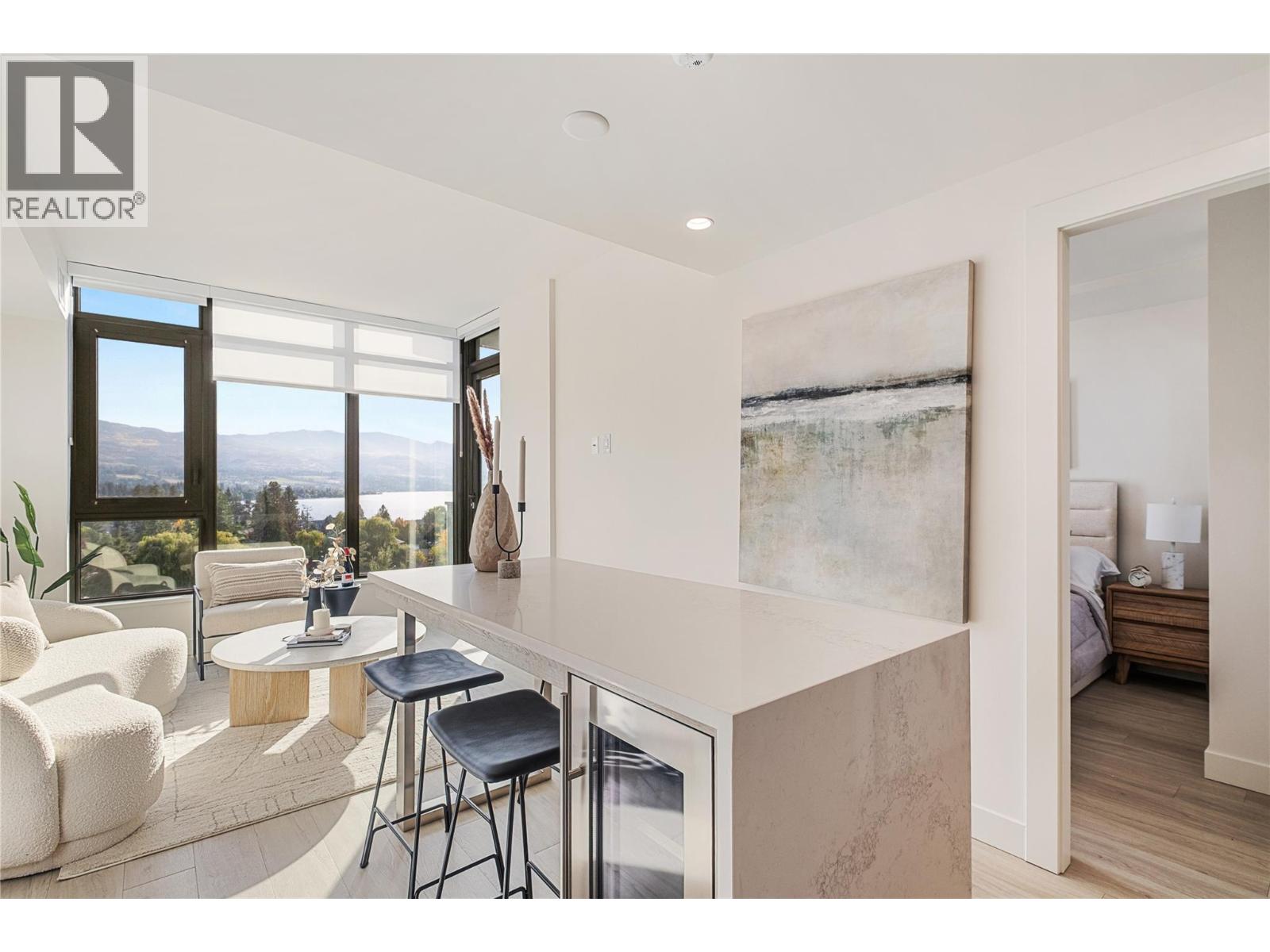 LOCATION & VIEWS!! This *brand-new, sun-filled condo* is all about stunning views and easy living. With 2 bedrooms, 2 full bathrooms, and big windows that bring in tons of natural light, you’ll enjoy breathtaking lake and mountain views every day. The sleek, modern kitchen features stainless steel appliances (including a microwave and wine cooler), quartz counters, and a functional island—perfect for cooking or catching up with friends. Custom-built closet organizers, vinyl plank flooring, and thoughtful upgrades add a polished touch throughout. You’ll love the resort-style amenities: outdoor pool, hot tub on the 5th floor, lounge seating, landscaped BBQ area, two-story 2000 sq ft gym & yoga/meditation area, co-workspace, poolside fireside lounge, shared kitchen, conference room & dog wash station, paddle board storage, and access to the Aqua Boat Club. Plus, there’s a covered parking stall, a separate storage locker, and a bike locker. Located in the prime Lower Mission area, you’re steps away from everything that makes Kelowna amazing. Whether you're starting your day on the water or relaxing on your balcony soaking up the views, this condo is a true slice of Okanagan paradise. (id:21321)