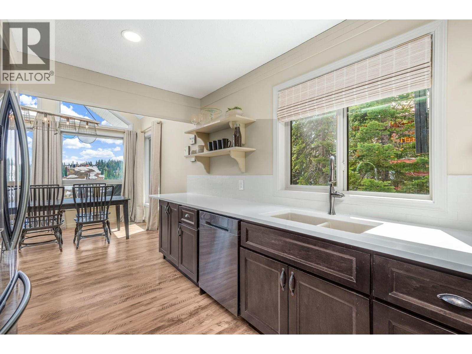 Terrific value and function at Silver Star Mountain Resort. One title, but two separate suites and living areas. Very bright home with lots of windows and fabulous views over Silver Queen, Town and the Monashee's. Tall vaulted ceilings with an open and impressive feel. Lots of upgrades and move in or enjoyment ready. Open and lofted upper level. Very spacious main level living, dining and kitchen. Self contained 2 bedroom suite in the lower level. One of the real attributes of this home is the flexibility provided and able to accommodate; multi-family ownership, varied and adjustable rental and personal use offerings, large family or rental groups when desired. The address is Silver Star Rd but access is off Spencer Lane just before the 2nd skier overpass. Great ski in and ski out location and easy access to downhill or XC skiing, the village. Brewers Pond and Tube Town. Hot tub ready patio. Some personal commitments for this year but lots of availability for the entire 2025-26 season. Currently vacant and easy to view. Public Open House Sunday Oct 5th 1-2;30 (id:21321)