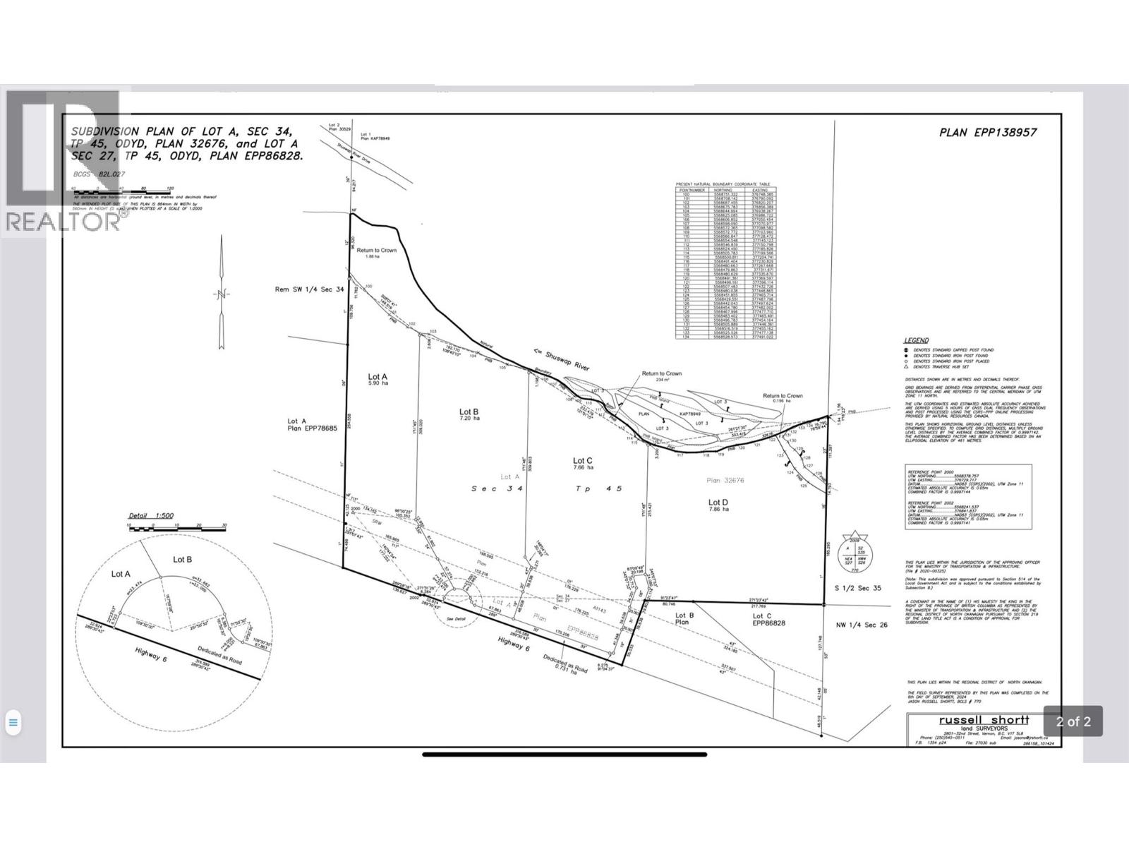 ONE THOUSAND Feet of River Front, 19.42 Acres, Natural Spring Water, Level-Cleared-Elevated Building Bench, Perfect for your Country Estate OR Subdivide into three River Front Lots, Park Like setting, Treed with Clearings, A dedicated 90 metre length MOTI Right Of Way provides direct access from Hwy 6 to the property frontage, making available High Speed Telus fibre optic Internet/ Cable/ Phone/ Electricity and yes Cell service is available, * Zoned Non Urban * OCP supports Country Residential (5 acre parcels / 3 lot subdivision), * Riparian Report Approved * Topographic work complete * Surveyors 3 Lot subdivision plan complete, The Big Work is Done - Requires Rezoning and Subdivision application - Not in ALR - Have the Best of Opportunities to choose from; YOUR COUNTRY ESTATE PROPERTY OR SUBDIVIDE INTO 3 LOTS * Live sustainable with endless fresh water and self sufficient potential, while staying connected to the world. Remote work, eco living and smart investing all come together on this one- of-a-kind parcel, *The Gateway To The Monashee offers many lakes close by; Sugar Lake, Mable Lake, Eco Lake, Whatshan Lake & Arrow Lake, *All supporting documents are available (id:21321)